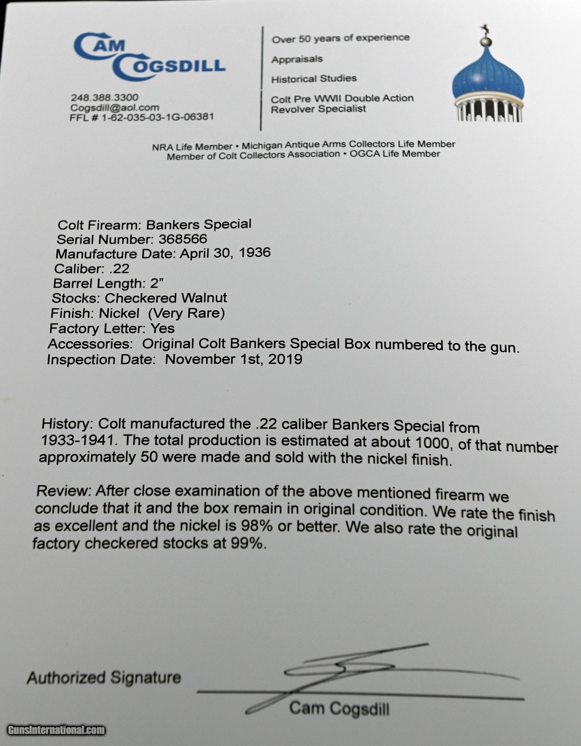 COLT BANKERS SPECIAL 22 NICKEL FACTORY FINISH EXTREMELY RARE