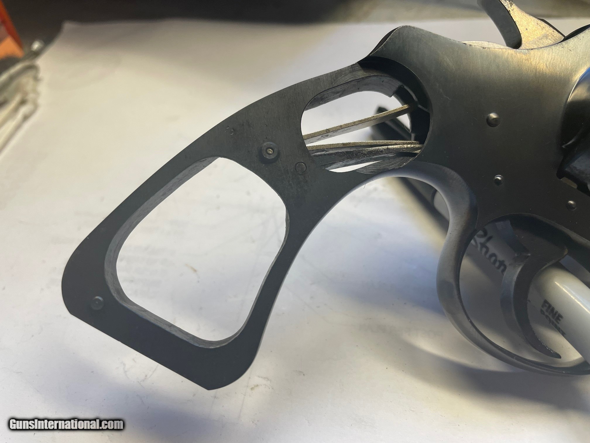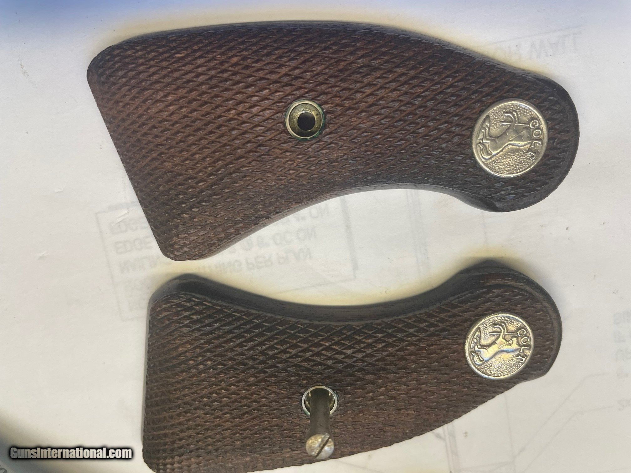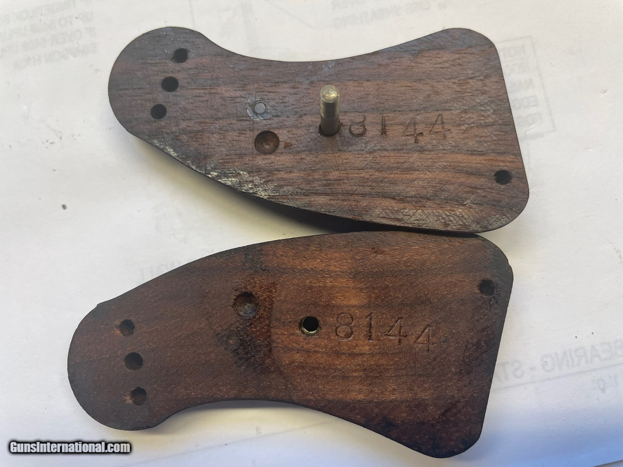 Description: SOLD PENDING FUNDS For your purchasing enjoyment, we have a 1934 Colt Bankers Special in 22 long rifle. This is a beautiful example with minor wear. The left muzzle has a small dink and finish wear. There are a few pinprick spots upon the high left edge of the frame. Some spotting on the left side of the steel hammer, which might be able to be cleaned off. The BS was made from 1928 to 1943. I'd rate this as an easy 93-95% finish quality. The lock up is tight. Grip panels are serial numbered on the inside to the gun. Must ship to C&R or FFL. Shipping to be $50 USPS. Insurance upon request. No shipping to CA , MA, areas in IL, or where prohibited, know the laws where you reside. No Returns. If you have questions, please ask. Accept USPS money orders or Major bank cashier's checks. SOLD Curio/Relic: Yes Handgun Caliber: .22 Long Rifle Manufacturer: Colt Model: Bankers Special Serial Number: 368144 Chambers: Very Good Condition: Very Fine Metal Condition: excellent Wood Condition: Very Fine Bore Condition: Very good Action: DA/SA |