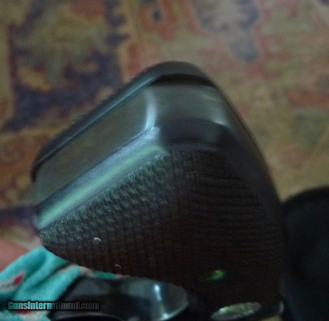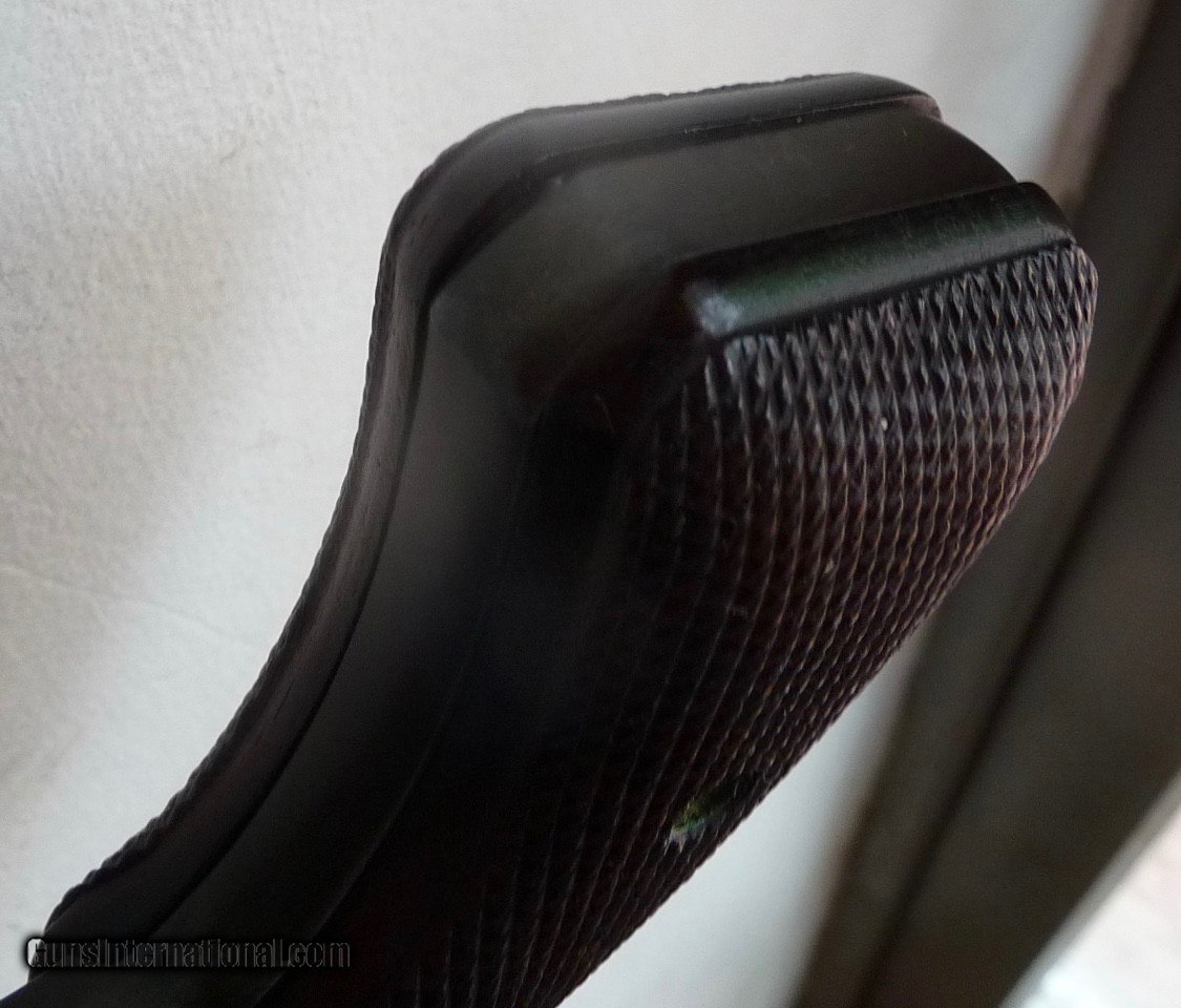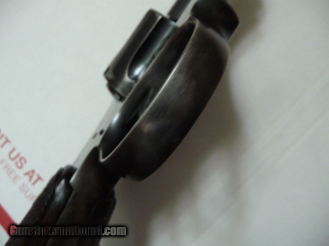 Description: From a 50+ year collection. Crisp, tight, little evidence of being fired. Scarce early round butt **. Serial range 349,xxx (last digit of serial number is hidden). Retains 90% original blue. Small areas and wee bits of wear and browning here and there, small area of wear under trigger guard. Tight and nice. Grips are flat mint but slightly oversized as is evident in images. ** Upon very close inspection this revolver may have originally been a square butt modiied to a round butt - see last few images or request more from us. Maybe the factory modified unused square butt frames to make the more desireble round butt or may have been modified later. A factory letter would confirm details however wait time for a letter could be 4-6 months. If the factory confirms modification was indeed done by the factory I would think it would be a scarce Banker's Special variation. Letter "T" above serial number may be a clue. Anyway, while we wait for a letter revolver is offered for sale. Curio & Relic. Must be shipped to an FFL licensee and only where legal. Add $45. P&H in the lower 48 states. AK and HI may be more. This revolver is sold as is and has not been test fired for safety. As with any used firearm you purchase have it checked by a competent gunsmith before firing. This revolver is also NOT 38 special but rather the 38 Colt caliber. SAFETY NOTICE: Buyer is solely responsible for determining that a used gun is safe to shoot. The firearms offered have not been test fired! They have been given a visual inspection for selling description purposes only. We are selling this gun as a collectible item only! We make no guarantee that it is safe to shoot or that it will function correctly if fired. It is a requirement that every used firearm (including this one) be inspected and approved by a qualified gunsmith before firing! By or buying, the buyer agrees to hold seller harmless against damages, injury, or death caused by defective merchandise. SOLD Curio/Relic: Yes Handgun Caliber: .38 S&W (.38 Colt New Police, .38 Super Police) Manufacturer: colt Model: Bankers Special Serial Number: 349,xxx Barrel Length: 2 Condition: Near Excellent Metal Condition: 90% blue Wood Condition: Excellent Bore Condition: Excellent |