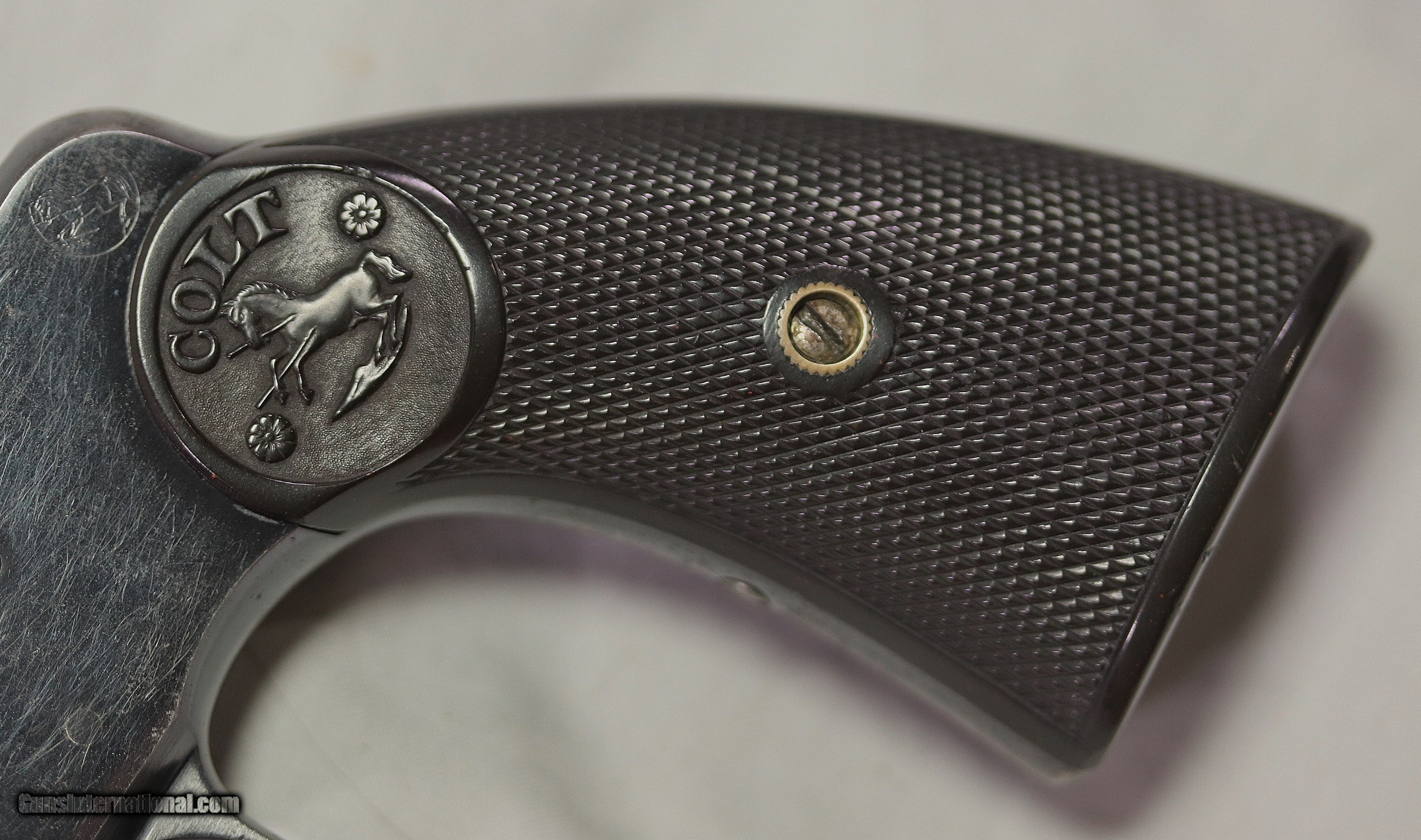 Description: This beautiful old Colt revolver was made in 1904, 116 Years ago, and has been well preserved. The original finish remains at about a 90% + rating. The most wear is on the right side of the barrel, likely from a holster. There is no rust or pitting anywhere. The grips are in excellent condition with no chips or cracks. The bore is excellent, and the action is smooth and works fine but the timing is off just a tad. The book “A Study of Colt’s New Army & Navy Pattern Double Action Revolvers” by Robert Blast states. The bore was reduced from .360” to .358” to better accommodate the S&W .38 Special Cartridge. No change to the barrel marking, “Colt D.A. .38” was made. Caliber .38 Long Colt or .38 Spl. with a 6” Barrel. Serial Number: 232909. FFL or C&R Required. Beaver Creek Arms TERMS & CONDITIONS Objective: As a collector of 35 years and Licensed Firearms Dealer since 1989 I have a clear definition of a satisfactory transaction. I will be paid as we agreed to, and you will be satisfied with your purchase. My goal is to establish a client list of satisfied repeat customers who will recommend me to other collectors. It’s just that simple. Exiled Saudi princes with secret funds needing change from an over paid purchase need not apply. Notice: ALL Federal, State, & Local firearms laws will be followed. I will take NO shortcuts in the process of a legal sale or transfer, so please don’t ask. SHIPPING: Normally shipments are made via U.S.P.S. Priority Mail, Insured, with Signature required. Packing, Shipping and Insurance cost for this handgun is $30.00. Checks to be made out to: Steve Clark Mailed to: 380 Beaver Creek Rd. Dillsburg PA 17019 FIREARMS: Modern firearms, post 1898, can only be shipped to a Type 01 Federal Firearms License address. Curio-Relic firearms, as defined by the BATF list, can usually be shipped to a Type 03 Collectors License address. Some states have additional restrictions such as CA, CT, DC, IL, NJ and NY. A signed valid FFL license copy either mailed or emailed will be required for shipment to only the license address. GUARANTEE: Your complete satisfaction is assured, see objective above. If you are not satisfied, please contact me within 3 days of receipt. Please don’t fire the weapon, safety, function and accuracy are NOT Guaranteed. Any weapon offered by Beaver Creek Arms is never test fired nor is there any representation the gun is functional and safe to fire. These guns are sold for collectors and only represented as used firearms that must be checked by a competent person, observe all the necessary safety precautions prior to attempting to load and fire one of these weapons RETURNS: Returns must be made within 3 days of receipt. They must be received in exactly the same condition with no parts exchanged. If it has been altered, damaged, or fired, a refund will not be made. Packing, shipping and insurance cost will not be refunded. All layaway purchases are returnable for merchandise credit only. PAYMENT: Bank check, Personal check, and Money Orders are preferred. Visa and MasterCard are accepted with a 3% processing fee. For Visa and MasterCard orders please provide the account number, code number, expiration date, name on card, phone number and card billing address. This information can be phoned in, or E-Mailed. All orders must be paid in advance, C.O.D. orders are not accepted. Checks, both Bank and Personal must clear before the order will be shipped, usually a 2 week delay. SALES TAX: Pennsylvania state sales tax is 6% for in state purchases. The payment of other states sales tax, if applicable, for shipped items is the buyers responsibility. DISCREET: Client information will remain Confidential. Your privacy is protected. SOLD Curio/Relic: Yes |