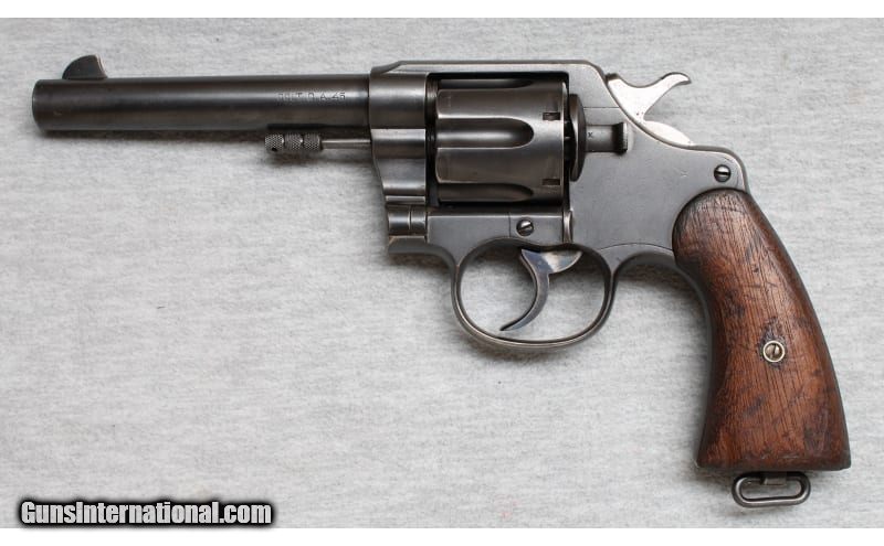 Description: Good condition, finish wear, nicks, scratches. Large frame WWI era .45 caliber 6 shot revolver. Blued finish, 5 1/2" barrel, fixed sights, wood grips and lanyard ring. Marked U.S. Army Model 1909, and R.A.C. on right side of frame under the hammer. .45 Colt SOLD Chambers: Revolver Metal Condition: Good Bore Condition: Bright Barrels: 5 1/2 Triggers: Double and single action Butt Pad: Wood grips Sights: "Fixed rear channel, blade front sights Item Location: La Vista, NE |