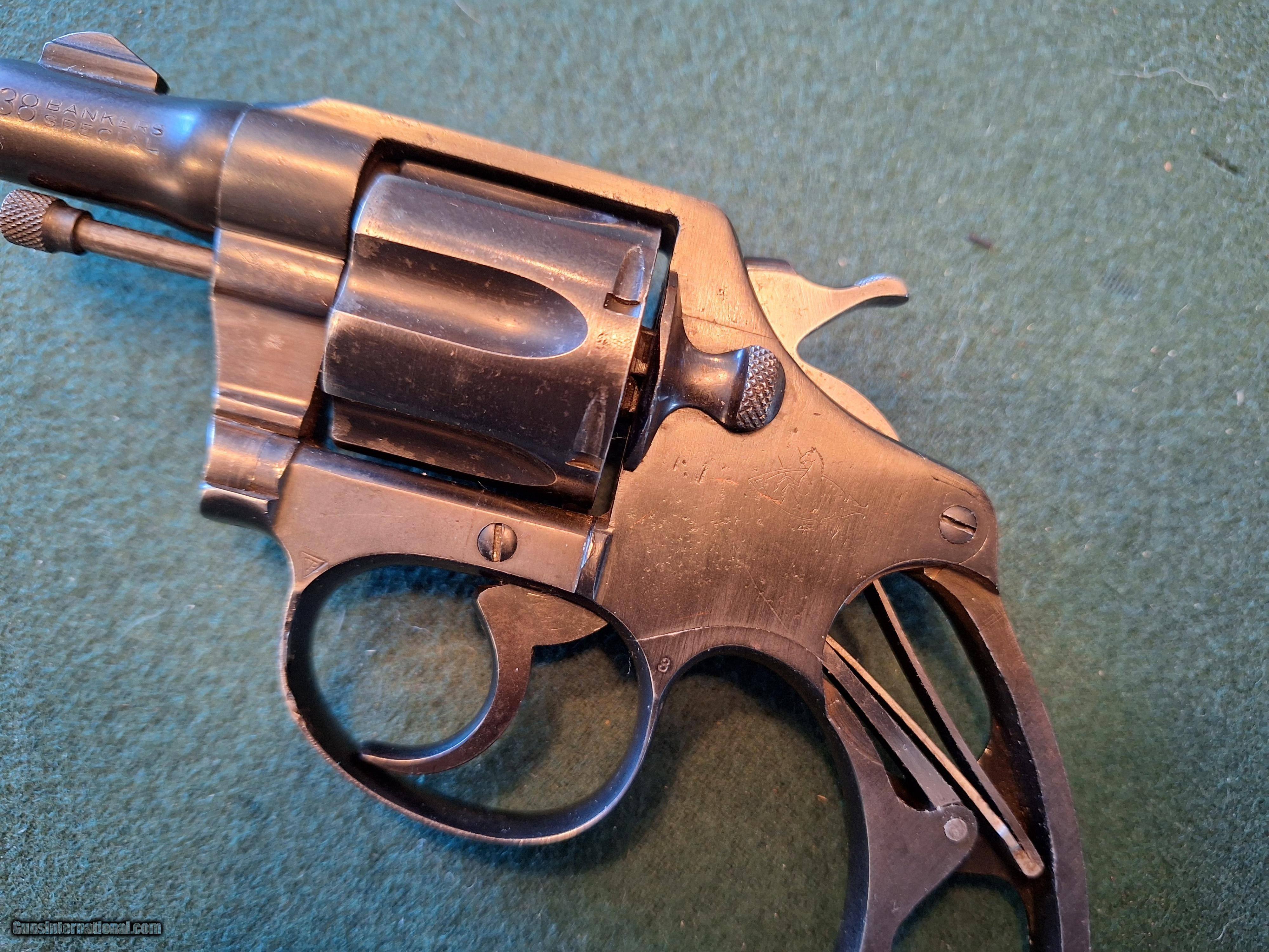 Description: Colt. Model Bankers Special Revolver. Cal 38. 2: Barrel with an excellent bore. Very good condition. Missing grips. Three smal intitials neatly engraved on the back strap. probably from former owner. Price: $550.00 Contact Seller |
