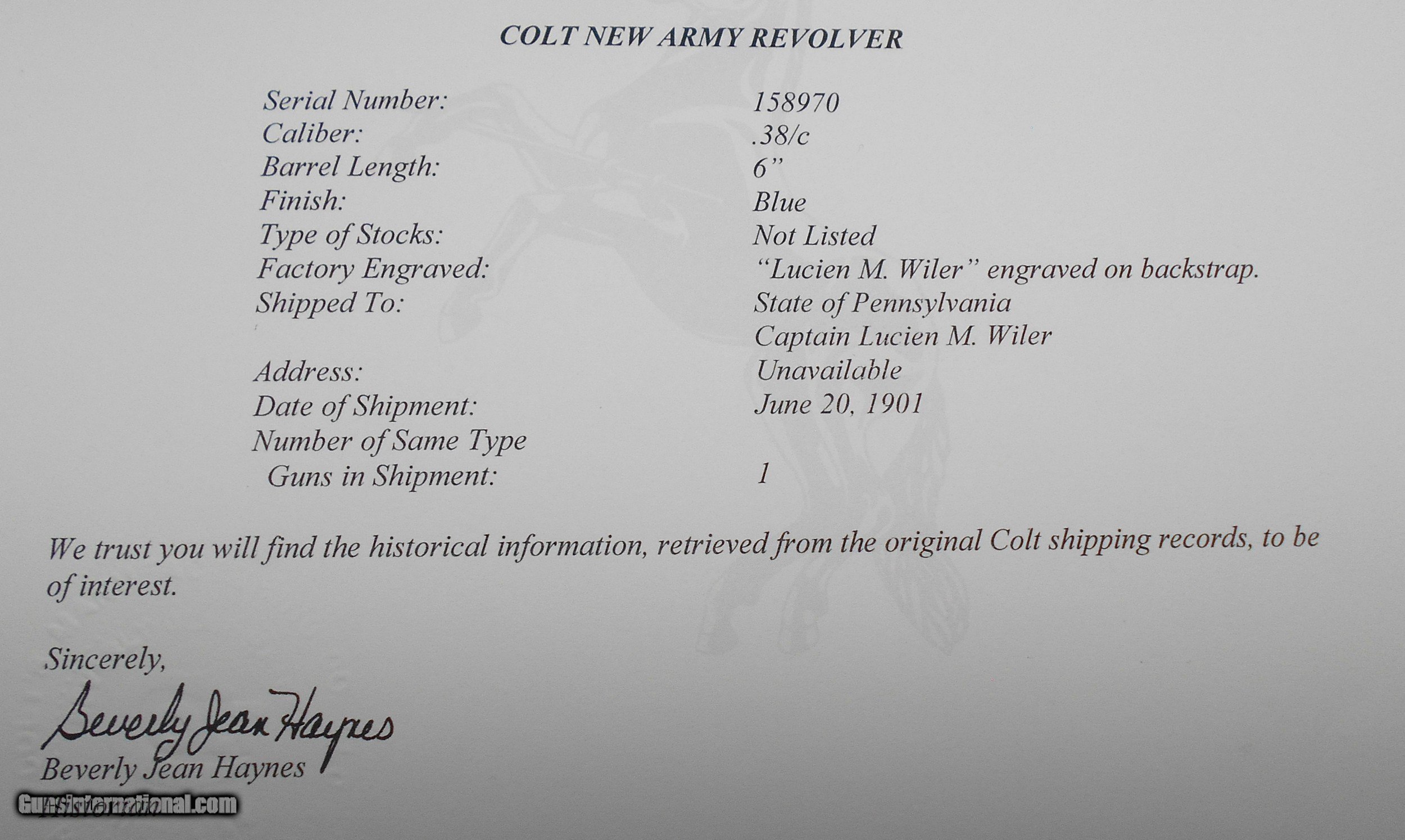 COLT NEW ARMY FACTORY INSCRIPTION WITH LETTER VERY HIGH CONDITION