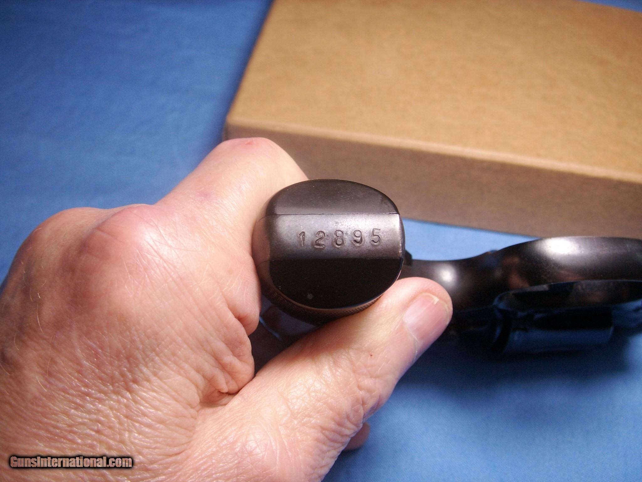Description: SOLD PENDING FUNDS: Colt 2nd issue Pocket Positive prewar revolver in .32 New Police caliber with a 2.5" barrel. This was manufactured in 1938 and is rated at 95% original condition. There is surface freckling on the grip straps and high edge wear on sections of the cylinder flutes, which accounts for most of the loss. The bore is mirror bright and the mechanics are perfect. The grips are excellent with no cracks or chips. They ended production of these in 1940, so this revolver was produced toward the end of the run. Blue Book values these in 95% condition at $1250 and I am offering at $1050. This a very nice Pocket Positive, which is the smallest frame produced by Colt for their double action revolvers. A great conseal/carry firearm. SOLD Curio/Relic: Yes |