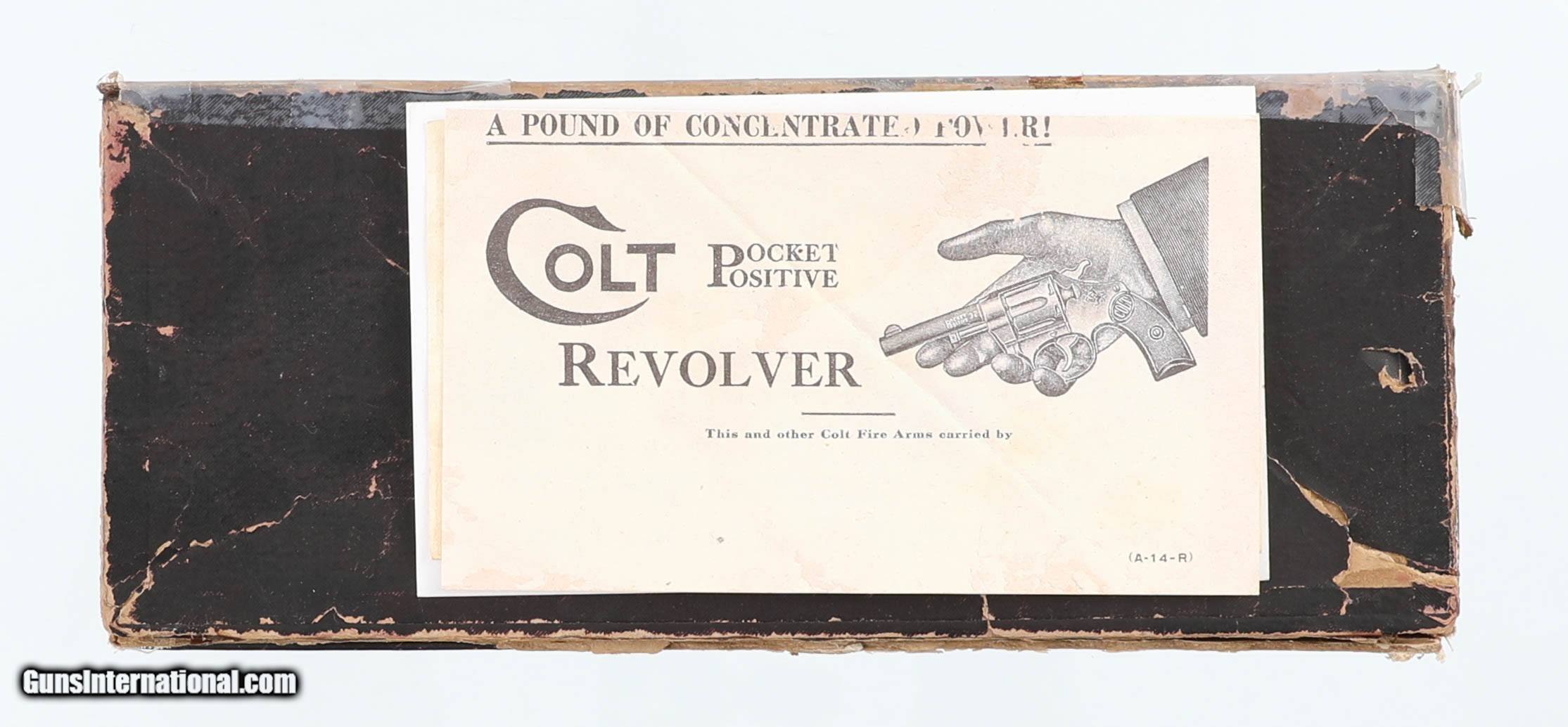 SOLD Manufacturer: COLT Model: POCKET POSITVE Serial Number: 1140?? Barrel Length: 3 1/2 Condition: EXCELLENT |