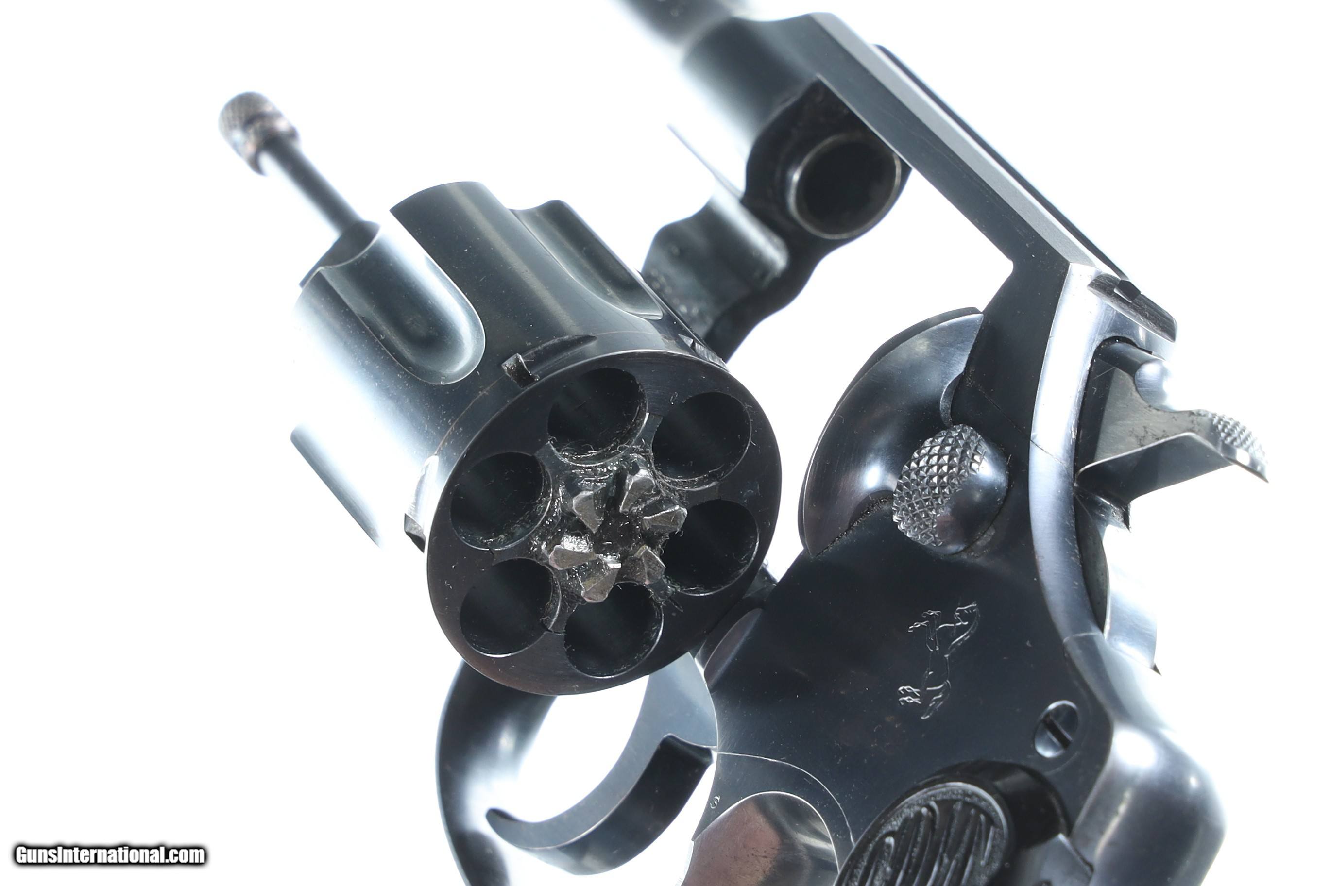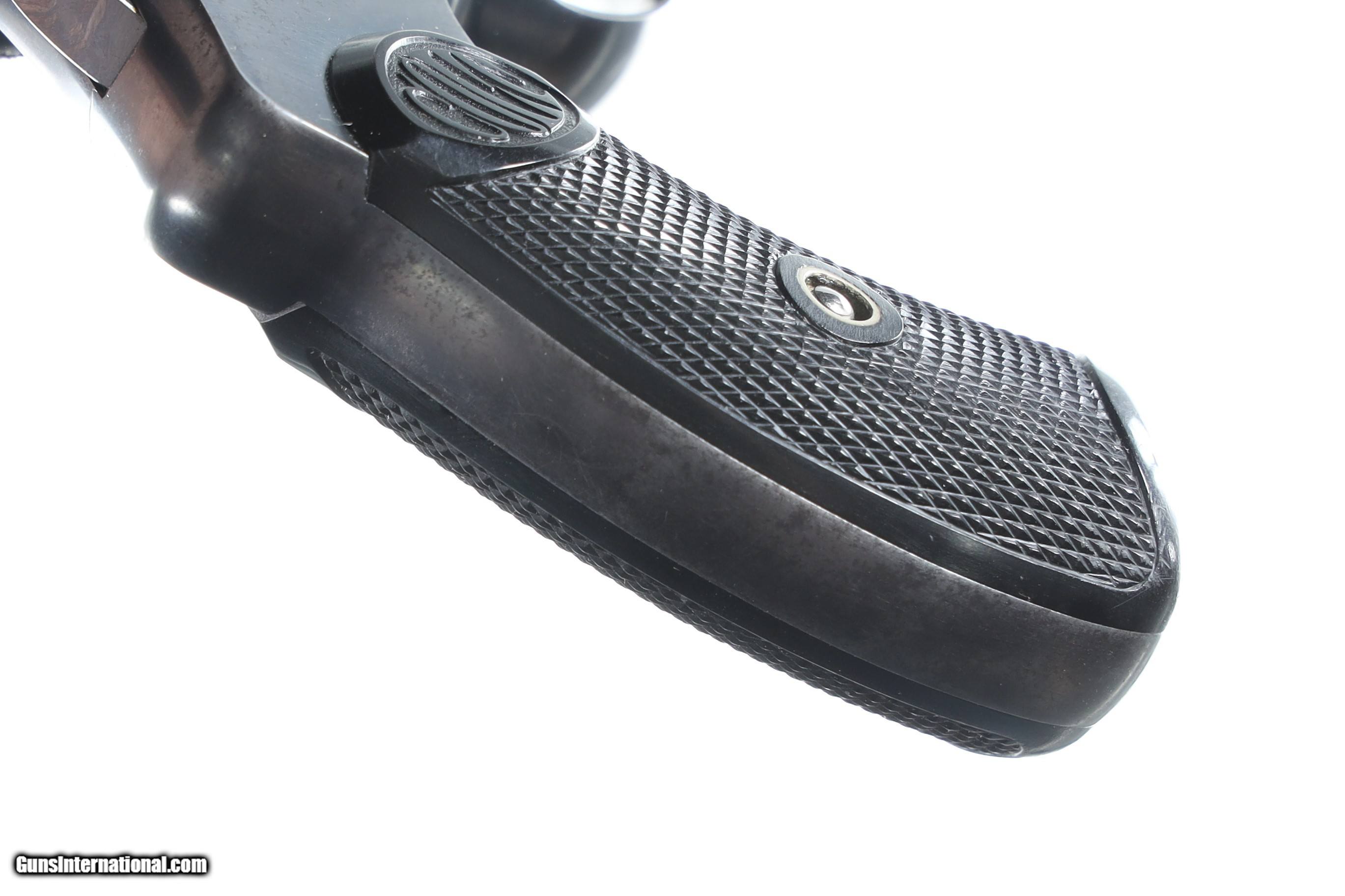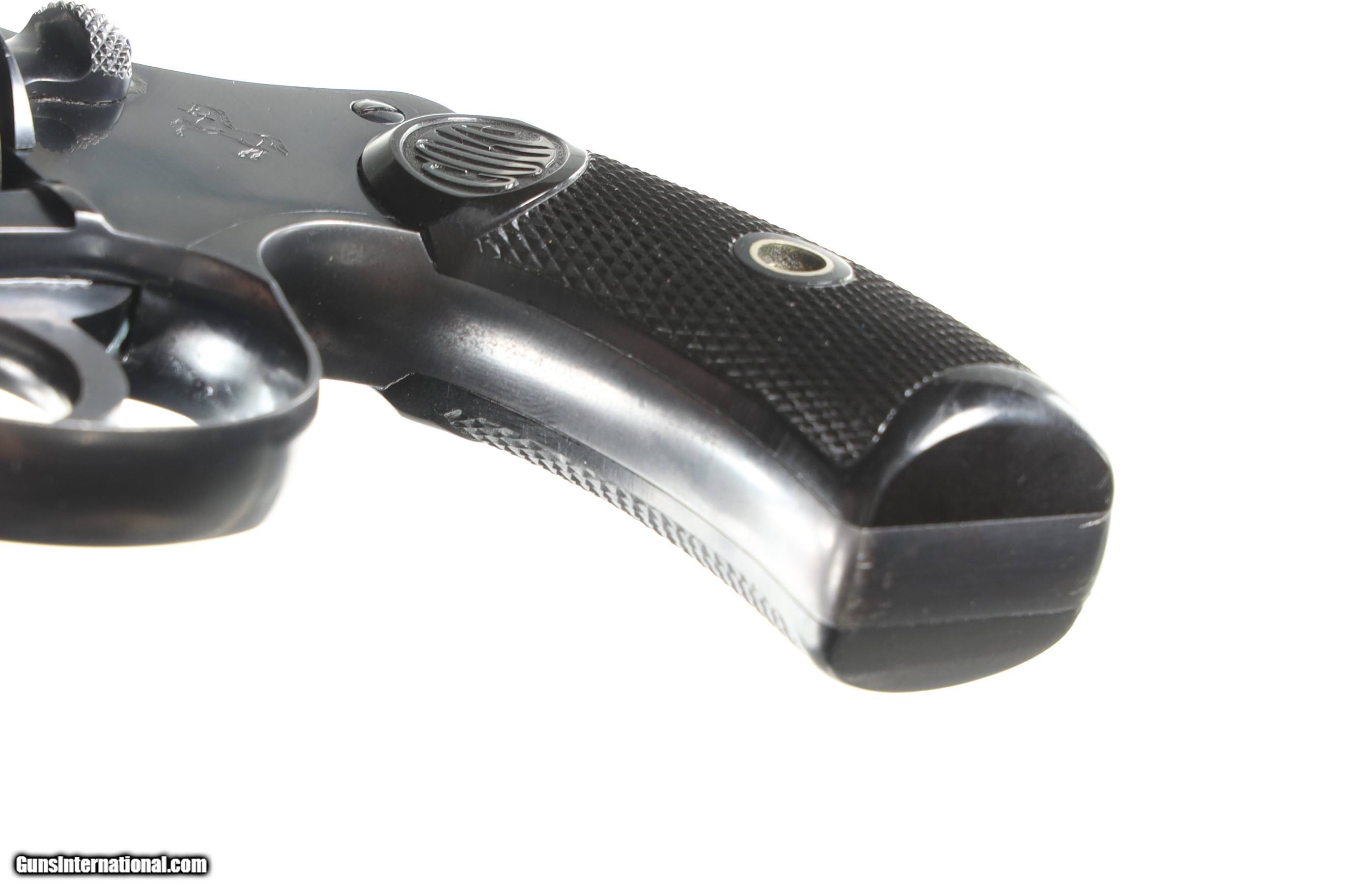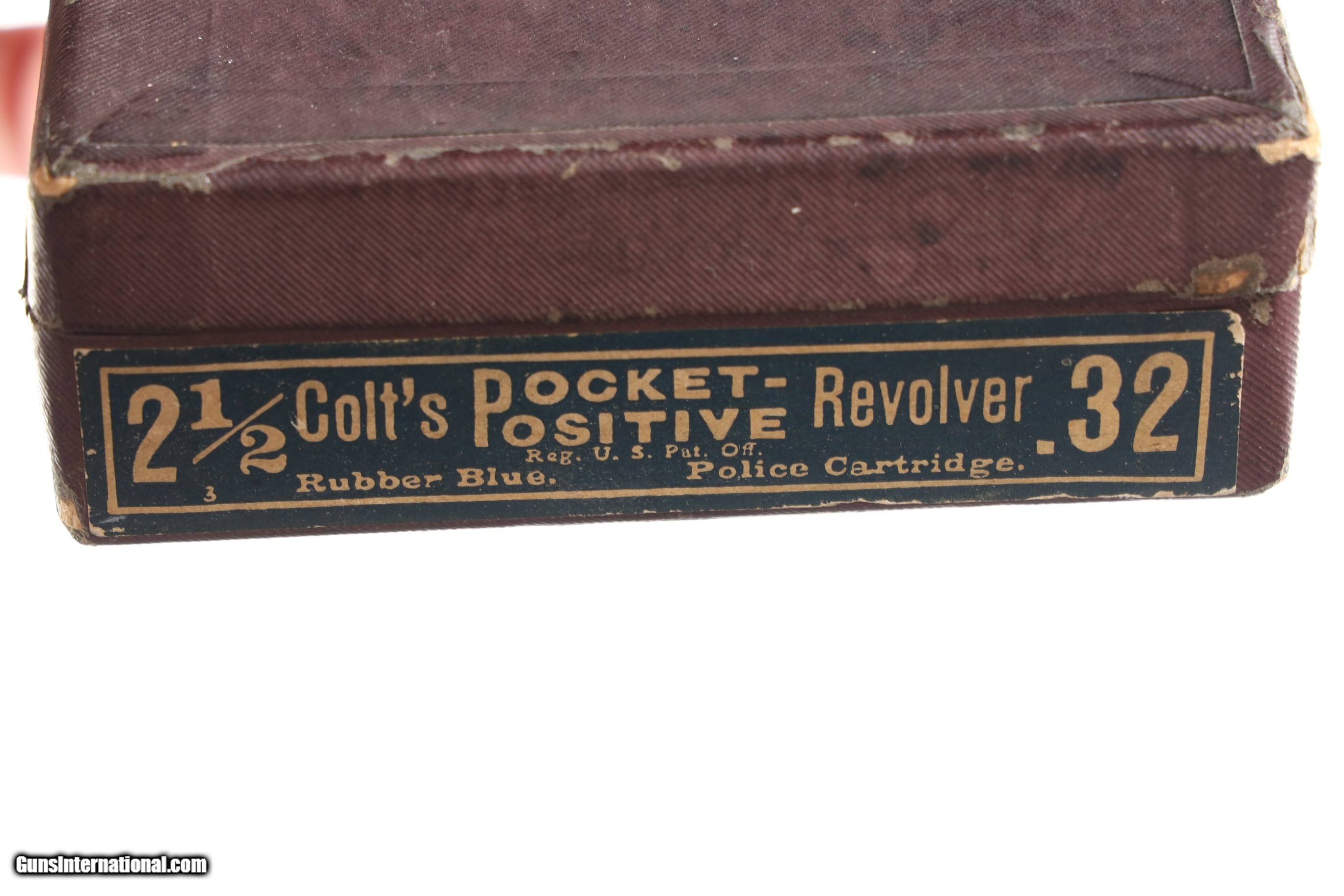 Description: Excellent with 97% blue finish with very light thinning on backstrap and at toe, bore and grips are excellent, box is very fine with full label, letter remains crisp, mechanically excellent. Factory letter lists this revolver in .32 caliber with a 2 1/2" barrel and blue finish and states this revolver was shipped on October 9, 1935, to John B. Varick Co. in Manchester, New Hampshire, for Frank Dunn of Wilson, New Hampshire. With original factory box. • Free Shipping, No Credit Card Fees. • Lay-a-way available for this firearm. • 1/3 Down, a 1/3 in 30 Days 1/3 in 60 Days. SOLD Curio/Relic: Yes Handgun Caliber: .32 S&W Long (.32 Colt New Police) Manufacturer: Colt Model: Pocket Positive Serial Number: 154462 Barrel Length: 2 1/2 |