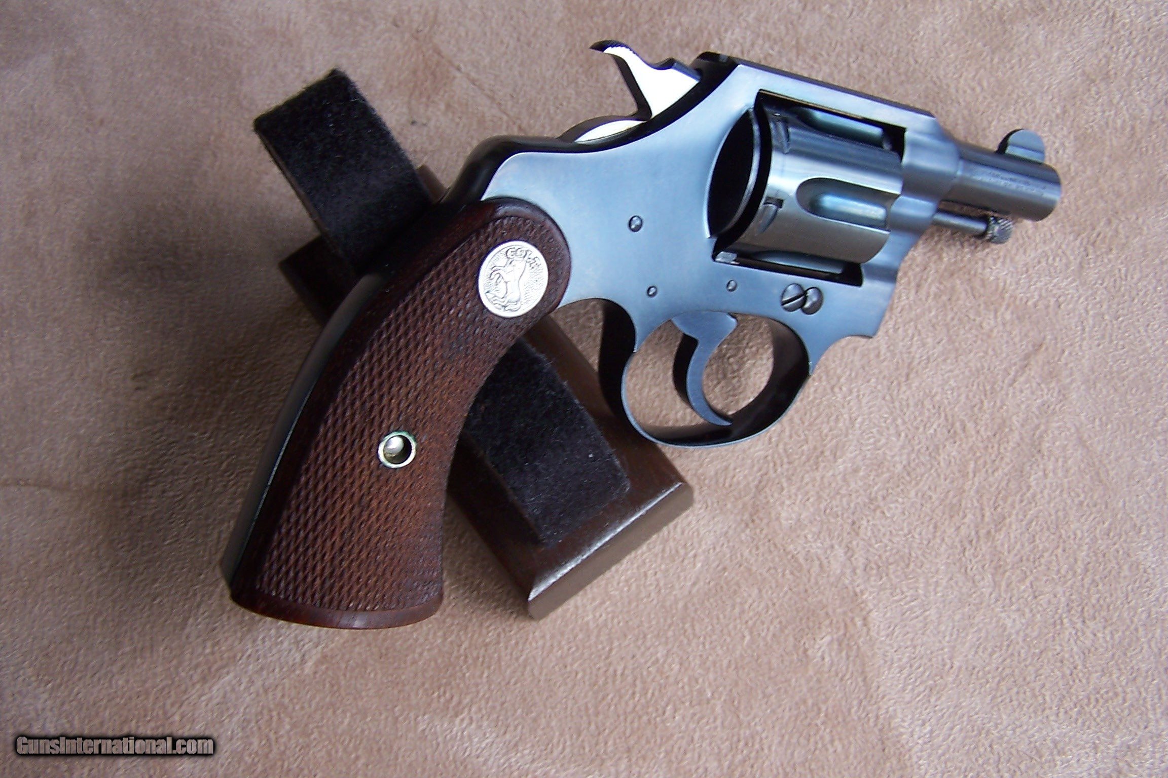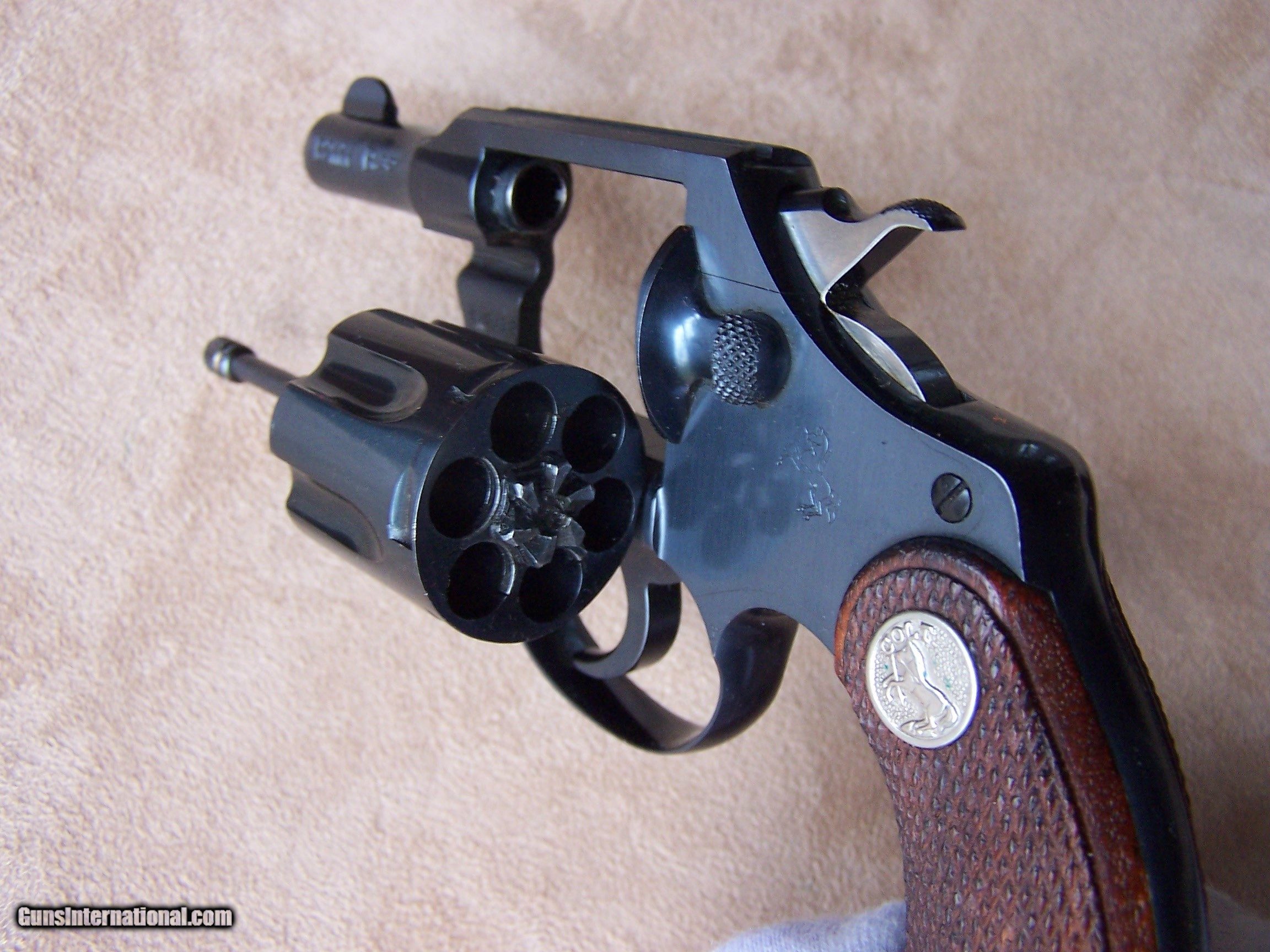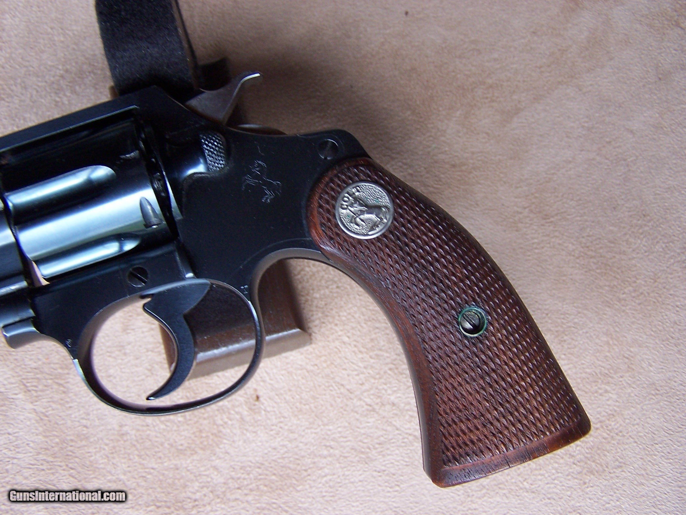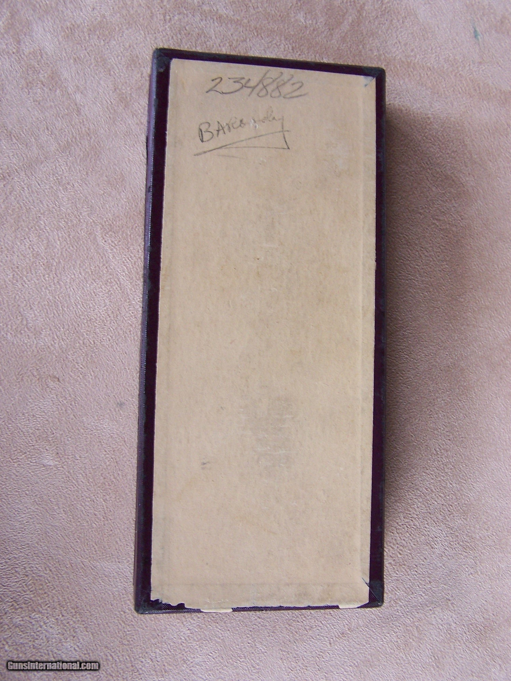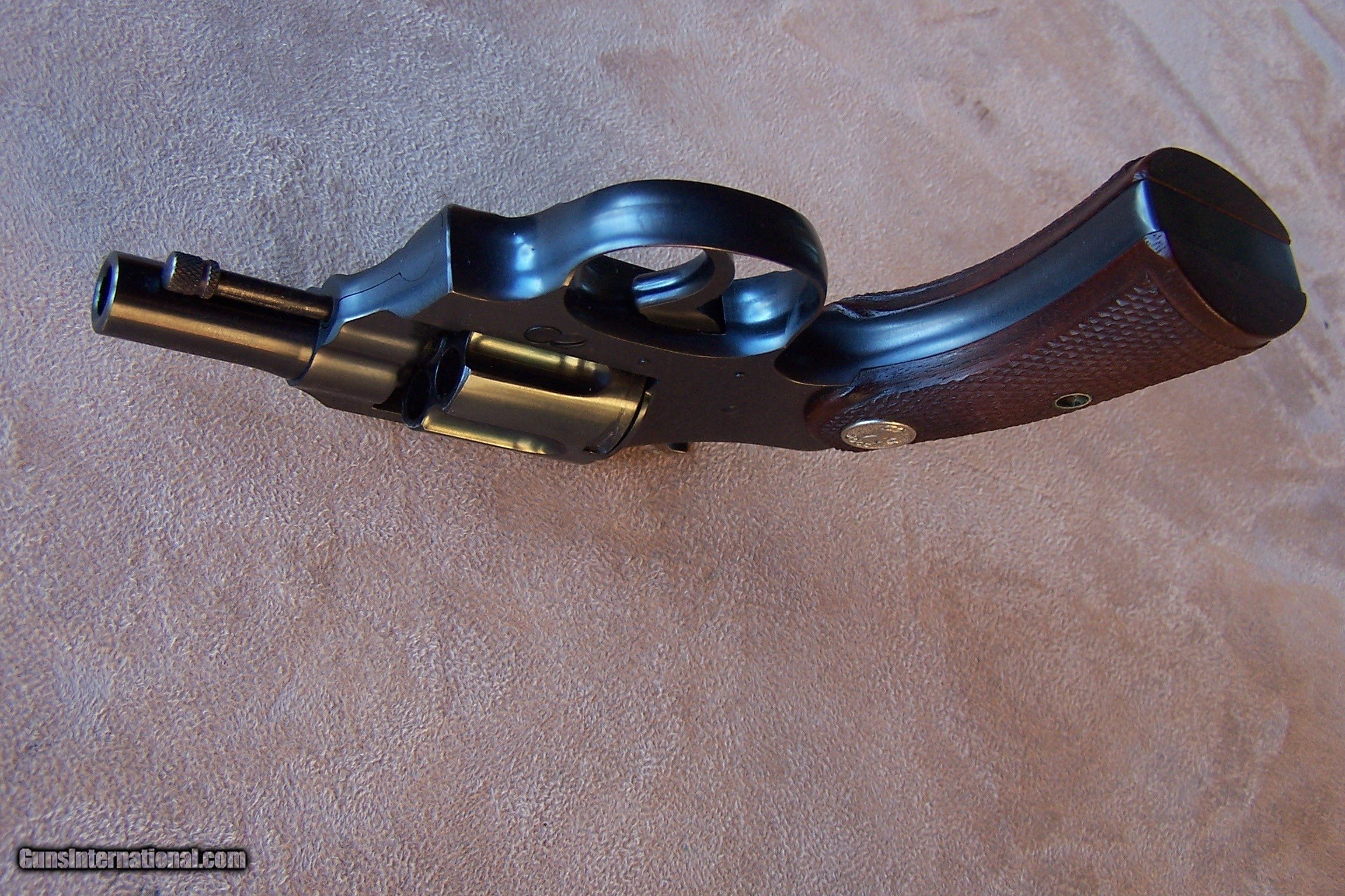 Description: Offered is a very rare Colt Pequeno model Police Positive .32 with the 2” barrel. This is one of only ten Pequeno models with the 2” barrel. These were produced by Colt for export to South America and chambered in .32 Police Cartridge (.32 S&W). They were all made on the smaller .32 frame and most were offered with a 2 1/2”, 4”, 5” or 6” barrel length. The barrels on the Pequeno models were marked Police Positive B .32 and serialized between S/N 226,000 & S/N 237,000 range. The word Pequeno means little one in Spanish. This one remains in its original factory box serialized to the gun. The factory box remains in excellent plus condition and void of any broken corners, tears or box damage. It also has the Colt brochures in the box. The factory Colt Archive letter is also included. These 2” examples were shipped to H&D Folsom Arms Company in New York City in June of 1941. The gun remains in new and unused & unfired condition with 99% of its original Colt factory blue finish. The original Colt factory checkered wood grips remain in 99% condition. This is the rarest and best condition Police Positive Pequeno that we have ever encountered. This gun is over 50 years old and meets the requirements of the C&R license. I offer a three-day non-firing inspection period and always want the buyer to be satisfied with their purchase. The gun will be packed correctly in a hard rifle case and shipped with insurance to your FFL dealer in the continental United States for $65 (California is extra because I have to ship through my local dealer). This gun requires a C&R or FFL license for transfer. I ship the following day after the payment arrives and provide tracking information. Please see my other collectible firearms that I have listed. Thanks for your interest and please let me know if you have any questions. Price is $3,850.00 plus shipping. Please Note: A same as cash price Lay-A-Way plan is available on this gun. Please call to discuss. Important Note: If you want to insure buying this and prevent anyone else from getting it ahead of you just Click on the Blue BUY-NOW button to the right of the price below as this closes the . SOLD Curio/Relic: Yes Handgun Caliber: .32 S&W Long (.32 Colt New Police) Manufacturer: Colt Model: Police Positive Pequeno Serial Number: 234882 Barrel Length: 2 Condition: 99%+ Metal Condition: 99% Wood Condition: 99% Bore Condition: As New Finish: Original Colt Bluing Manufacture Date: June 1941 Extras: Original Colt factory box Item Location: Tennessee |