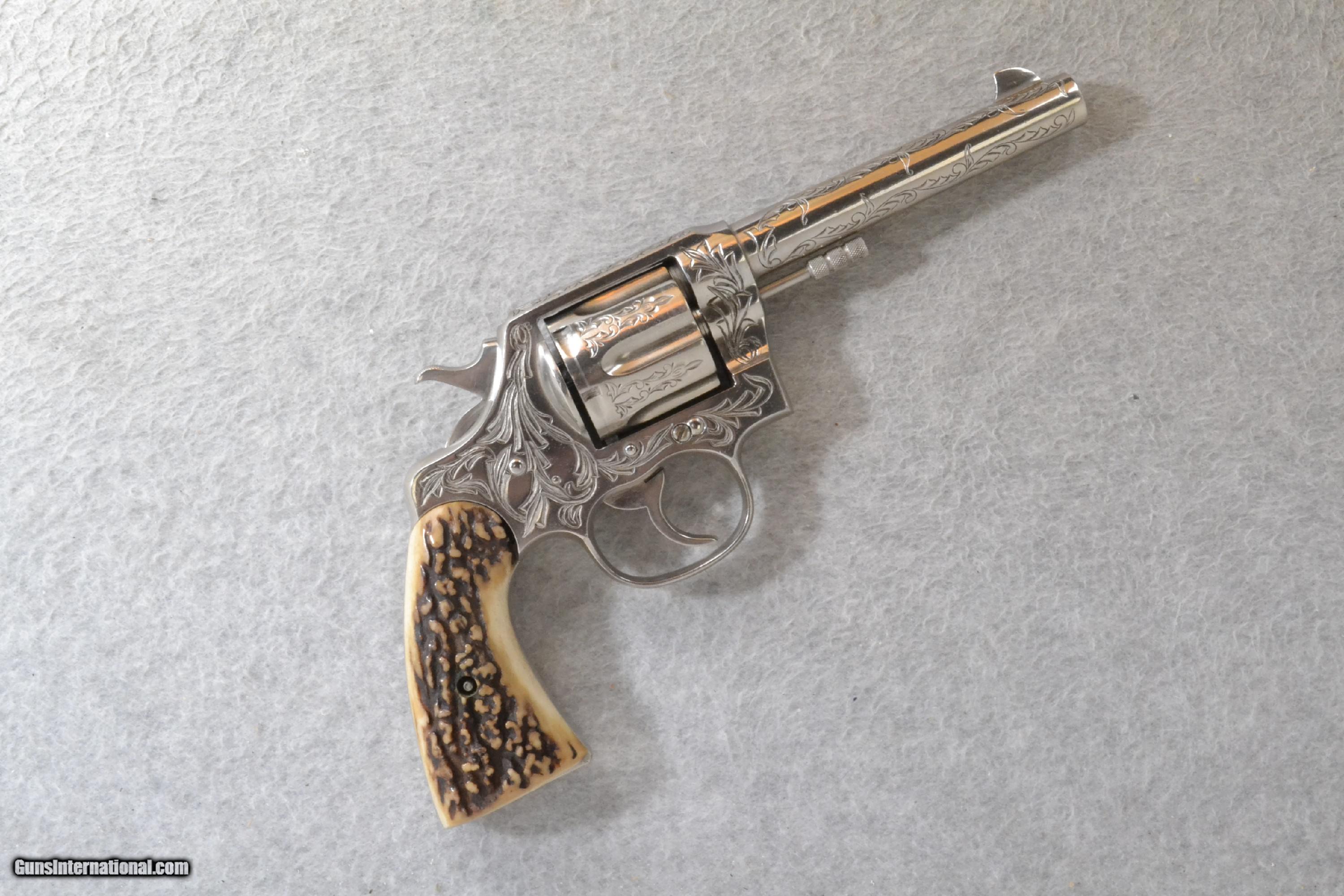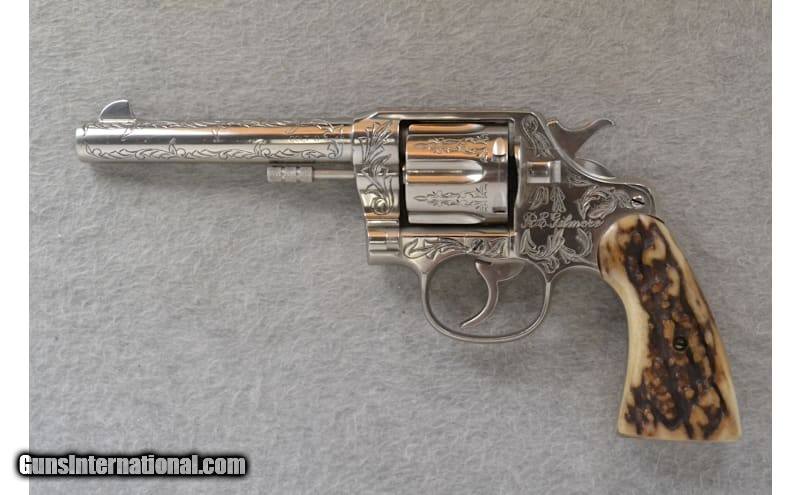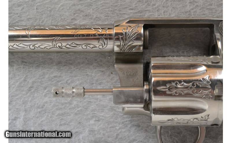 Description: This Colt U.S. Army Model 1909 is a right-hand double action revolver in .45 Long Colt Cal. The barrel is 5.5 inches long. It has a fixed blade front sight and an integrated notch rear sight. The pistol grip is a Colt "Stag-Lite" polymer. .45 Long Colt SOLD Chambers: 6 rounds Bore Condition: Very good Barrels: 5.5 Weight: 2 lbs 14 oz Sights: "Fixed blade front, integrated notch rear Item Location: Richfield, WI |
