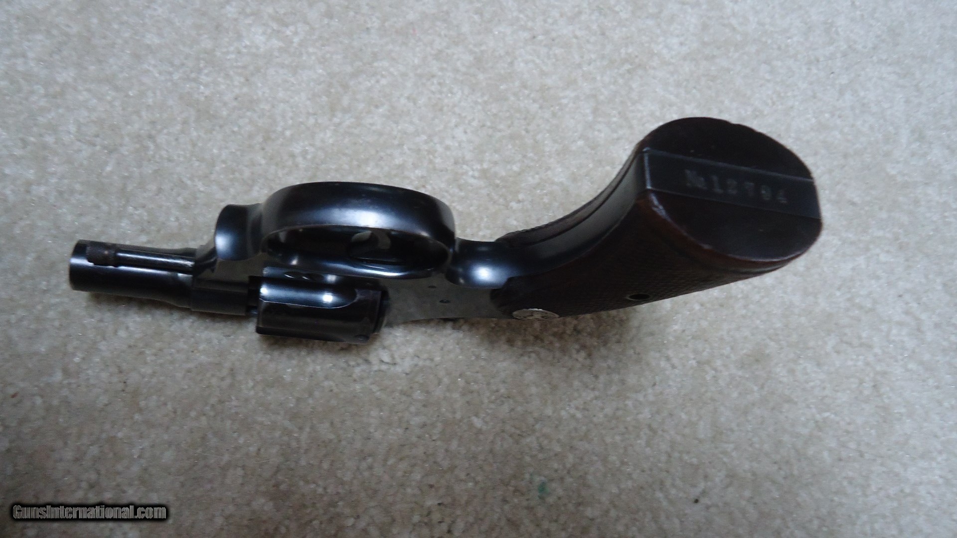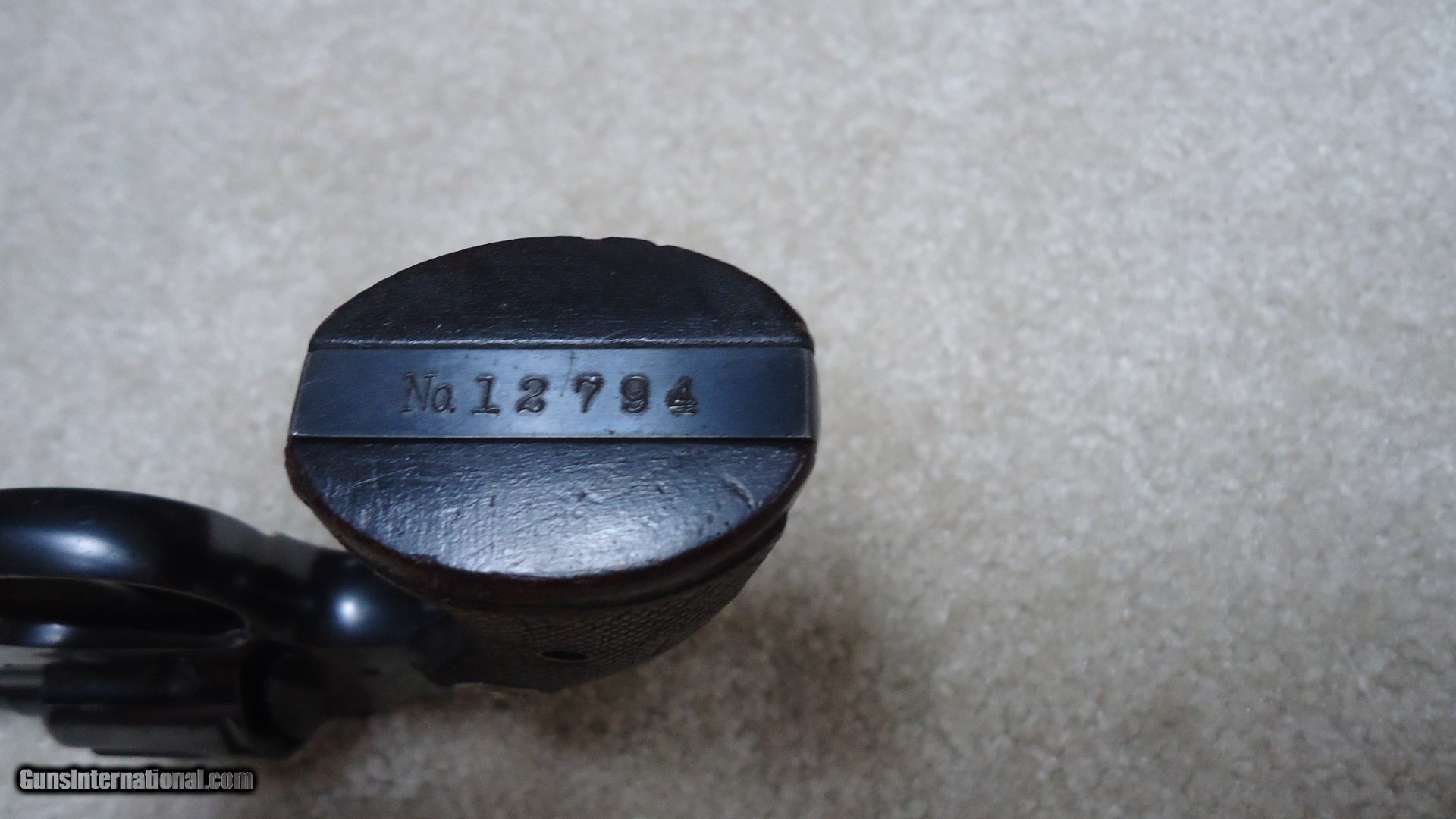 Description: Excellent 1931 Colt Banker's Special, .38 cal., Official sidearm of the U.S. Post Office Railway clerks, Colt Factory Letter, # 12794 applied at Colt Factory prior to shipment to Railway Mail Service April 7, 1931. Exc. blue, bore & wood. Money order or cashier's check + $ 30 shipping to your FFL or C&R FFL holder. SOLD Curio/Relic: Yes Manufacturer: Colt Firearms Model: Bankers Special Serial Number: 350232 Caliber Info: ..38 S&W, (NOT .38 Special) Condition: Exc Metal Condition: Exc Wood Condition: Exc Bore Condition: Exc. Barrels: 2 Action: Double Finish: Blue Manufacture Date: 1931 Extras: Colt Factory Letter |