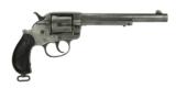 Colt Frontier Six Shooter .44-40 caliber revolver. Manufactured in 1899. .44-40 Caliber. Colt Frontier Six Shooter on barrel. Barrel length 7 ½”. Bore has good plus rifling and scattered corrosion in the grooves. Grips are excellent. No chips or cracks. This is a sharp gun with clear markings, excellent action. Gun has an even gray patina and shows no abuse. Popular .44-40 Frontier Six Shooter! Reasonably priced!