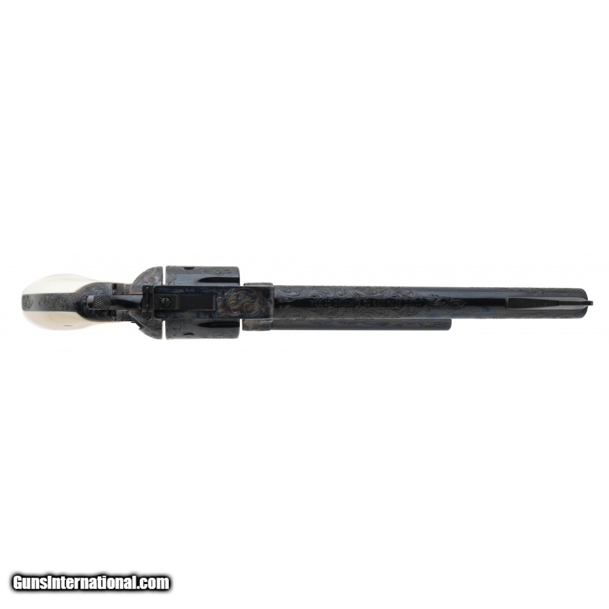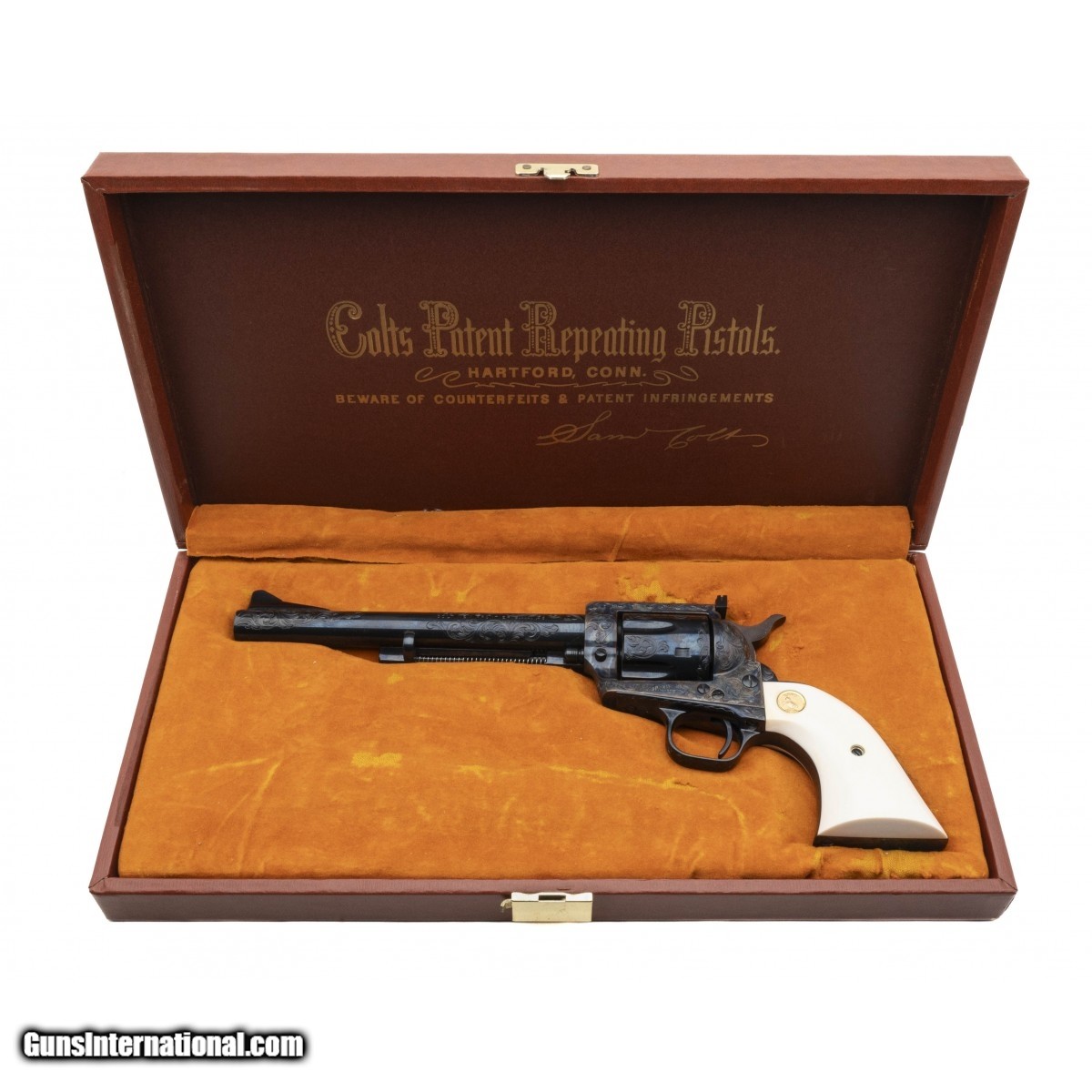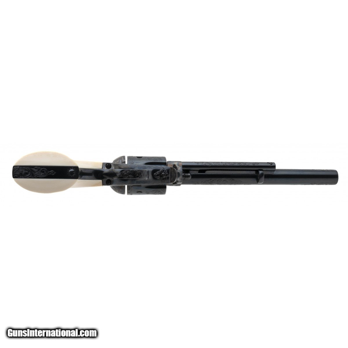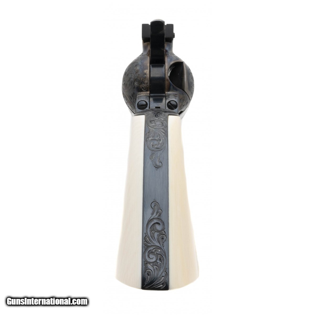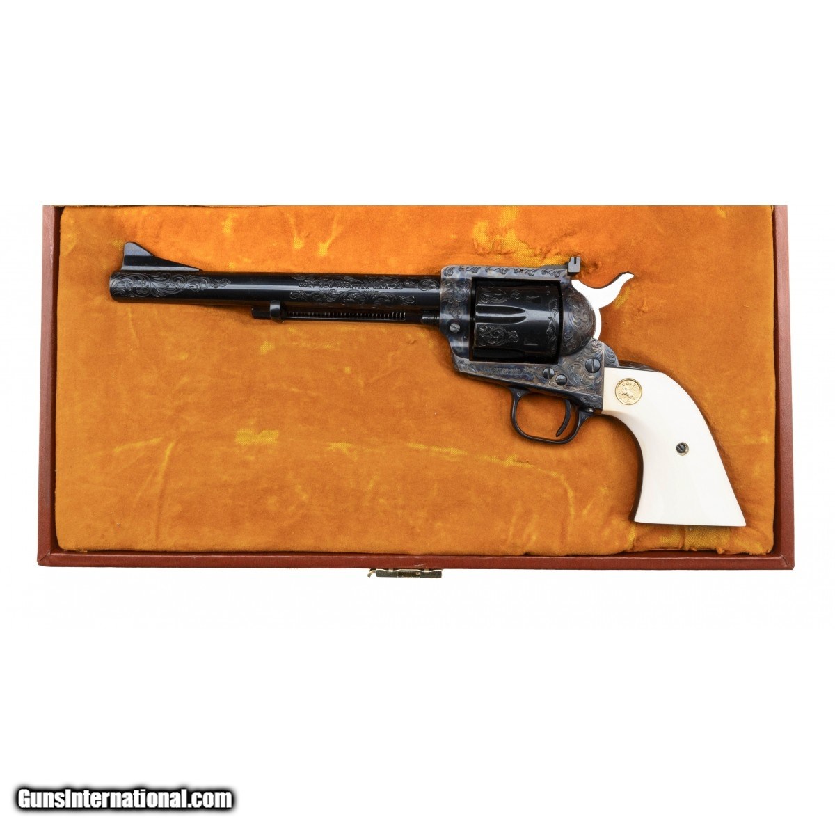 Description: " SN: 10345NF. Made in 1983, .45 Colt with a 7.5"" barrel. Factory ""C"" grade engraved 3rd Gen single action revolver with medallion ivory grips. Excellent overall condition, in factory case. A beautiful piece! Comes with factory letter. SOLD |