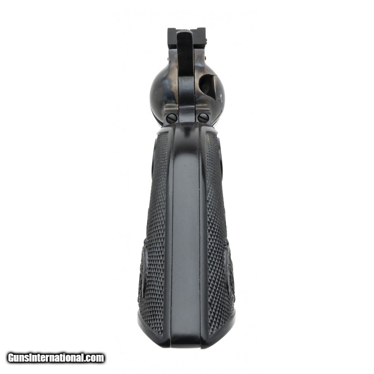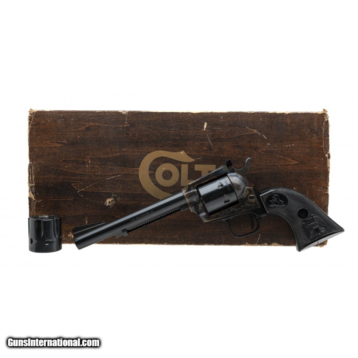 SN: G197345. Made in 1976. .22 with a 6" barrel. Bore is very good. Single action .22 Colt revolver with a Long rifle cylinder and Magnum cylinder. Finish is in very good condition with vibrant case colors on the frame. Grips show minimal wear. Revolver comes with box and paperwork. Overall very good condition.
