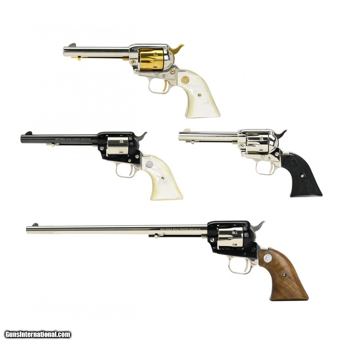 Description: " Colt Single Action Frontier Scout .22 LR caliber revolver. Colt Lawman Series 4-Gun set with matching serial numbers. The cases are missing, only the guns are included. Excellent condition. A hard to find 4-gun set.