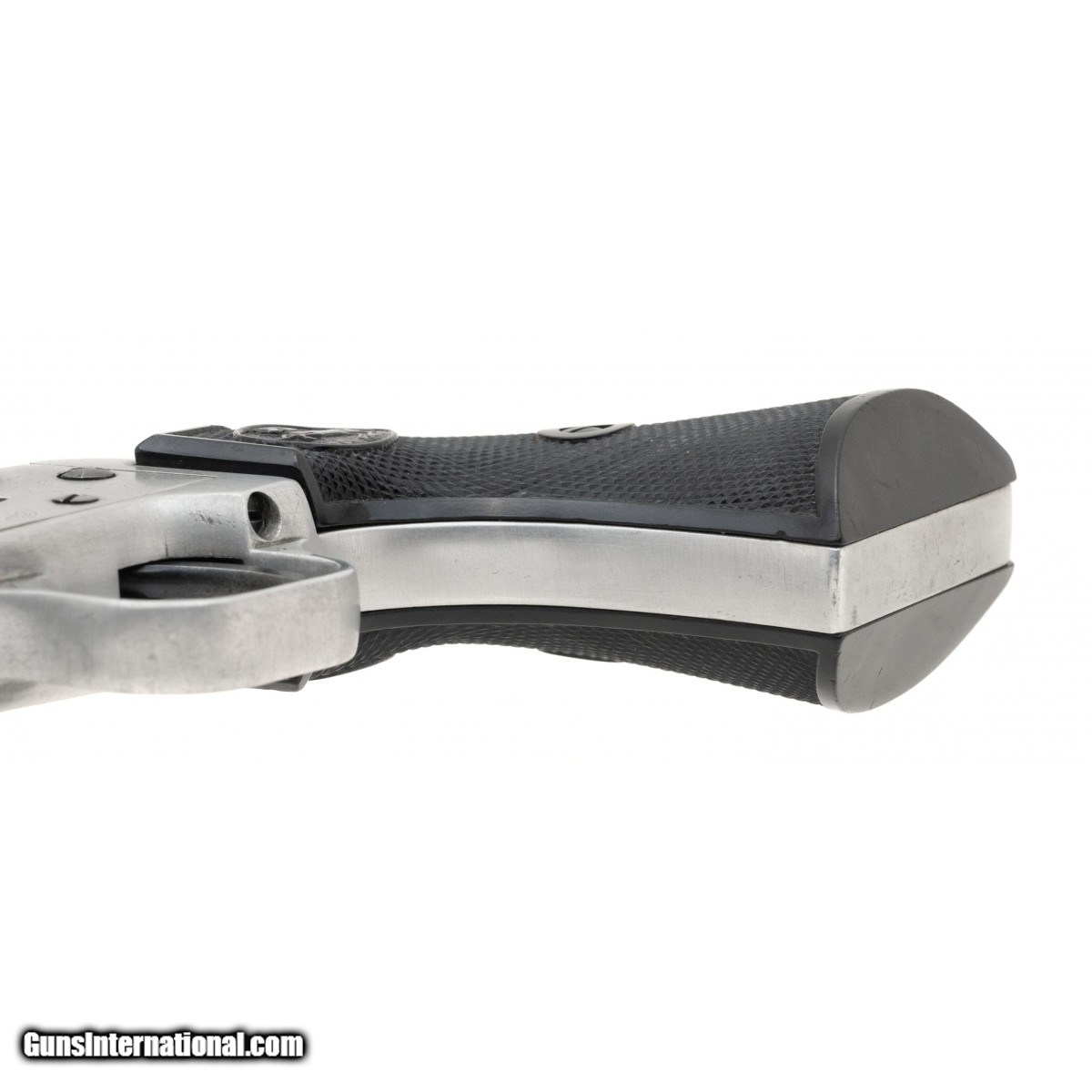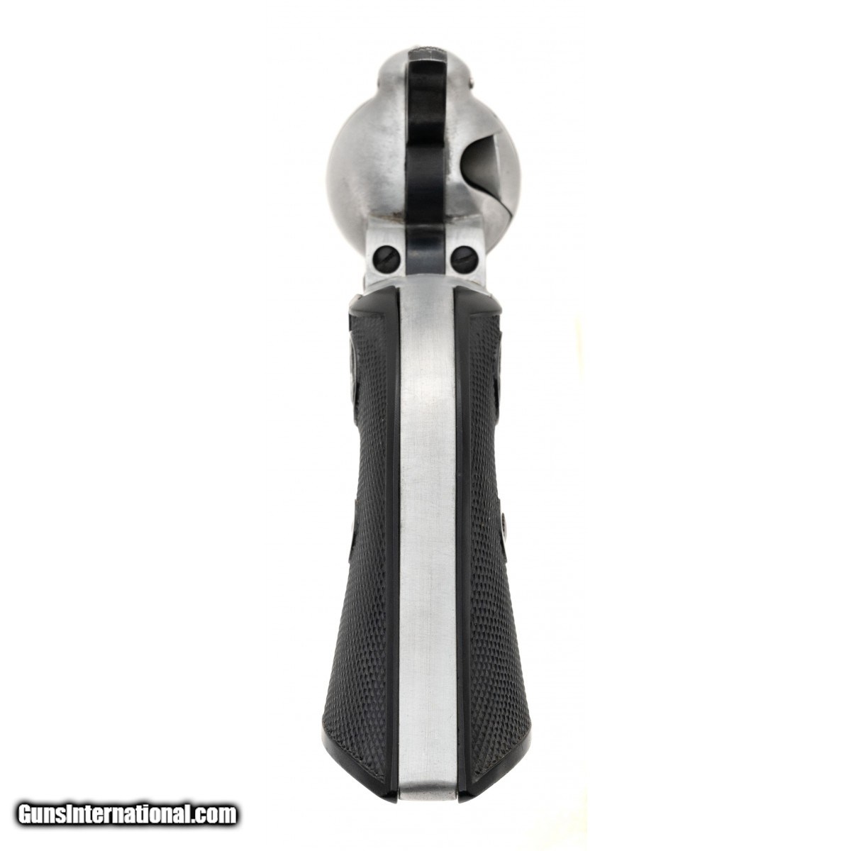 Description: " SN: 4619Q. Made in 1957, .22 Long Rifle, 4.75"" barrel. Early aluminum frame two-tone rimfire revolver with 6rd cylinder. Has 90% of its blue. Overall very good condition. SOLD |