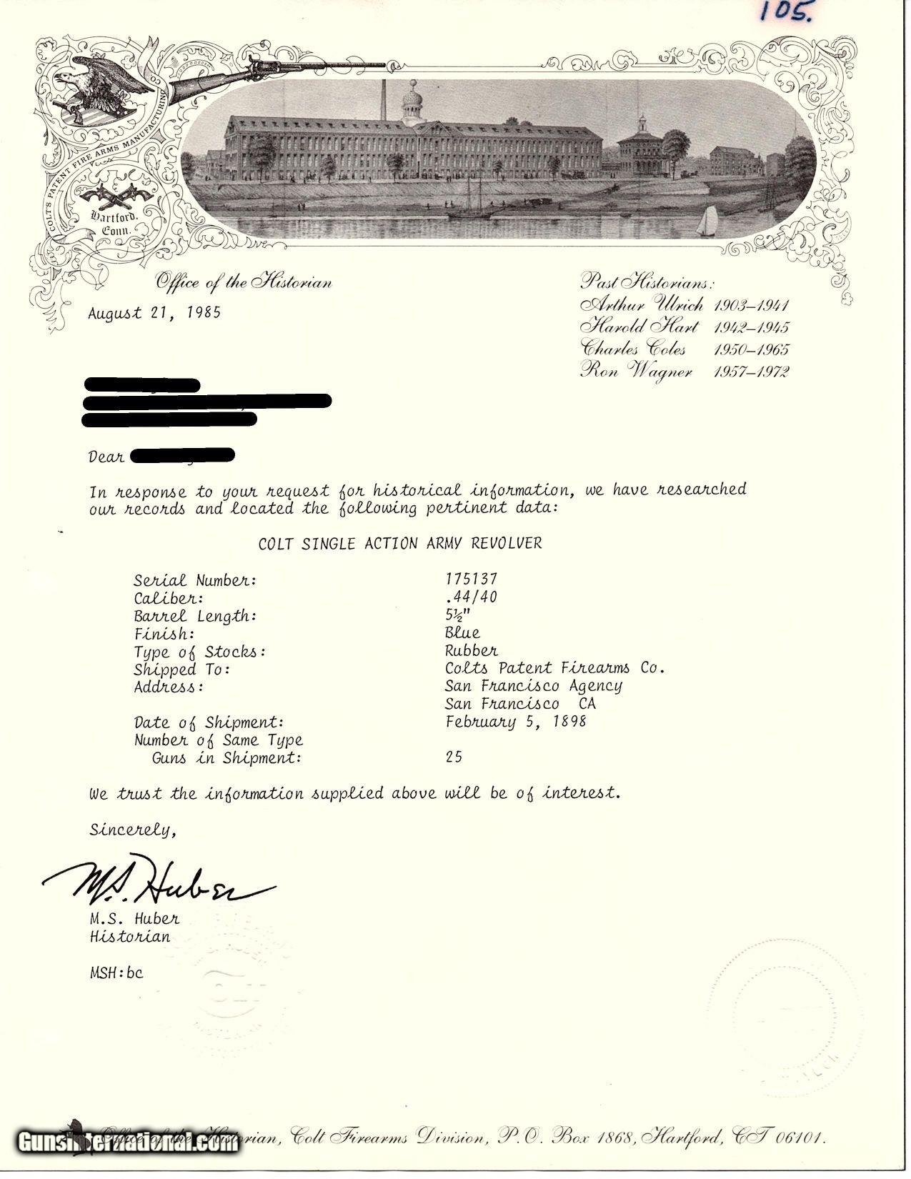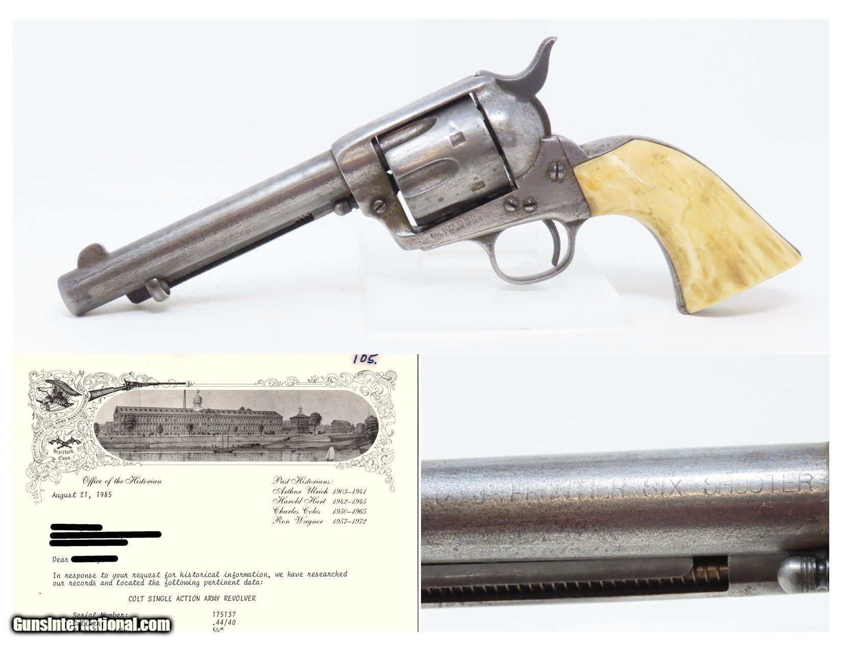 1898 SAN FRANCISCO, CA LETTER Antique COLT FRONTIER SIX-SHOOTER .44-40 SAA Colt’s .44 Caliber Single Action Army with Ivory Grips!