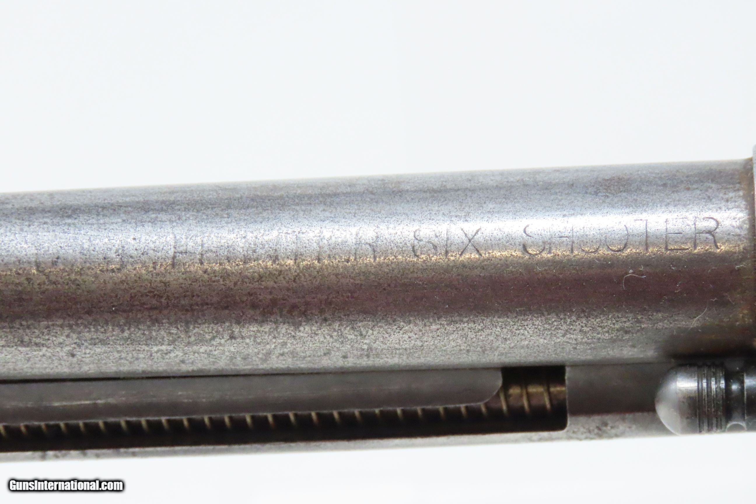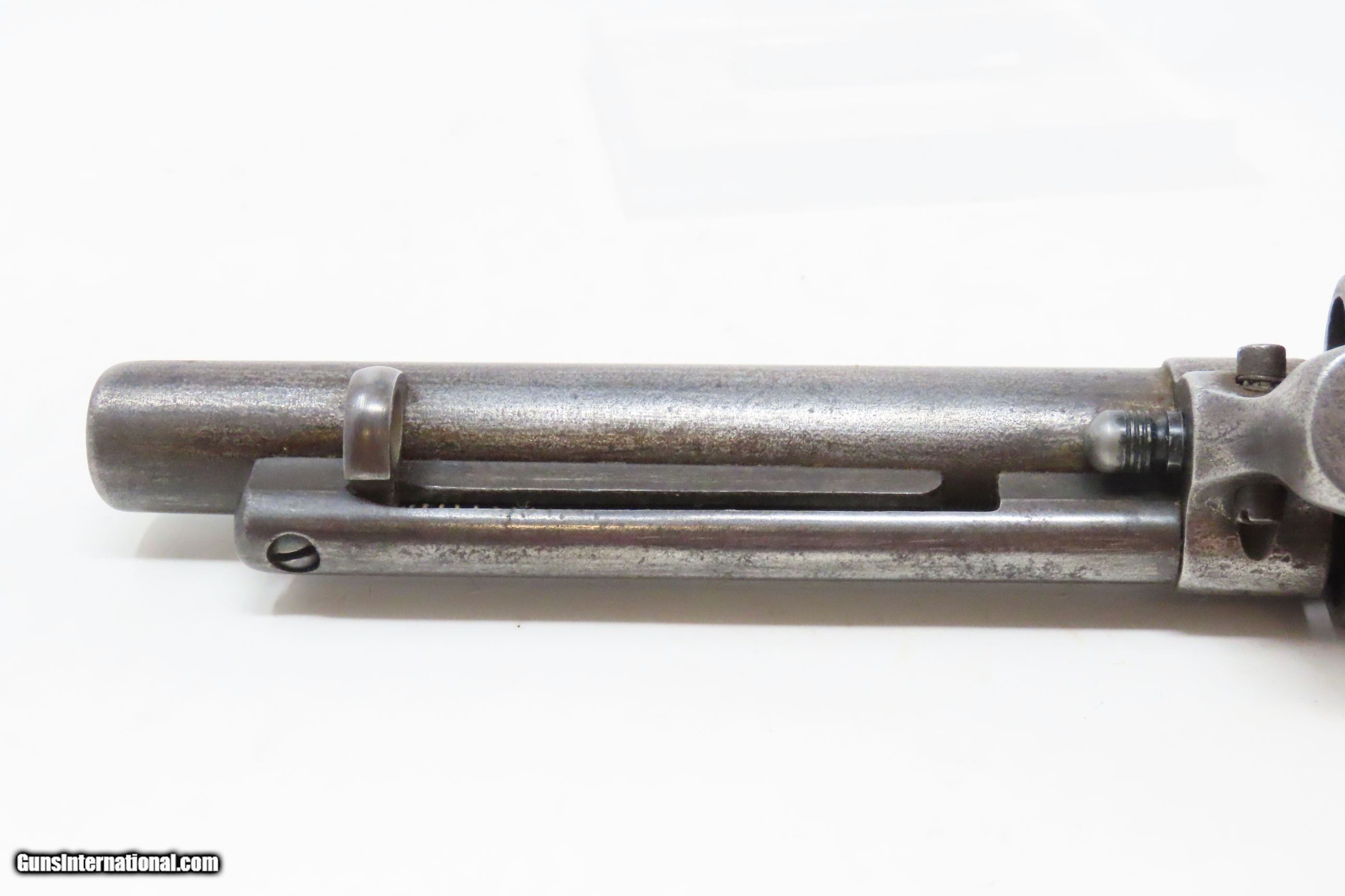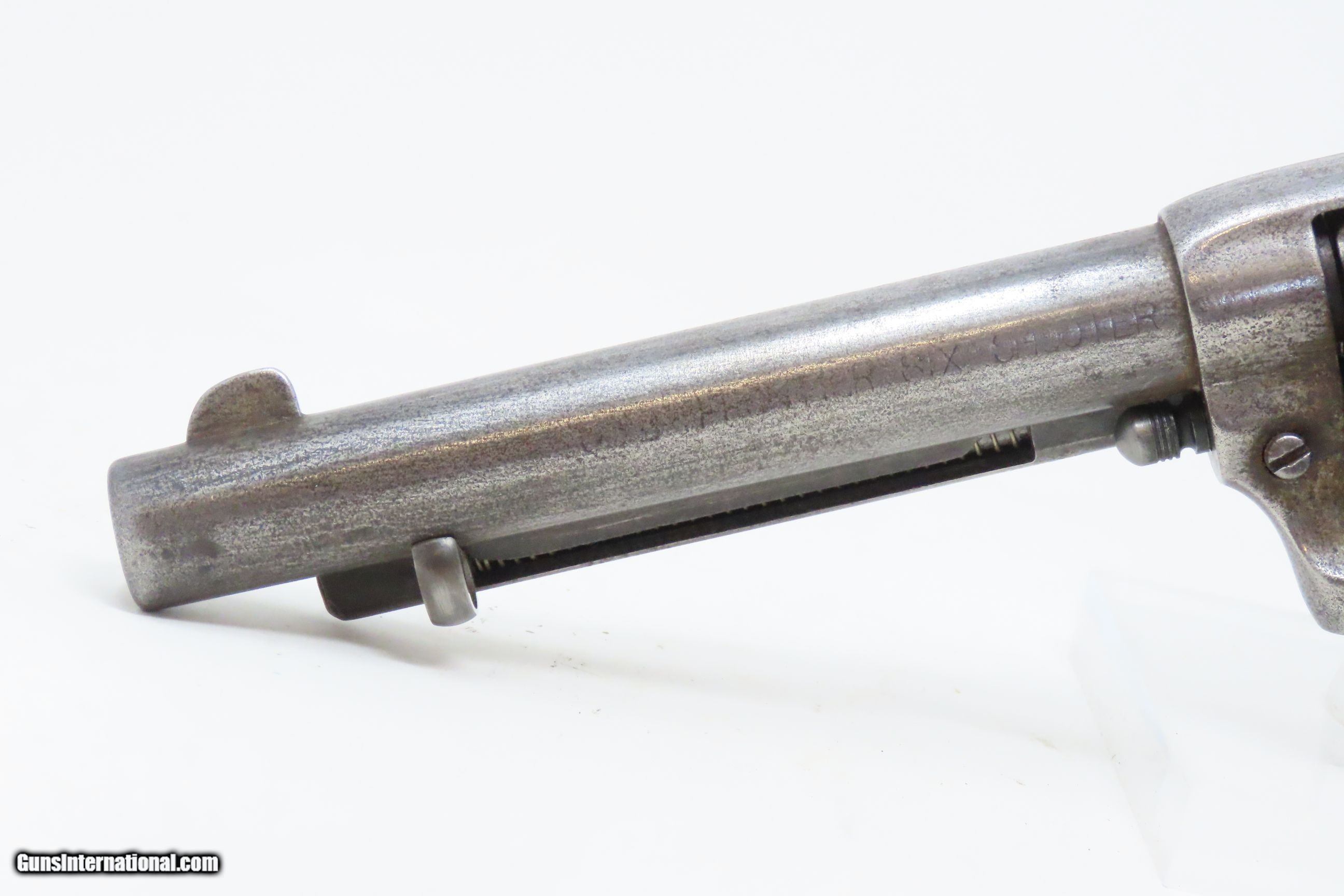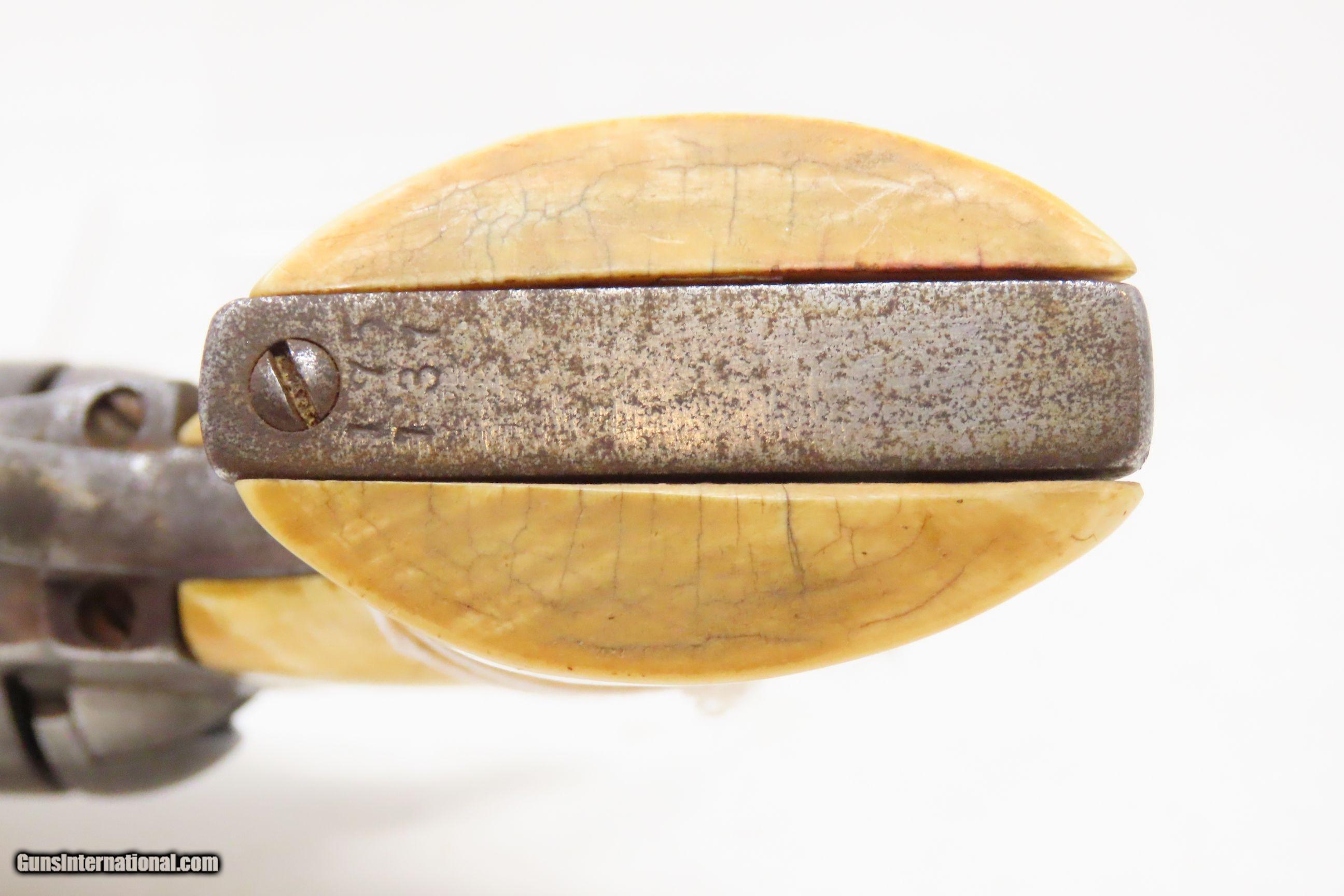 Description: 1898 SAN FRANCISCO, CA LETTER Antique COLT FRONTIER SIX-SHOOTER .44-40 SAA Colt’s .44 Caliber Single Action Army with Ivory Grips! Here we present an antique Factory Lettered Colt Model 1873 Frontier Six-Shooter Single Action Army Revolver in .44-40 WCF, manufactured in 1898 in Hartford, Connecticut. The Colt Frontier, or Frontier Six-Shooter was Colt's 1873 revolver chambered in .44-40 Winchester caliber instead of .45 so that it was compatible with Winchester’s Model 1873 ammunition. Production began in 1877. “Colt Frontier Six-Shooter” was the actual name of the Colt pistol model, and this was originally acid-etched on the left side of the barrel. Later, the legend was roll-stamped until 1919, when the caliber designation ".44-40" was added. These revolvers made excellent companions to rifles at the time as they were chambered for the same ammunition, meaning that the user only had to keep one type to feed both guns. Though Colt enjoyed the largest contracts of any handgun maker during the American Civil War, it had to rely on its array of percussion fired revolvers, namely the 1860 Army until the Smith & Wesson owned Rollin White Patent expired in 1869. This enabled them to begin making revolvers with completely bored through cylinder chambers in order to utilize modern metallic cartridge ammunition in the most effective manner. In 1869, Colt began development of a suitable cartridge revolver in earnest, first coming out with a number of conversions for their percussion lines, until 1872 when they debuted what was to become the Colt Model 1873 Single Action Army in the 1872 U.S. Trials. Needless to say, it won, and became the Army’s revolver of choice. It also became the sidearm of choice for many others like cowboys, guards, lawmen, crooks, shopkeepers and all manner of civilians. This revolver letters as you see it with the exception that the hard rubber grips have been replaced with ivories: 5 ½” barrel in .44 Winchester. It was shipped to Colt’s Patent Firearms Co. San Francisco Agency in California along with 24 others 5 February 1898. The overall condition is very good. Original gray patina throughout. The action is excellent with all cock-notches holding, all 4 clicks, and solid cylinder lockup. The bore is in very good condition: reflective with good rifling. The antique ivory grips are solid and in great shape. The numbers match. A very nice, lettered Frontier in .44 shipped to Colt’s Agency in California at the end of the 19th Century! Own the original! This is a legitimate antique and not a reproduction. Barrel is 5-1/2 inches. Caliber: .44-40 Winchester Center Fire Overall condition as seen in photos. Very Fast. Very Safe. FREE SHIPPING WORLDWIDE. Delivered directly to your door by express mail! Guaranteed AUTHENTIC & Includes CERTIFICATE OF AUTHENTICITY. ancestryguns $6400 #228323 SOLD Antique: Yes |