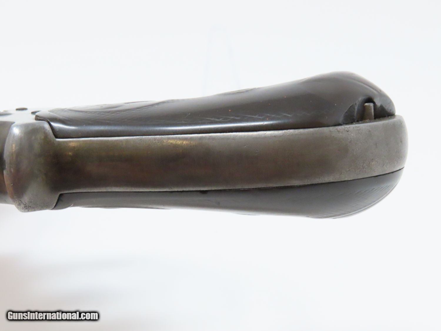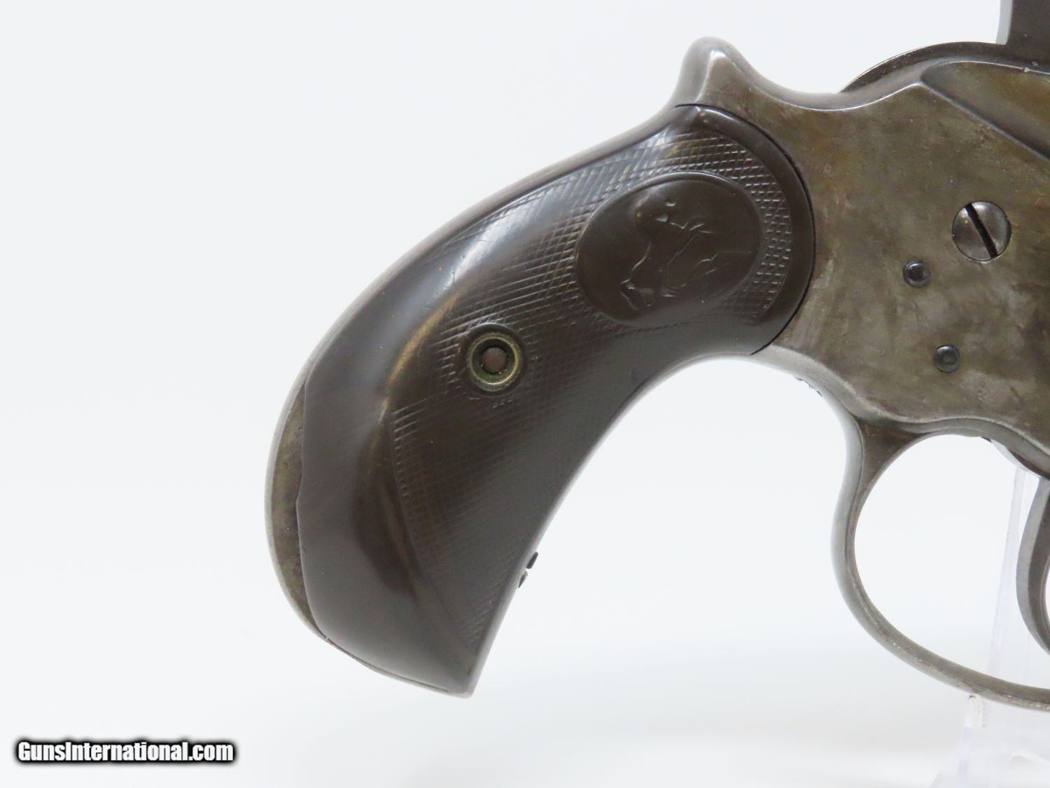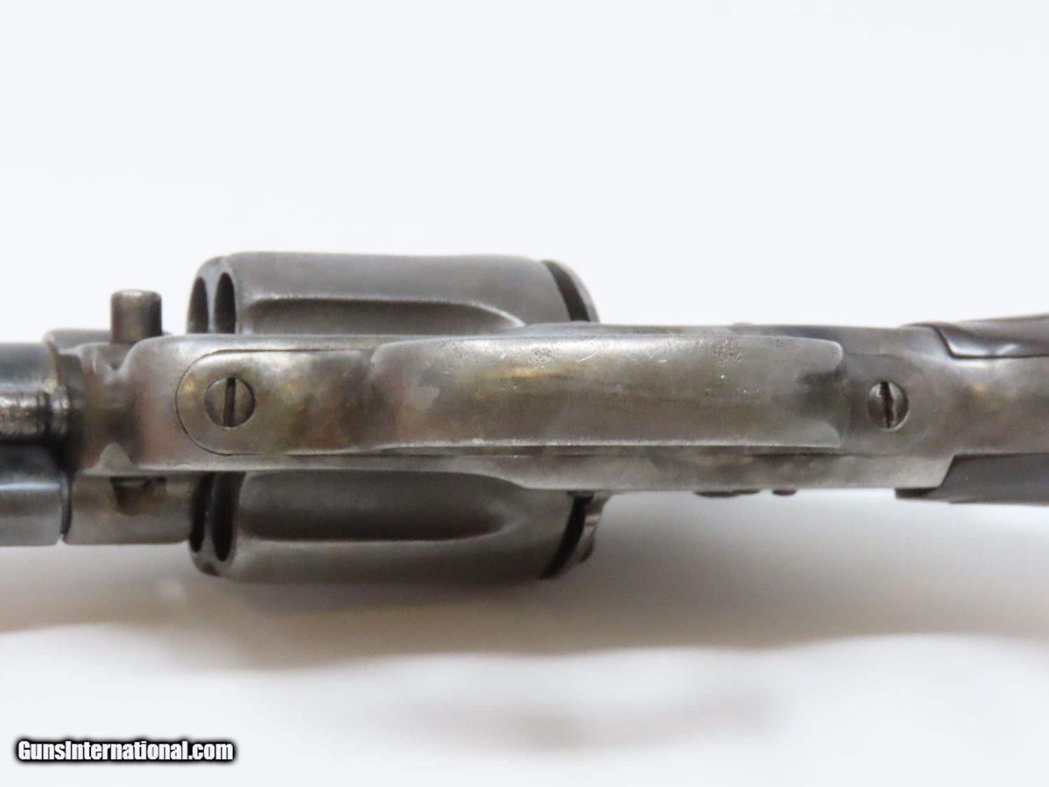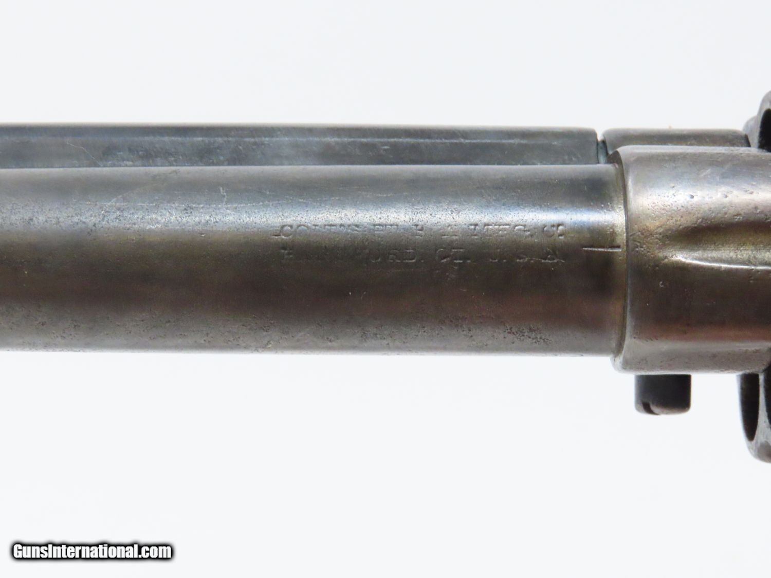 Description: Antique COLT FRONTIER SIX-SHOOTER Model 1878 .44-40 DOUBLE ACTION Revolver HARD TO FIND .44-40 WCF Colt 6-Shooter Made in 1898! Here we present an antique Colt 1878 Double Action Frontier Revolver, made in 1898 in Hartford, Connecticut. The M1878 was designed by William Mason, Colt's factory manager and Charles Brinckerhoff Richards, Superintendent of Engineering. The 1878 Frontier was a much larger and more reliable version of the Model 1877 Lightning and Thunderer, Colt’s first double action revolver. The 1878 Frontier also offered a much more comprehensive array of calibers, compared to the 1877’s three offerings. Despite all of this, the Model 1877 was clearly the popular favorite as over 166,000 were produced versus 51,210 of the Model 1878 made between 1878 through 1907. Out of the 51,210 Model 1878 revolvers made, 4,600 were made for the United States Ordnance Department in 1902 and known as the “Philippine” models. They were intended to equip the Philippine Constabulary in the Philippine Insurrection. The overall condition is good. The action is strong. The cylinder has a bit of endshake and play but it does index and lockup on each chamber. The bore is in good condition with visible rifling and a frosted appearance. The chip on the grip has been smoothed over with lots of handling. The lanyard ring was removed long ago. The top of the barrel is marked “COLT’S PT. F. A. MFG. CO./HARTFORD, CT. U.S.A.”. The side is marked “COLT FRONTIER SIX SHOOTER”. A great double action alternative to the Colt Single Action Army! Own the original! This is a legitimate antique and not a reproduction. Barrel is 4-3/4 inches. Caliber: .44-40 WCF Overall condition as seen in photos. Very Fast. Very Safe. FREE SHIPPING WORLDWIDE. Delivered directly to your door by express mail! Guaranteed AUTHENTIC & Includes CERTIFICATE OF AUTHENTICITY. ancestryguns $1650 #20204 SOLD Antique: Yes |