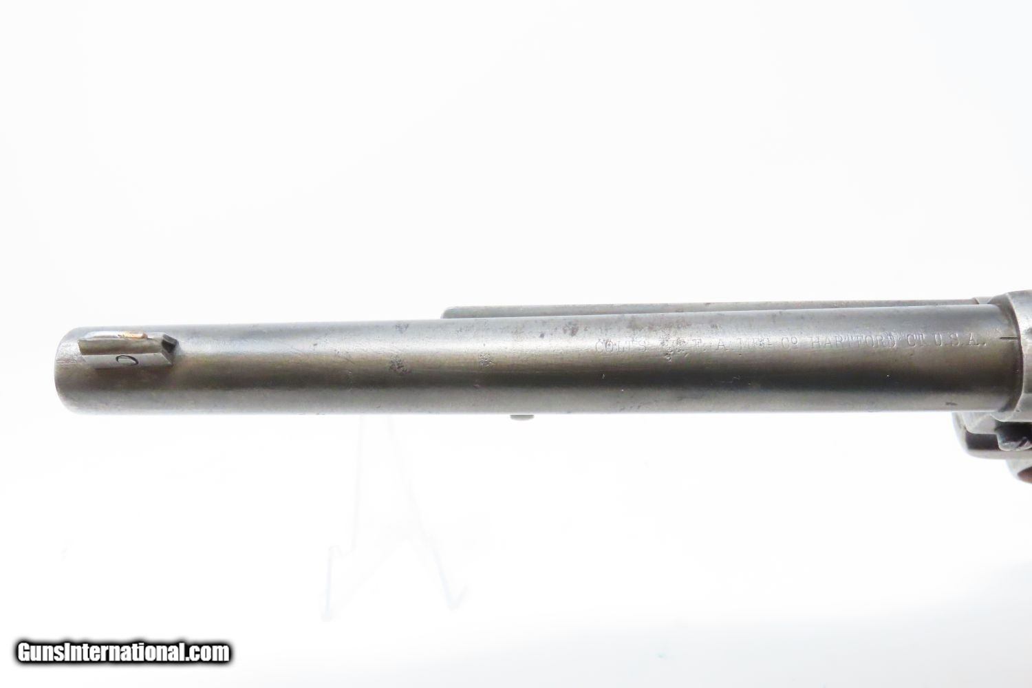 Description: Antique COLT Model 1878 “FRONTIER” .45 Long Colt DOUBLE ACTION Revolver “Double Action Army” .45 Caliber Colt Made in 1889 Here we present an antique Colt 1878 Double Action Frontier Revolver, made in 1889 in Hartford, Connecticut. The M1878 was designed by William Mason, Colt's factory manager and Charles Brinckerhoff Richards, Superintendent of Engineering. The 1878 Frontier was a much larger and more reliable version of the Model 1877 Lightning and Thunderer, Colt’s first double action revolver. The 1878 Frontier also offered a much more comprehensive array of calibers, compared to the 1877’s three offerings. Despite all of this, the Model 1877 was clearly the popular favorite as over 166,000 were produced versus 51,210 of the Model 1878 made between 1878 through 1907. This example includes a J.K. POLK holster! Polk established his lucrative leather business in the 1880s. His clientele naturally consisted of cowboys, ranchers, and military calvary. Polk’s saddlery was one of the finest in all of Texas selling all types of leather goods. In 1897, Polk sold his business to S.D. Myres who made the saddlery famous, not only throughout the Old West, but even into the Industrial age. This holster is stamped “J . K. POLK/SWEETWATER.” The overall condition is good. The action is strong. The cylinder freewheels when the hammer is at rest. The bore is bright. The front sight is a Marbles that was slipped over the original and pinned into place. The grips are in generally good shape though a bit small and move a bit. The grip screw is a replacement. A neat old revolver with a great holster! Own the original! This is a legitimate antique and not a reproduction. Barrel is 7-1/2 inches. Caliber: .45 Colt Overall condition as seen in photos. Very Fast. Very Safe. FREE SHIPPING WORLDWIDE. Delivered directly to your door by express mail! Guaranteed AUTHENTIC & Includes CERTIFICATE OF AUTHENTICITY. ancestryguns $1785 #201361 SOLD Antique: Yes |