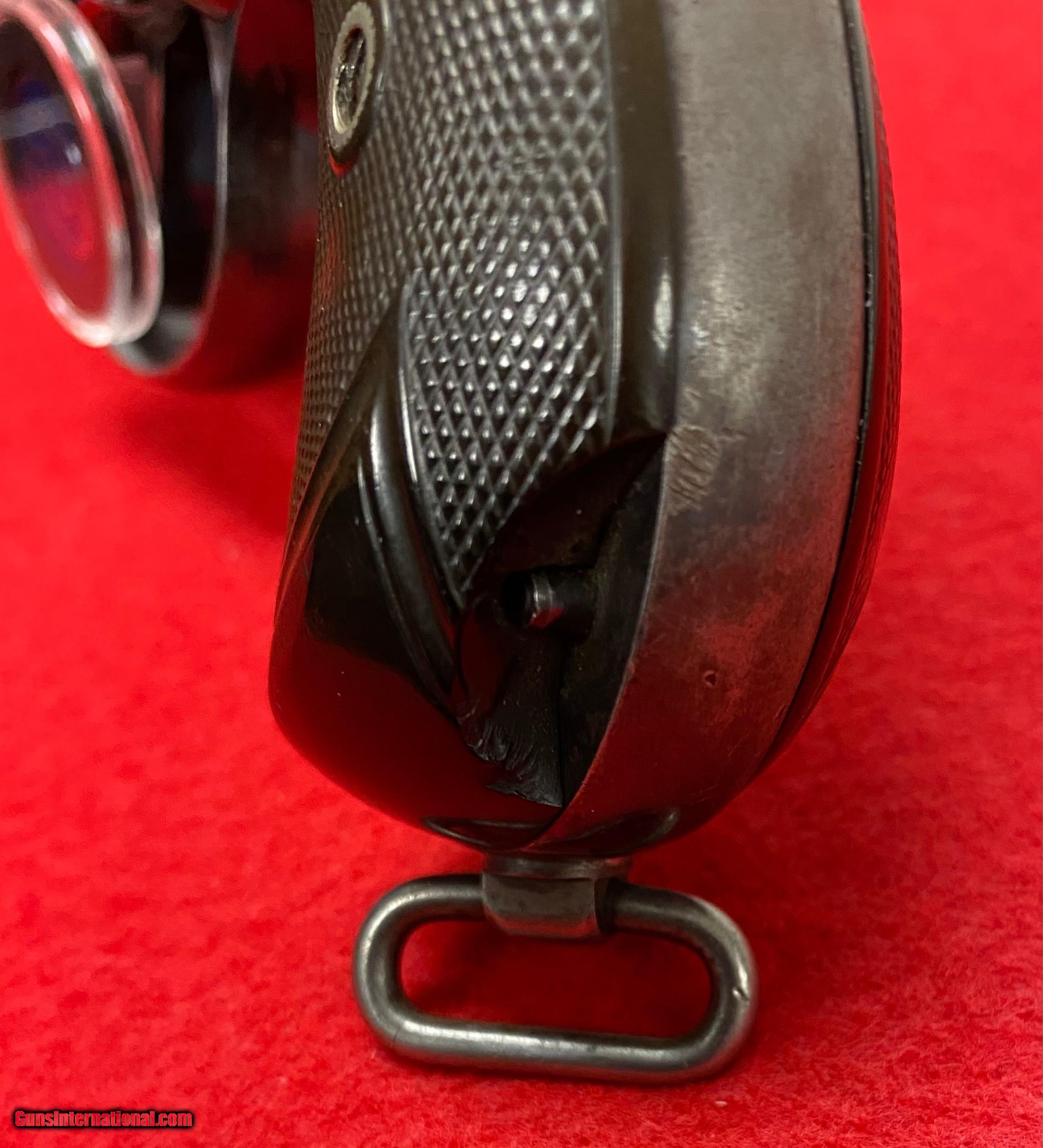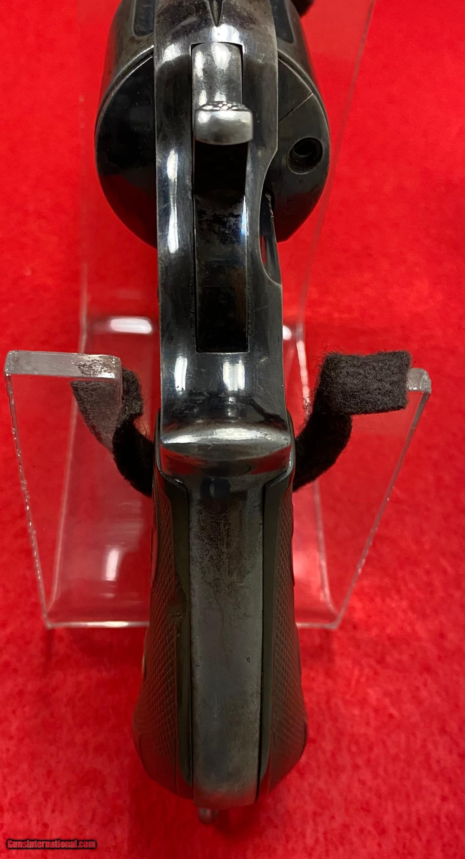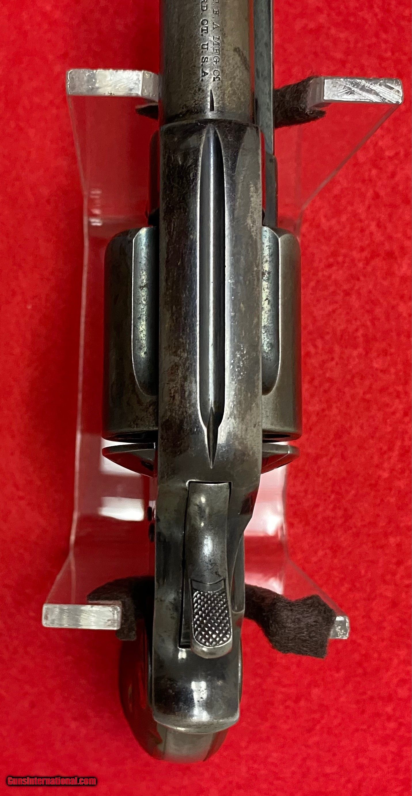 Description: Antique Colt Model 1878 Frontier D.A. Revolver .44-40 WCF with a 4 3/4" barrel. Manufactured in 1891. All matching number gun. Large trigger guard. Action functions fine only in D.A. Single action will function but does not hold the hammer when cocked. Over 50% original blue finish still present. Two line Colt address on top of barrel and COLT FRONTIER SIX SHOOTER stamped on the left side of barrel. Caliber of 44 stamped on trigger guard. Serial number 28622 on butt with 622 stamped on cylinder face. Loading gate latch screw replaced. Front sight slightly filed on the right side. Left grip has a chip missing next to the grip strap. Grips still fit well overall. Overall condition of this gun would be classified as good to very good. Nice old Colt survivor. $35.00 insured shipping. SOLD Antique: Yes Handgun Caliber: .44-40 Winchester (.44 WCF) Manufacturer: Colt Model: 1878 Serial Number: 28622 Barrel Length: 4 3/4” Chambers: Six Condition: Very good Metal Condition: Very good Bore Condition: Very good Action: D.A. Finish: Blue Sights: Fixed Manufacture Date: 1891 Item Location: WV |