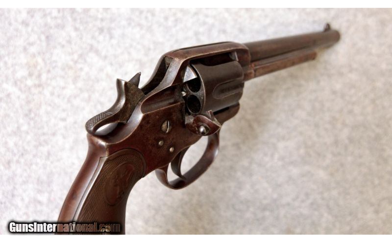 Description: SOLD Curio/Relic: Yes Manufacturer: 1902 Caliber Info: .44-40 Winchester Metal Condition: Good, Bluing wear and scratches throughout Bore Condition: Fair, signs of pitting but rifling intact Barrels: 7.5 in. Triggers: DA/SA Weight: 2 lbs 8 oz Item Location: Fort Mill, SC |