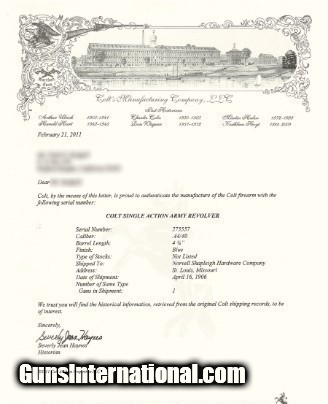 Description: Colt .44-40 Frontier Six 4.75" Pre WWI Letter - Used SOLD Curio/Relic: Yes |