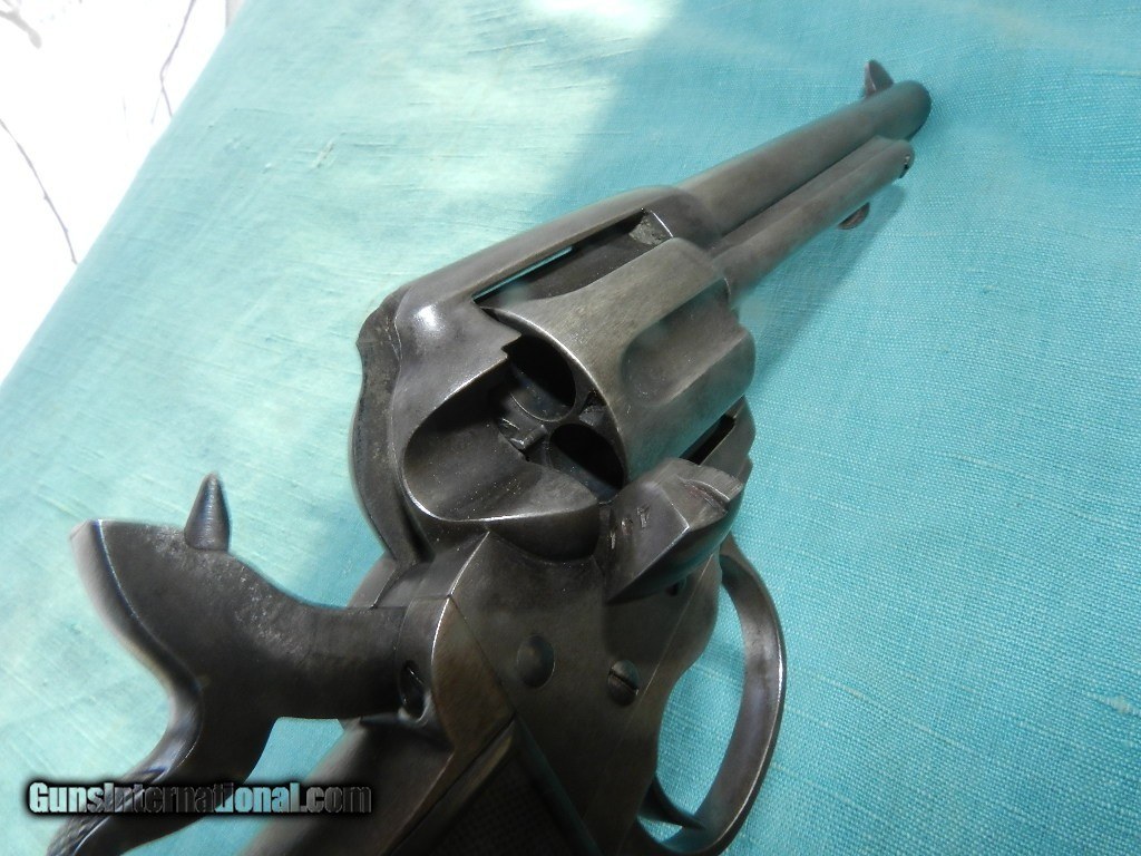 Description: A true Western Cowboy gun used by Billie the Kid and other outlaws for their fast shooting ability, with a serial #136737, 41 Colt, 6” barrel with a fair-good bore showing scattered light oxidation and pitting with some bright areas and strong rifling throughout.Will spina soft node lead bullet good! The metal surfaces of this cowboy revolver have mostly toned to a mix of dark gray and gunmetal patina showing scattered old light very fine pitting throughout the cylinder, but not deep or agressive, and some remnants of minor oxidation staining. All markings remain intact and quite strong and the black checkered hard rubber grips appear to be pencil-numbered to the gun and remain in very good condition showing some smoothing and handling marks. The other numbered parts are matching and the action seems to function well mechanically in single and double action with solid timing and lock-up.Scarceto find a gun in this condtion, and workingso well.!When buying a gun always have it examined by a competent gunsmith before shooting. To buy a gun from me you must get a direct email for me, with details, and shipping cost. We don’t have a web site .I prefer money orders or a check. Item ships when funds come in. I try to keep guns affordable, which means I make less money than most dealers. You won’t get altitude sickness, or nose bleed, with my prices! I consistently have the best selection of older guns If you attempt to buy, you must still contact us for details . Best to email to buy. Sometimes a local person can stop buy and purchase before the gun is removed. Sometimes not home to get calls. Some guns are required shipment to a gun dealer near you for a transfer to you when it arrives. Otherwise many older or black powder guns ship to your door. With the widest selection of older guns at great prices, We don’t have a store, and sell on the internet only. I’m easy to get along with. Thank You SOLD Curio/Relic: Yes |