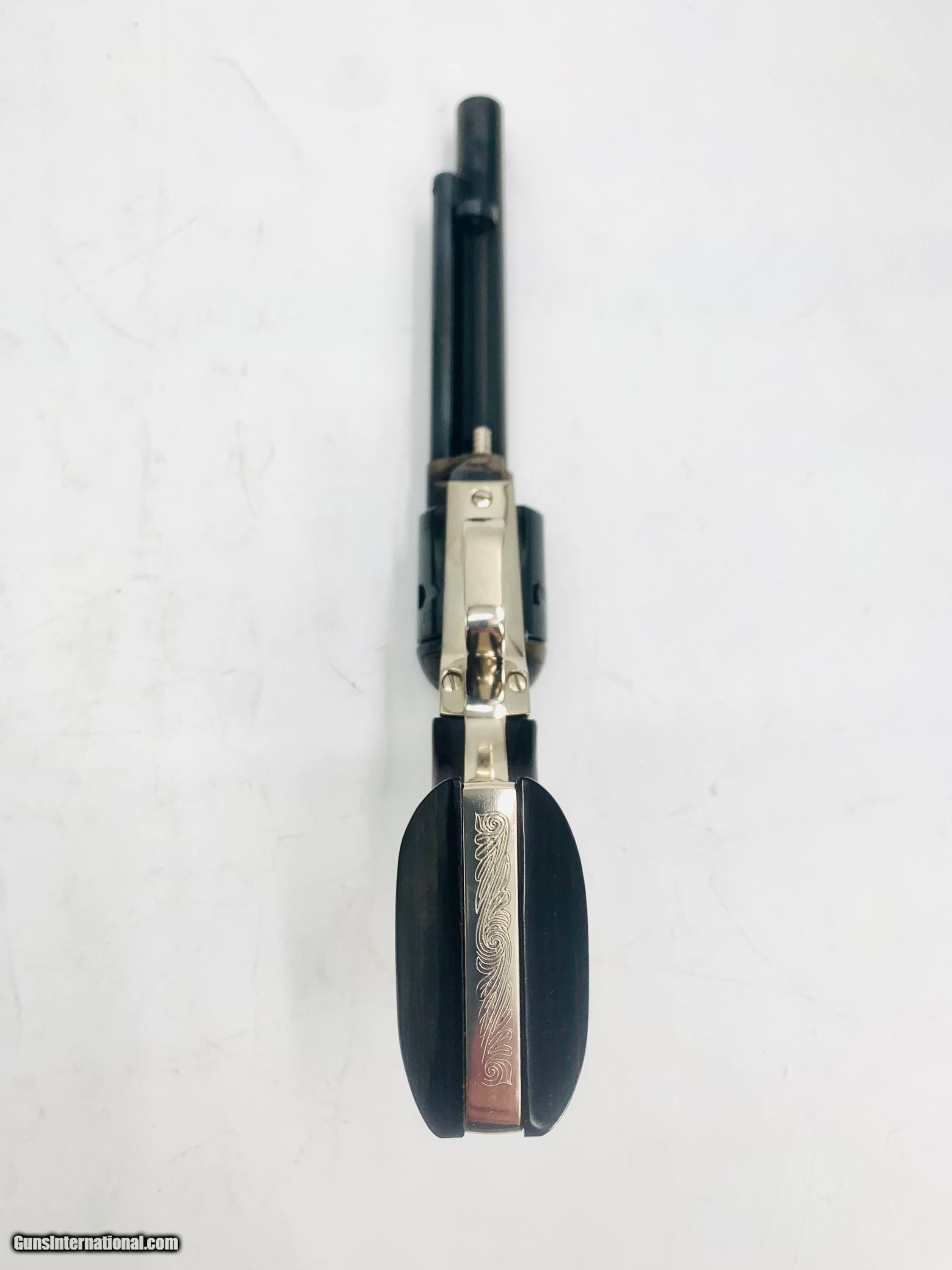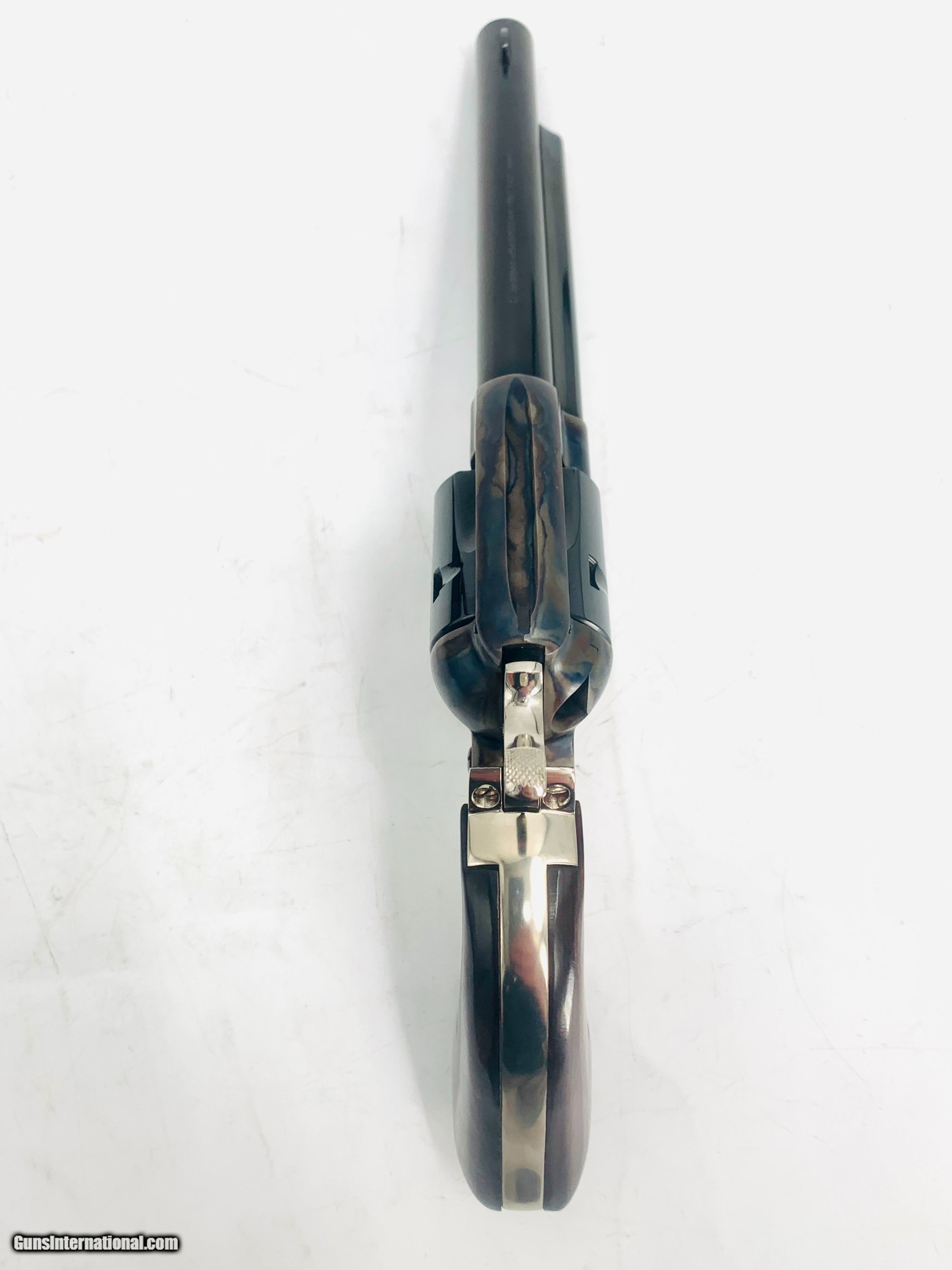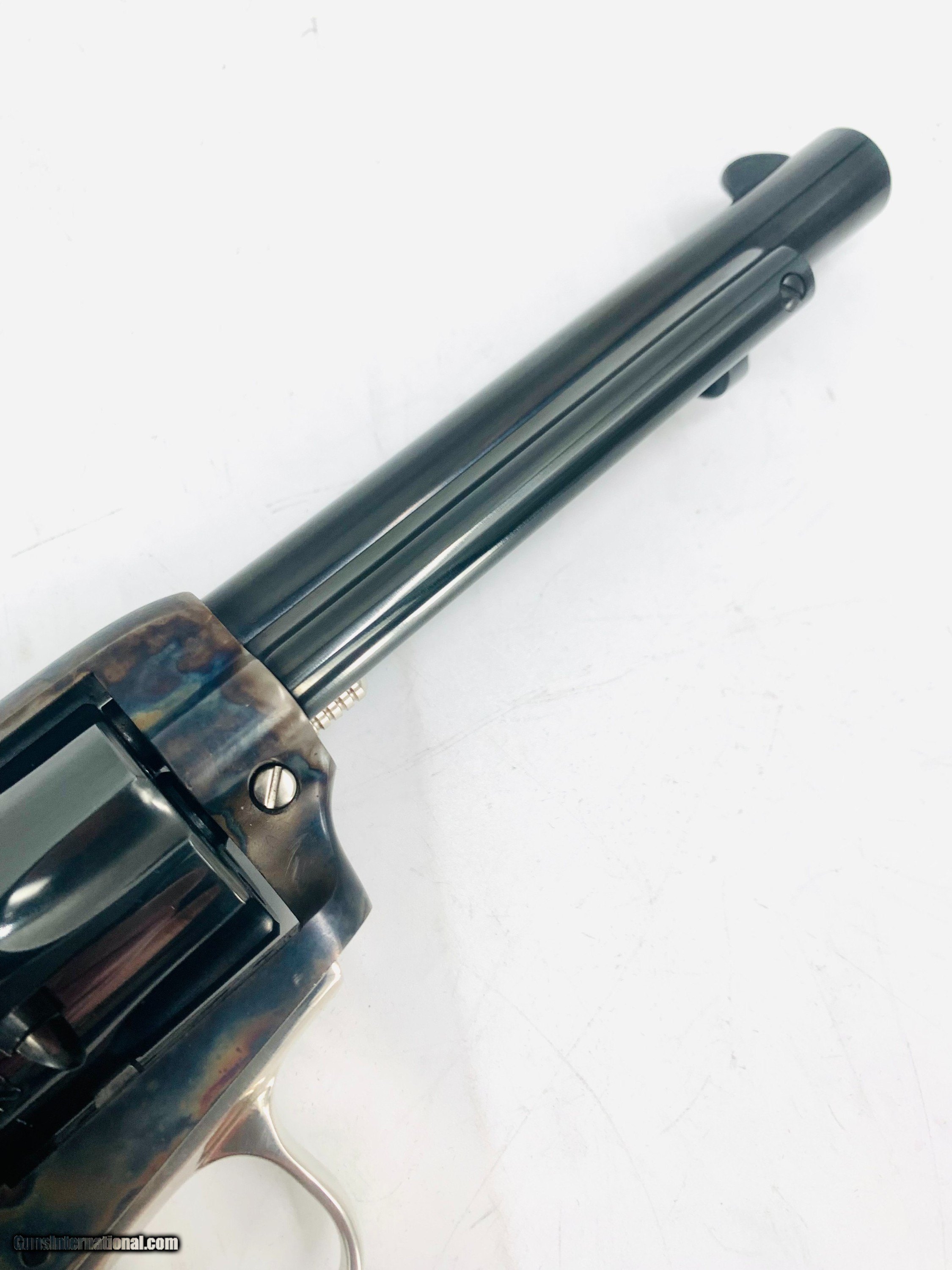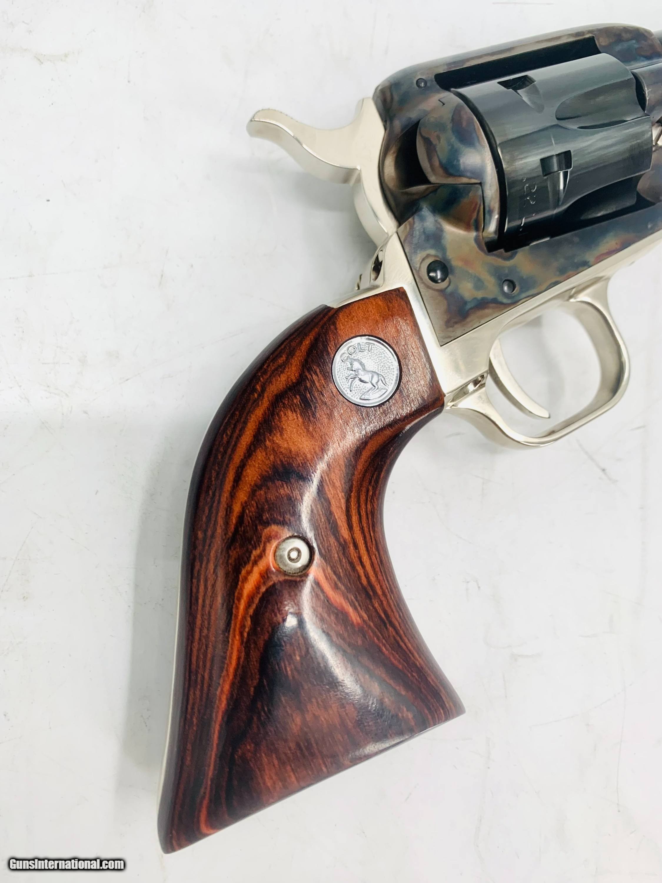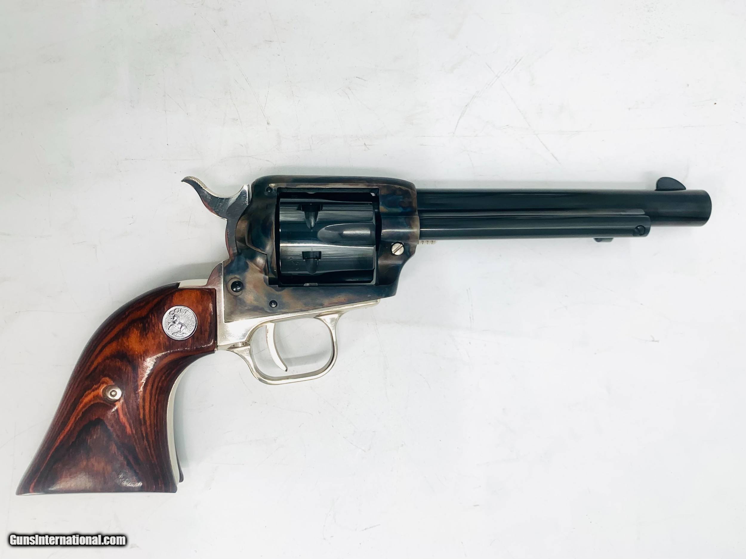 Description: This is a Colt Arizona Ranger commemorative single action army revolver in mint, original condition. It is chambered for .22LR and comes in the original display case with key and ranger badge. There were only 3,000 of these produced to honor the Arizona Rangers law enforcement agency, and they feature a 5.5 inch barrel with case hardened frame. Two piece silver Colt medallion wood grips and nickel plated frame. SOLD Handgun Caliber: .22 Long Rifle Manufacturer: COLT Model: FRONTIER Condition: EXCELLENT |