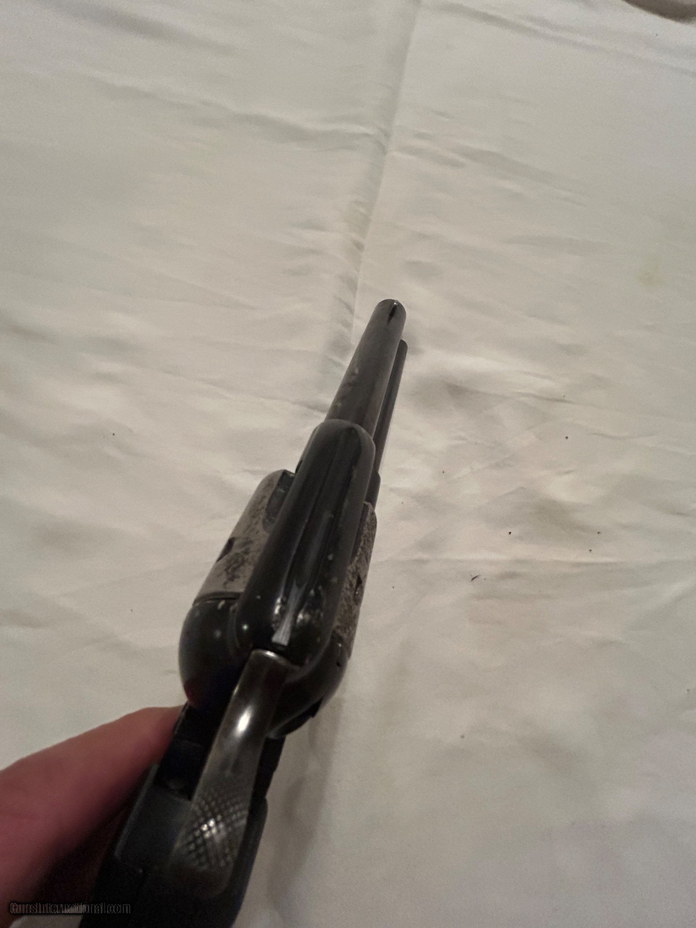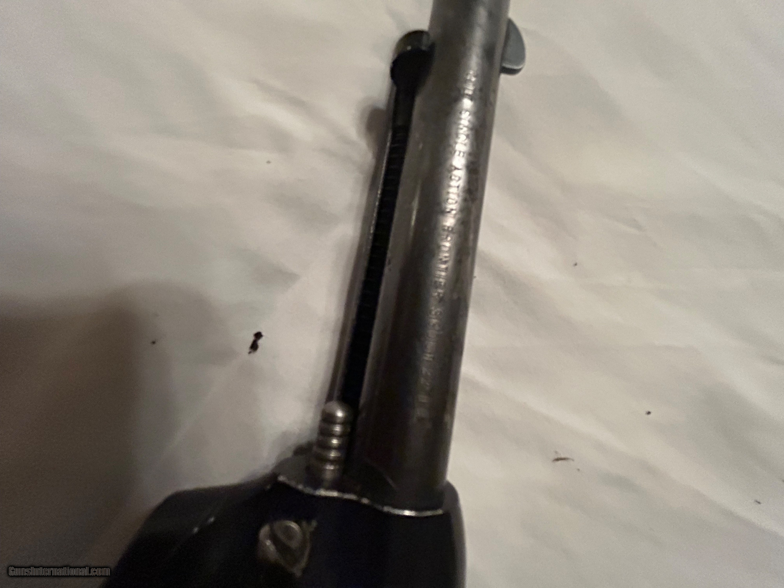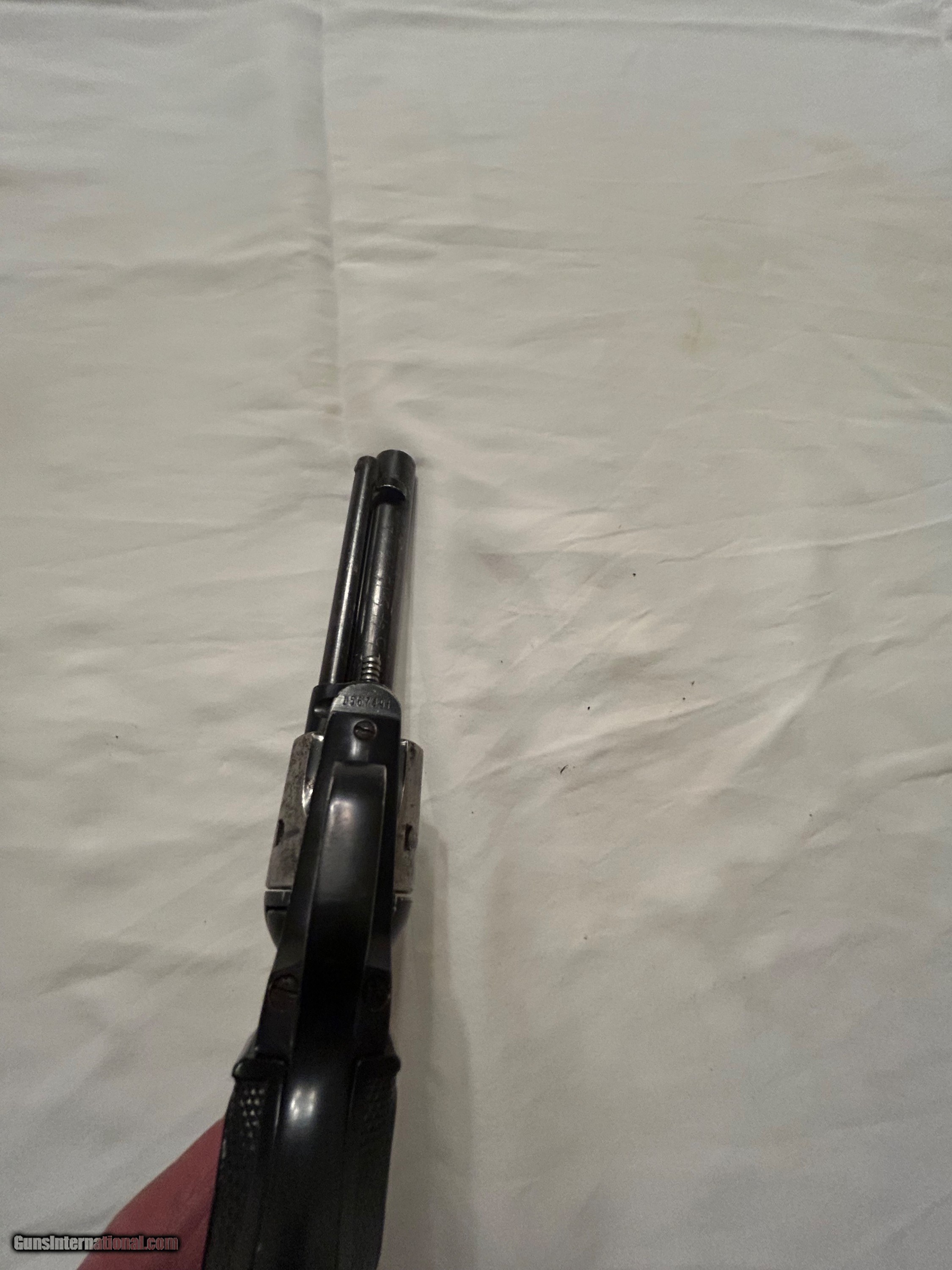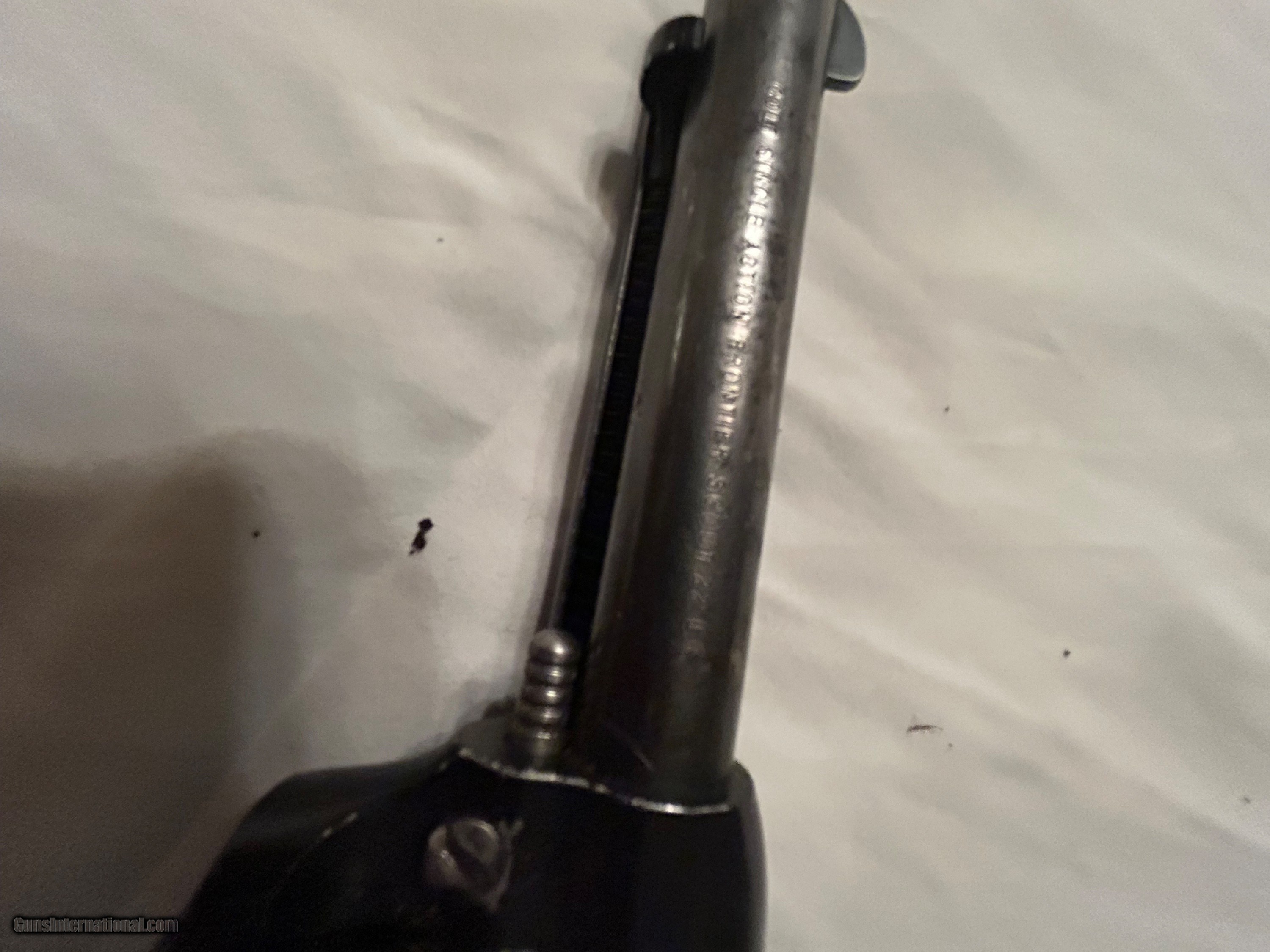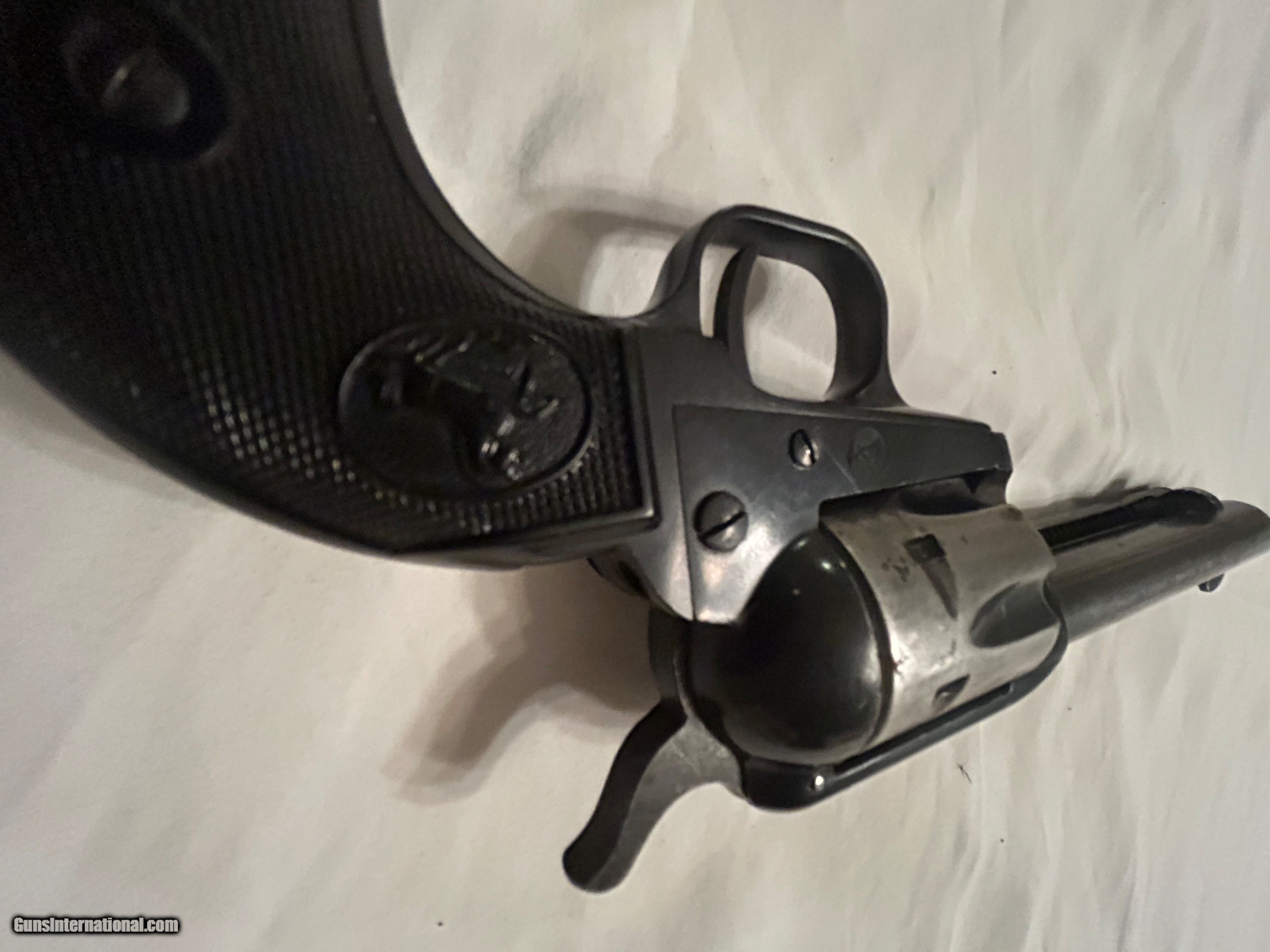 Description: Here is a Colt Frontier Scout .22LR with a 4 5/8" bbl. The barrel has wear on the left side, the frame is good but the cylinder has mostly worn to grey grips are nice with no cracks or chips. This Colt locks up tight and will be a good shooter. Very crisp 4 click action. Mfg in 1962. Carried a lot but not shot a lot. See pics, no refunds or returns. Asking $425 and $35 to ship. Thanks for looking! Manufacturer: Colt Model: Frontier Scout Barrel Length: 4 5/8 Condition: Fair/good Price: $425.00 Shipping: $35.00 Contact Seller |