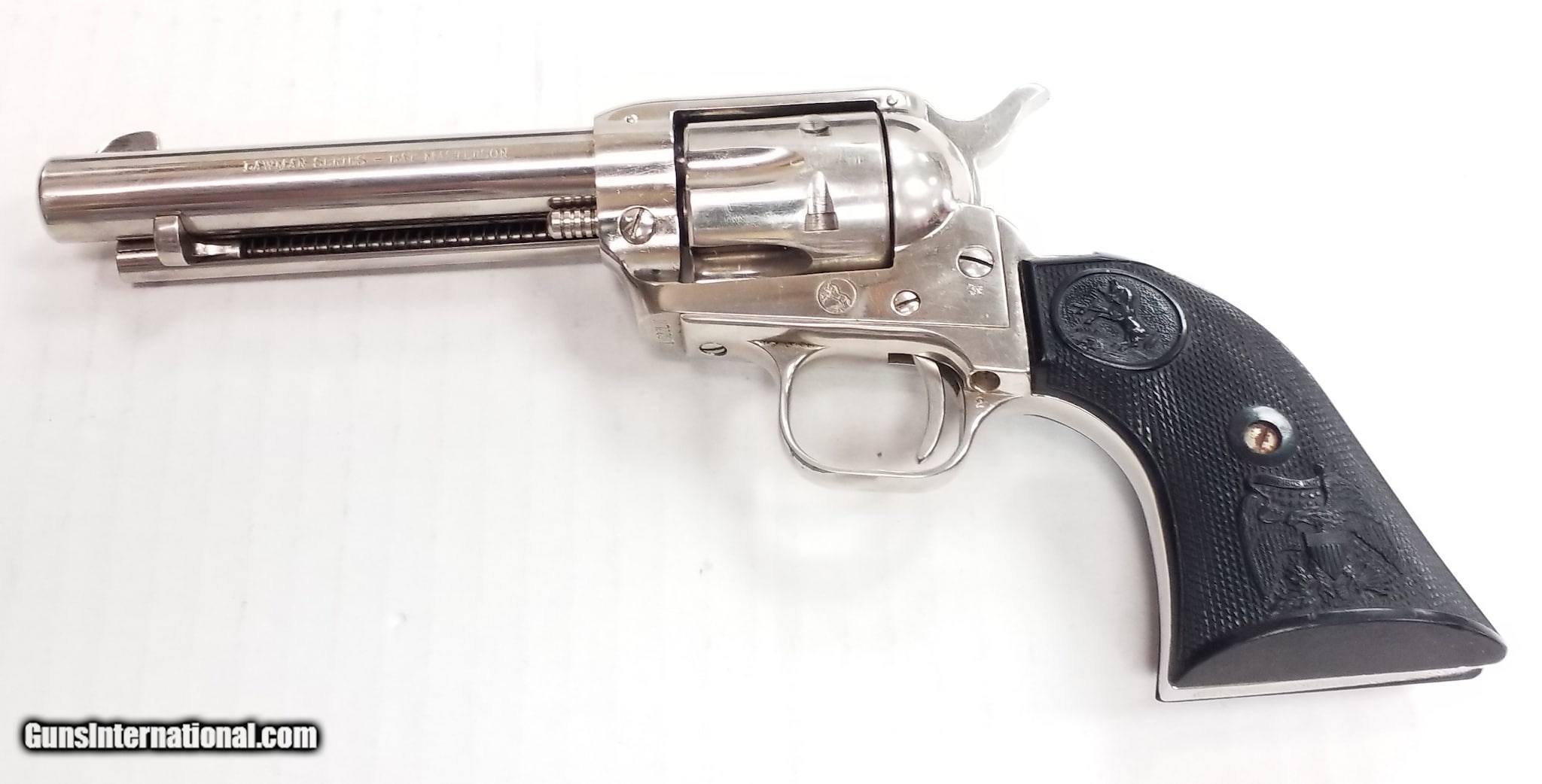 Description: Guns Listing ID: 1073278 SELLING A COLT FRONTIER SCOUT LAWMAN SERIES BAT MASTERSON COMMEMORATIVE - .22 LR - 6 ROUNDS - 4.75 \"BARREL-IN COMMERMORATIVE CASE. H G-1016656-1 SOLD Manufacturer: COLT Model: Frontier Scout Lawman Series Bat Masterson Commemorative Caliber Info: .22 LR Condition: Used - Non-Certified Barrels: 4.75 BARREL Finish: BLACK & SILVER |