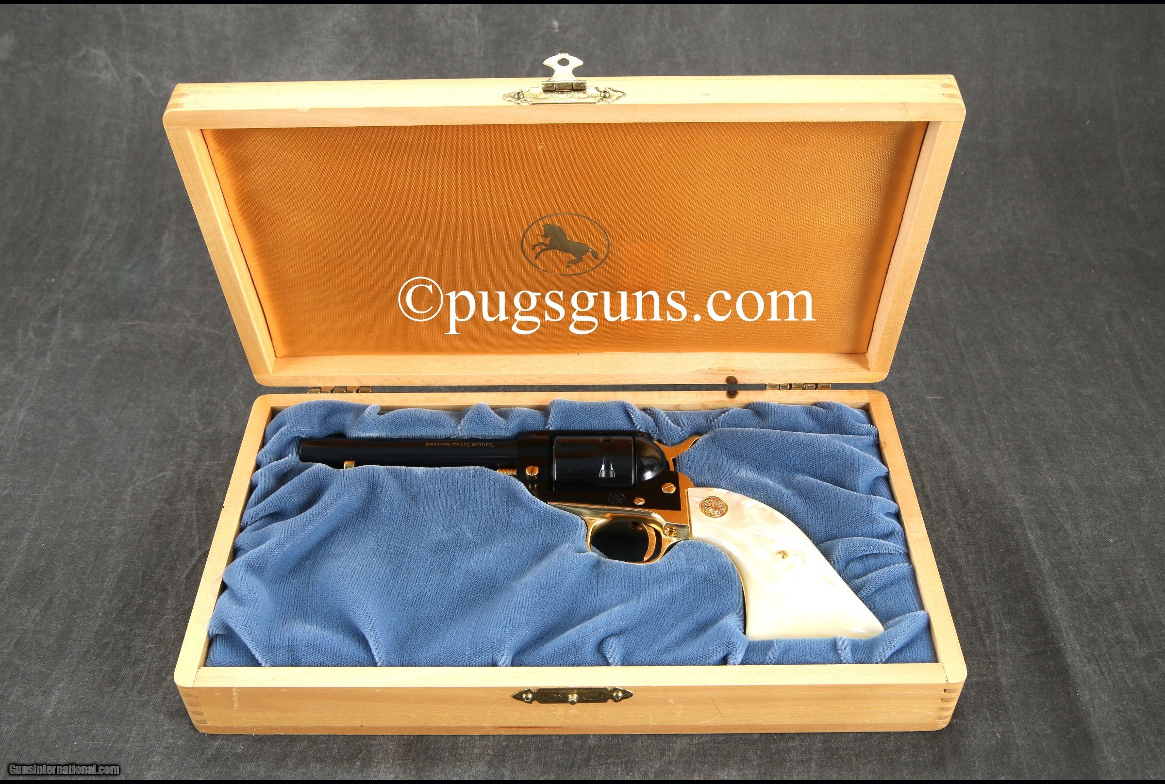 Description: "Factory wood display case SOLD Manufacturer: Colt Model: Frontier Scout Oregon Trail Serial Number: 13070T Caliber Info: 22 LR Barrels: 4 3/4 inches Action: PR |