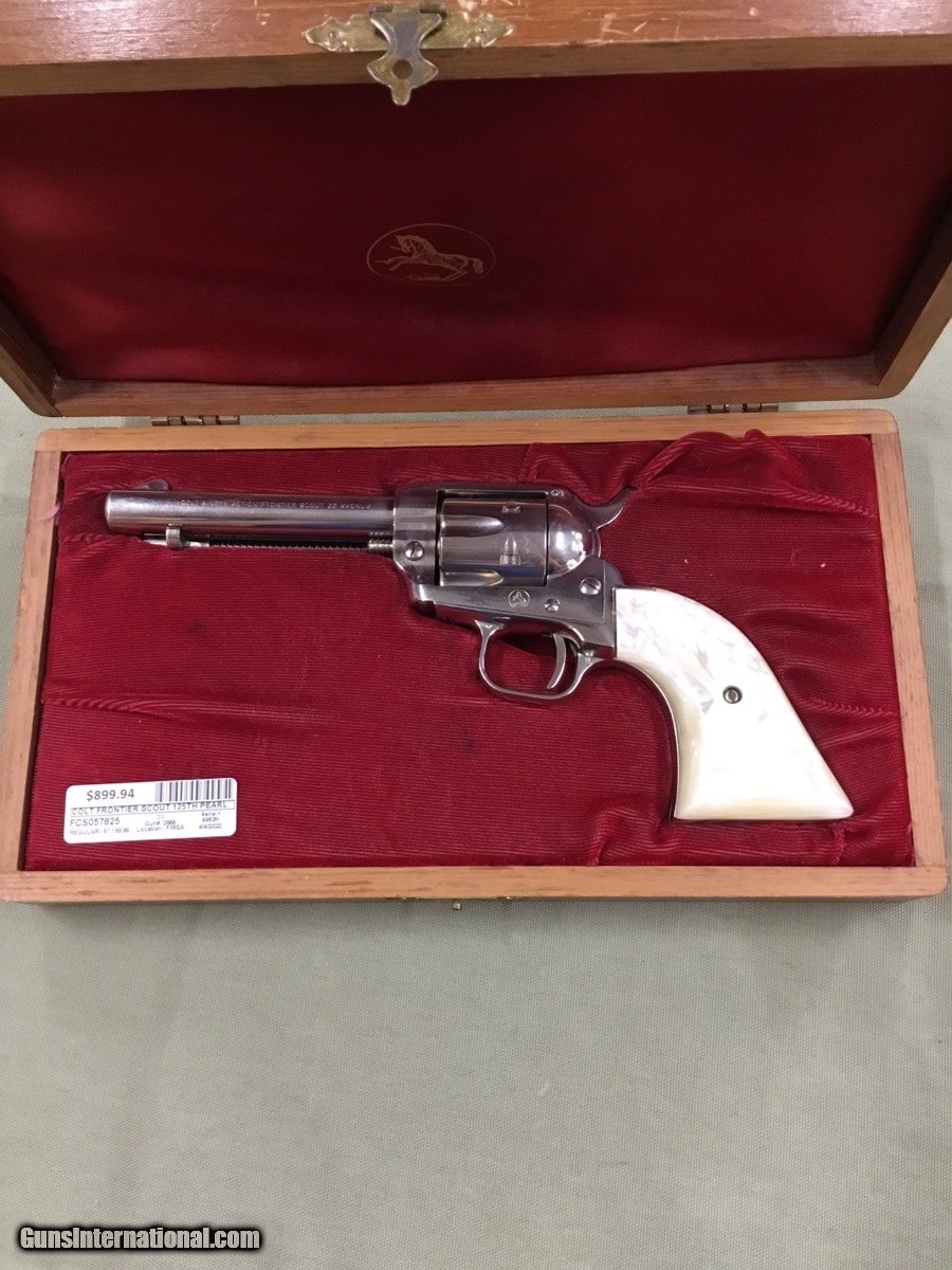 Description: Guns Listing ID: 470696 Inventory Number: FCS057825 Description: REVOLVER: COLT FIREARMS MODEL FRONTIER SCOUT, STAINLESS, YES - INCLUDES ORIGINAL BOX, 4.5, 22 WINCHESTER MAGNUM, SINGLE ACTION, PRICE PER CAMERON Specific Details: NRA Modern Gun Condition Rating Standards: VERY GOOD: In perfect working condition, no appreciable wear on working surfaces, no corrosion or pitting, only minor surface dents or scratches. Finish / Color: Stainless Case & Box: Yes - Includes original box Caliber: 22 Winchester Magnum Type of Action: Single Action Holster: No - Not Included SOLD Manufacturer: COLT Model: FRONTIER SCOUT Caliber Info: 22 WIN MAG Condition: Used - Non-Certified Barrels: 4.5 BARREL Finish: TWO-TONE |