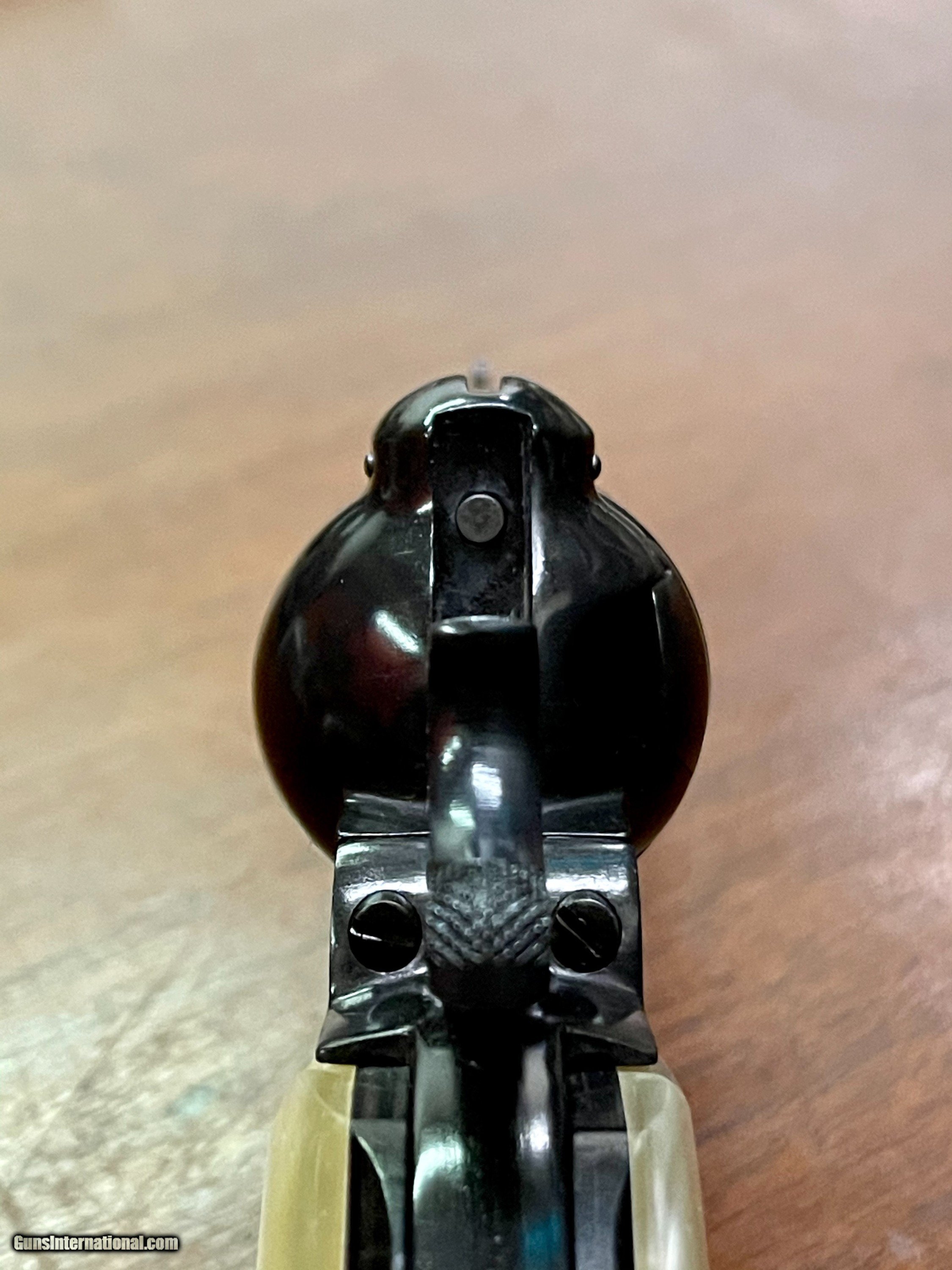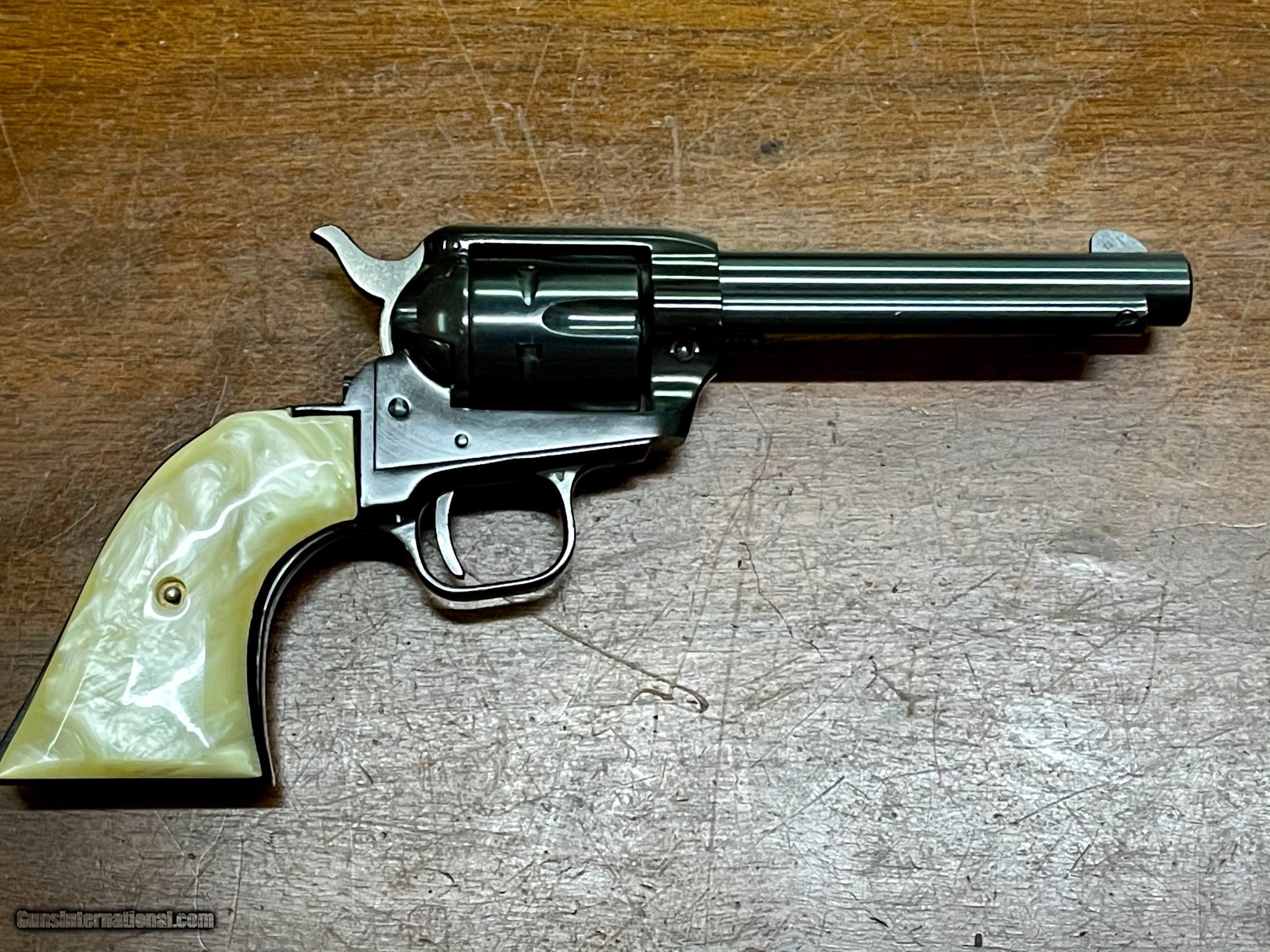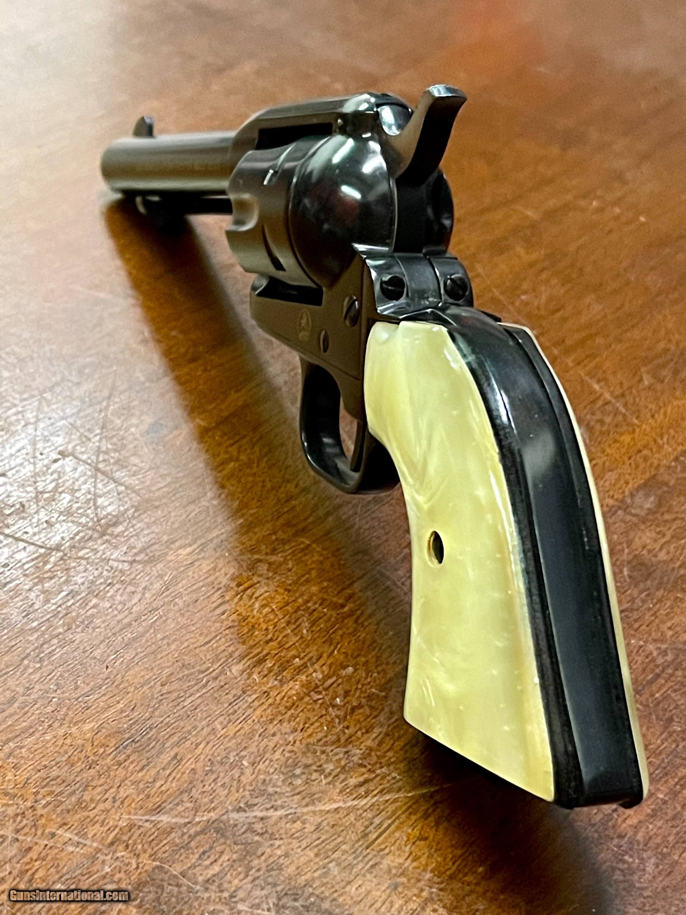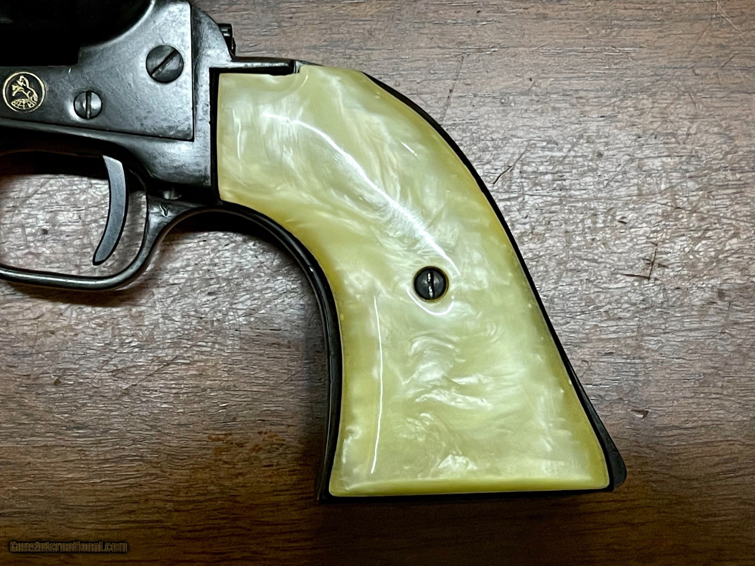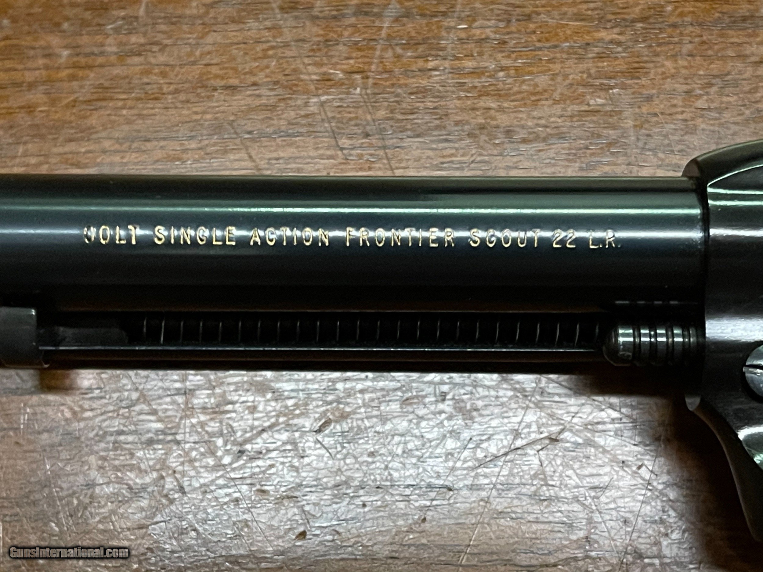 Description: SOLD PENDING PAYMENT...TAKING BACK UP OFFERS 1960 Colt Frontier Scout .22 LR Revolver 4 3/4" Barrel Very Good Condition! Bright bore with strong rifling. Beautiful blued finish with feaux pearl grips in nice shape. The Frontier Scout was Colt’s answer to the Ruger Single Six in the wake of the Western television craze. This is a sleek single action six shooter perfect for Western or quick draw enthusiasts, and anyone who loves plinking with .22 Long rifle. We are always buying guns and militaria. Contact us about your estate or if wanting to buy, sell, or trade. PAYMENT: -Payment must be recieved within 10 days of purchase. 3% additional charge for credit card processing. SHIPPING & HANDLING: -$30 for handguns and $45 for long guns SHIPPING FIREARMS: -Firearms shipped to FFL dealer only -We will ship upon receipt of payment and signed legible copy of dealer's FFL via Fax, Mail or E-mail. SALES TAX: -Florida residents add 7.5% sales tax. PRODUCT: -We operate a gun shop which means that every item is for sale in our store and it may have already been sold when you contact us. NEW GUNS: -On new Firearms we may use file photos instead of the actual gun. CONTACT: -Contact me with any and all questions. We want you to be happy with your purchase. PHONE #: (904) 271-5270 STORE HOURS: Mon-Fri: 11p-6pm Sat: 9a-3p BUYER: -It is Buyer's responsibility to ensure that the weapon is LEGAL to own in your city/state. SOLD Handgun Caliber: .22 Long Rifle Manufacturer: Colt Model: Frontier Scout |