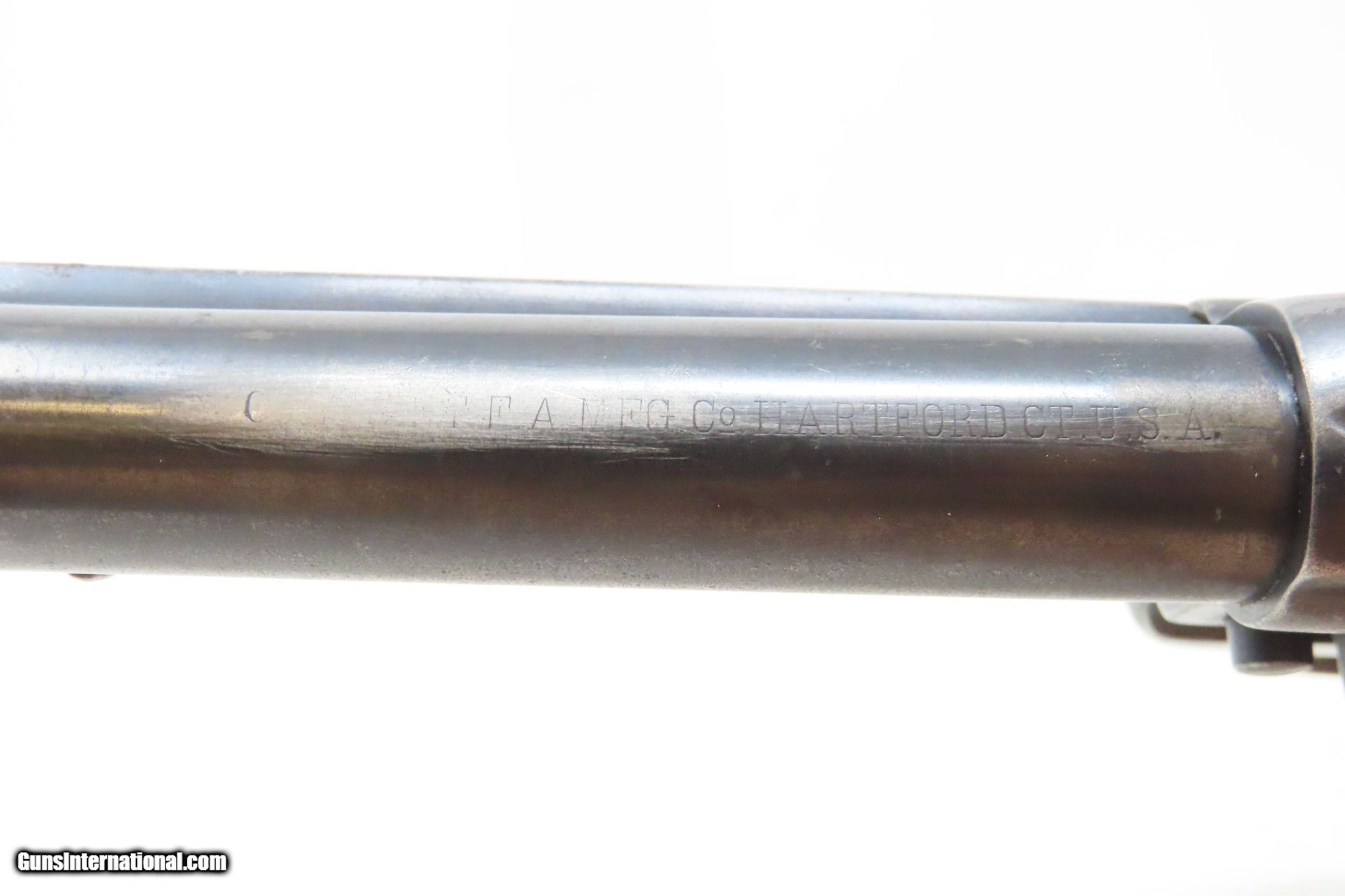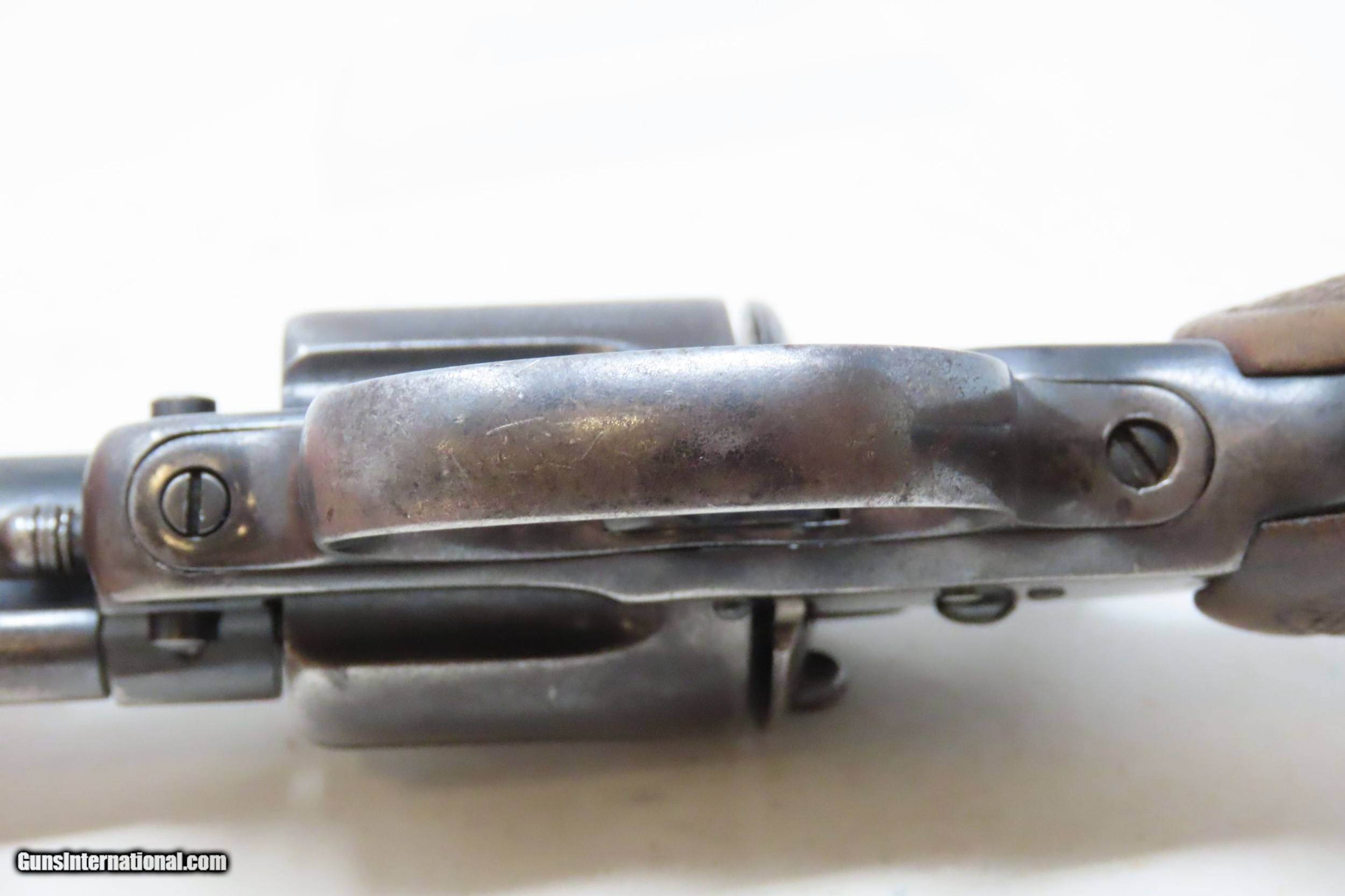 Description: COLT FRONTIER SIX-SHOOTER Model 1878 .44-40 Cal. DOUBLE ACTION Revolver C&R Double Action .44-40 Colt Made Between 1898-1903 Here we present a C&R Colt Model 1878 Double Action Frontier Revolver, made circa the turn of the century in Hartford, Connecticut. This example is serial number 4*917, with the second digit obfuscated, making its production somewhere between 1898 and 1903. The M1878 was designed by William Mason, Colt's factory manager and Charles Brinckerhoff Richards, Superintendent of Engineering. The 1878 Frontier was a much larger and more reliable version of the Model 1877 Lightning and Thunderer, Colt’s first double action revolver. The 1878 Frontier also offered a much more comprehensive array of calibers, compared to the 1877’s three offerings. Despite all of this, the Model 1877 was clearly the popular favorite as over 166,000 were produced versus 51,210 of the Model 1878 made between 1878 through 1907. The top of the barrel is marked “COLT’S PT. F. A. MFG. CO./HARTFORD, CT. U.S.A.”. The overall condition is good. Refinished some time ago. The action is strong. The bore is in good condition, clean with strong rifling. The grips are replacements that are in nice shape. This firearm is classified as a Curio & Relic. Barrel is 5-1/2 inches. Caliber: .44-40 WCF Overall condition as seen in photos. Very Fast. Very Safe. FREE SHIPPING. Will need to be sent to your local FFL or C&R licensee. This firearm is classified as a Curio & Relic. Guaranteed AUTHENTIC & Includes CERTIFICATE OF AUTHENTICITY. ancestryguns $2045 #226996 SOLD Curio/Relic: Yes |