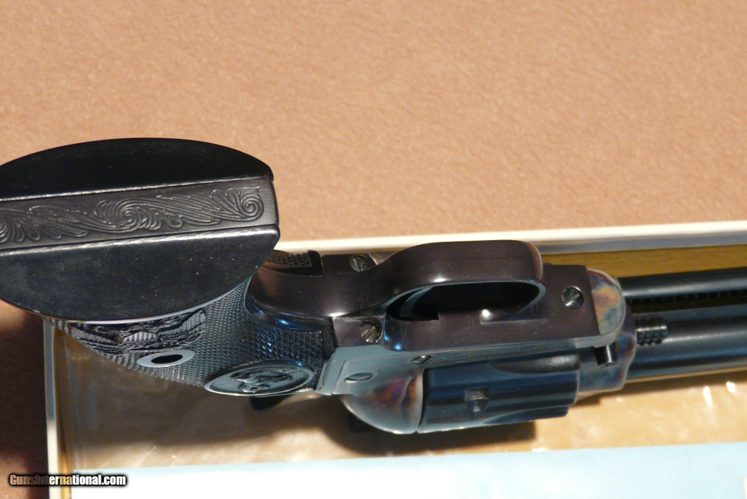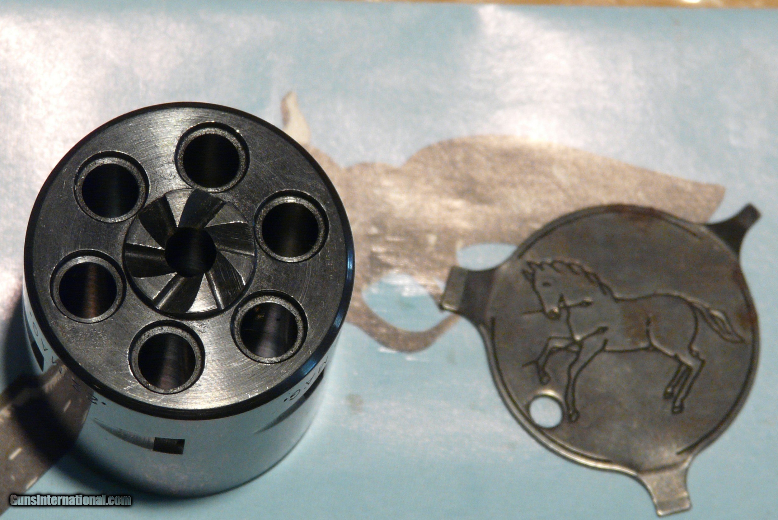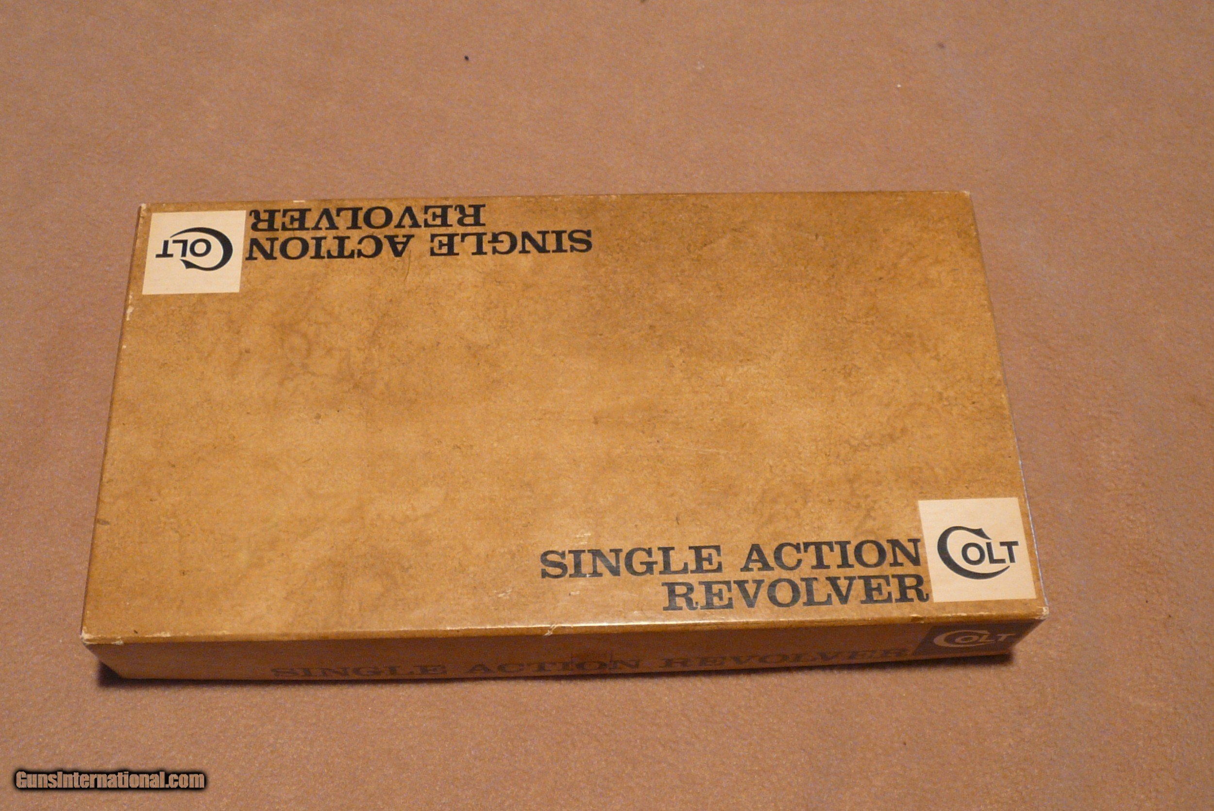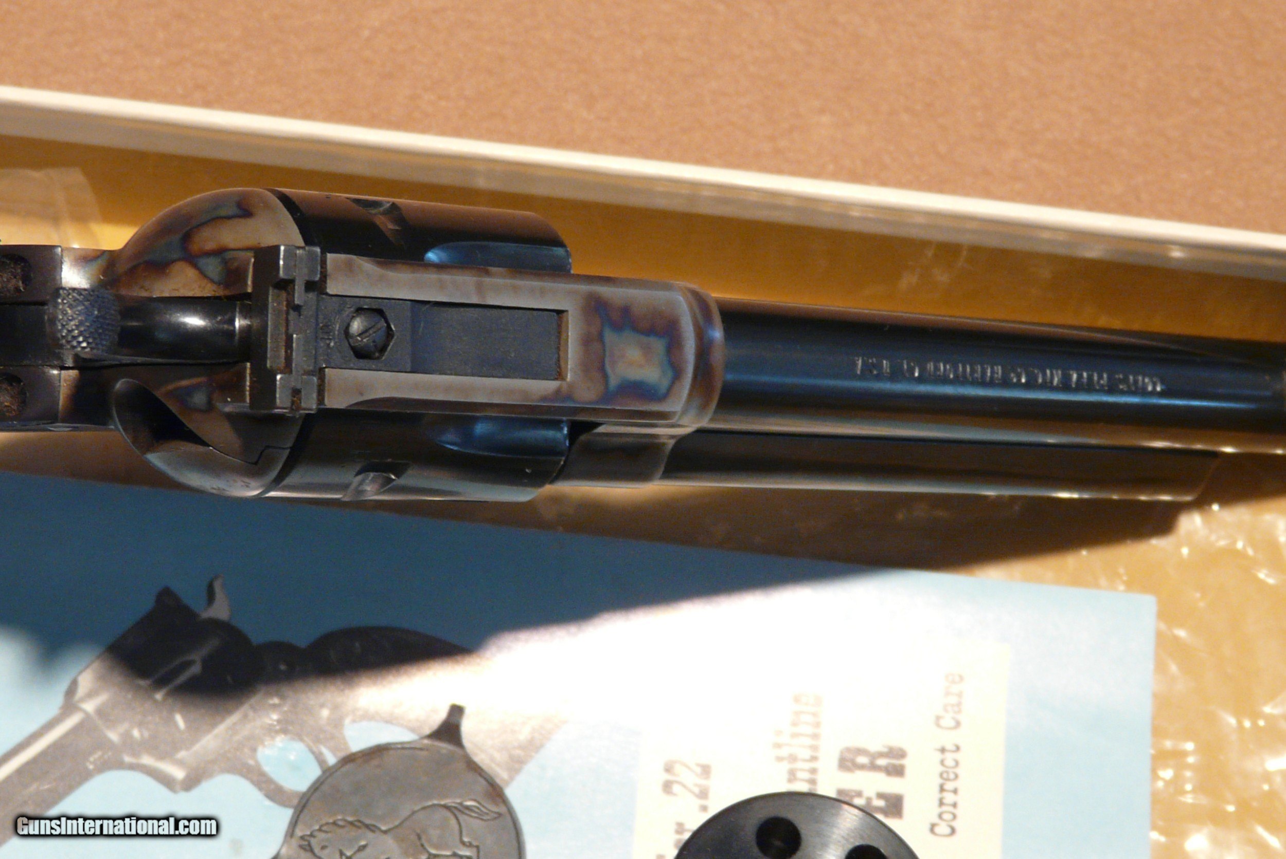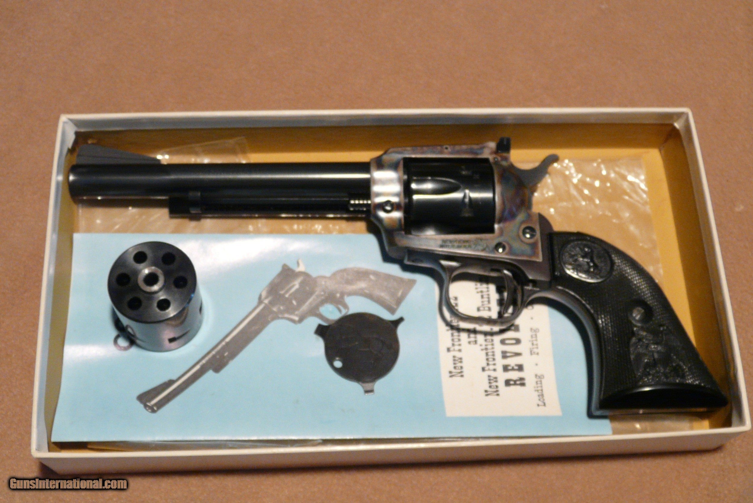 Description: This is a mint condition new Frontier that has fired 6 shots from each cylinder? Owner says he had to do it many years ago, 1972 ?? As you can see in pics, it is in new condition and mint case color and blue, not a mark on the gun , black factory grips, the box is near mint also, and comes with pamphlet and round colt screwdriver. SOLD |