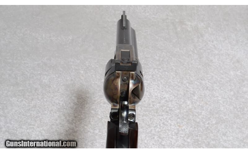 Description: The Colt New Frontier .22LR is a scaled-down version of the original Single Action Army revolver, chambered for .22LR ammunition, with features like an adjustable rear sight, color case hardened finish. .22 Long Rifle SOLD Metal Condition: Excellent Wood Condition: Excellent Bore Condition: Excellent Barrels: 4 3/8 Triggers: Factory Trigger Weight: 2 lbs. Item Location: Tulalip, WA |