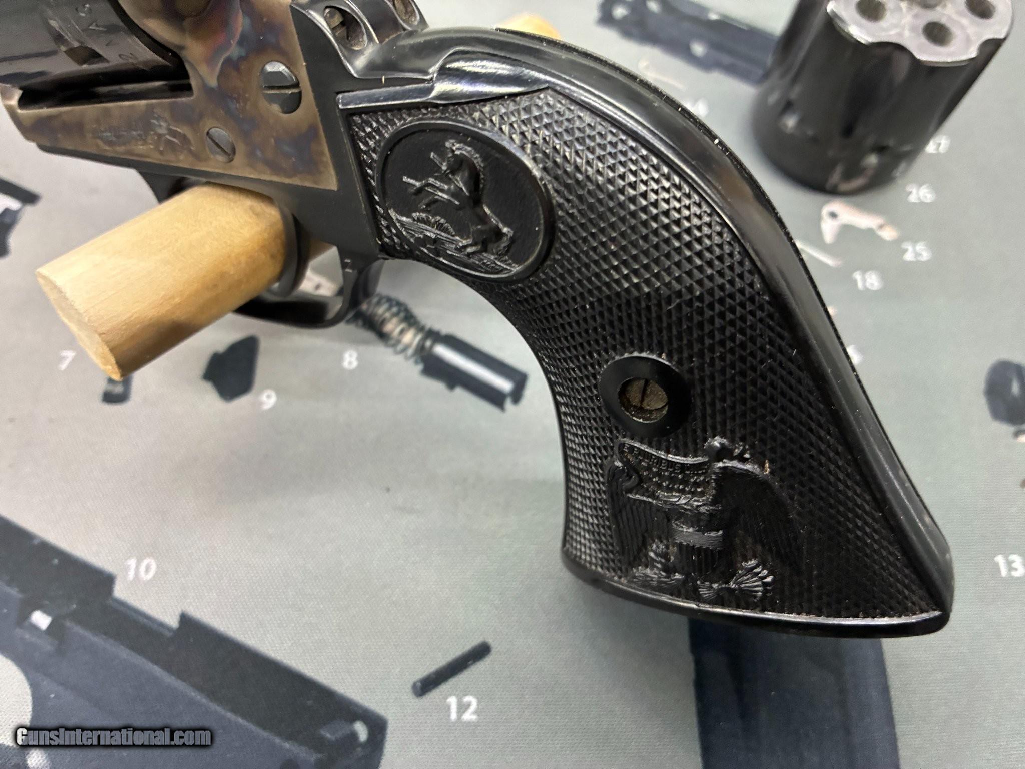 Description: Guns Listing ID: 588711 This used Colt New Frontier revolver is in very good condition. Includes the original factory 22 mag cylinder and the original box. Cosmetic wear is VERY light and consistent with careful use, and the action is crisp with reliable function. Manufacturer: COLT Model: NEW FRONTIER Caliber Info: .22 LR Condition: Used - Non-Certified Barrels: 4" BARREL Action: REVOLVER Finish: black Price: $599.99 Contact Seller |