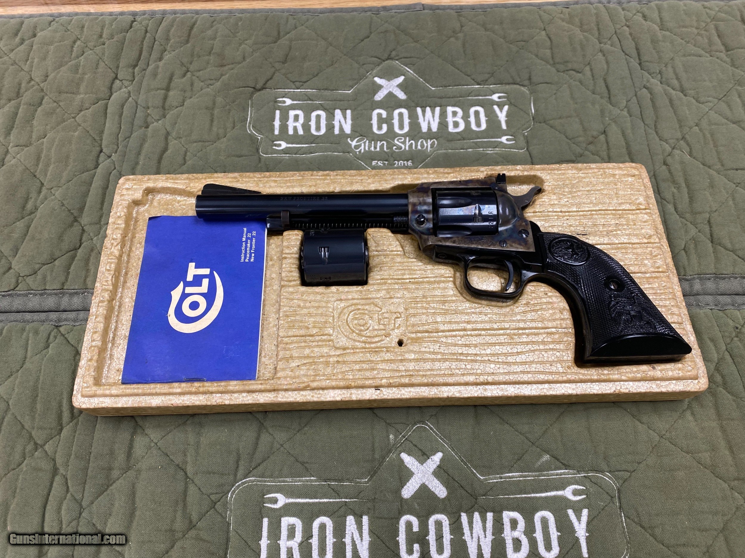 Description: Up for sale is a beautiful Colt New Frontier this Colt is chambered in 22 Lr w/ 22 Mag cylinder. The barrel is 6-inches long with a pristine bore. This has been shot and remain in near mint condition. I believe the 22 Mag cylinder was never used, no turn ring. The box and end label are in very good condition except for a tear as seen in the pictures. Colts like this are getting harder to find. Who ever said money can’t buy happiness clearly doesn’t know where to shop. We stock a vast array of Caesar Guerini, Fabarm, Syren, Blaser, Merkel, Nighthawk Custom, Cabot Gun, and many more vintage guns too. It is impossible for me to list everything I will special order you anything your heart desires. Thanks for looking. WHY IRON COWBOY? Buying a fine gun is not shopping cart transaction. Buying from Iron Cowboy means buying a gun from me. It means buying from someone as passionate as you about fine guns. I want you to get the right gun both for you and your application, and my advice reflects what I feel is in your best interests. No clerks, no ‘other’ salesman – just me. Odds are we will have a discussion on my shooting experience with the gun you are after, and every transaction gets my personal best. Thank you, as always, for looking. GROWTH THROUGH SERVICE Everyone is a customer at some point. I’ve taken the good from my experiences and apply it to my transactions. I’ve taken the bad and sworn to never pass that same experience on to my customers. I strive to act the way I would respect someone else for acting. In this way, Iron Cowboy differentiates itself with growth through service and repeat business. It’s my commitment to you, my customer. Iron Cowboy Gun Shop, LLC Edward Kondraski III (570) 733-2042 SOLD Handgun Caliber: .22 Long Rifle |