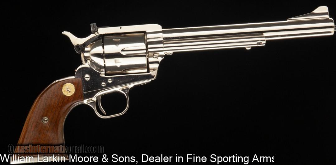 Description: ID # 8701 Make COLT Model NEW FRONTIER Configuration REVOLVER Gauge / Caliber .357 MAG. Price $2,400.00 Serial # 15847NF Country of Origin America Barrel Length (in Inches) 8" Choke R/U Choke L/O Trigger Stock Configuration Forearm Type Rib Type Receiver Finish Nickel Engraving Type Other Options WALNUT GRIPS, ADJUSTIBLE SIGHTS, WOOD BOX Condition Near PERFECT Condition Weight Dimensions Other Details William Larkin Moore & Sons LLC 16622 N 91st Street Suite 102-103 Scottsdale, AZ 85260 USA Tel or Text: 480-951-8913 Fax: 480-951-3677 SOLD |