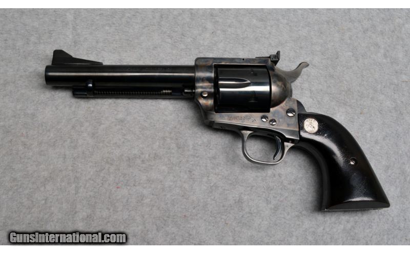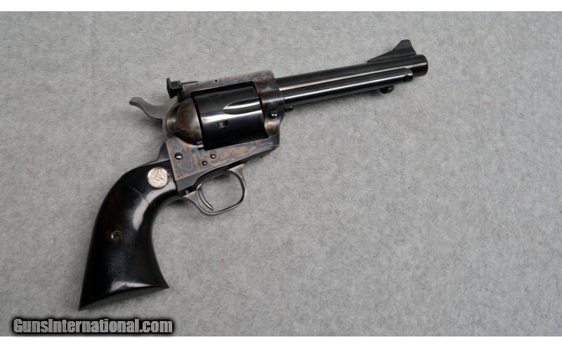 Description: Colt New Frontier Single Action Army chambered in 45 Colt. Good overall showing few slight handling marks, crack in the grip on right side. Mechanically fine with excellent bore. Includes properly numbered box. Also does have a letter. SOLD Caliber Info: .45 Colt Chambers: 6 Shot revolver. Metal Condition: Excellent with very little signs of use. Wood Condition: Very good with few handling marks. Bore Condition: Very good, bright and shiny. Barrels: 7 1/2 inch blued. Triggers: Factory blue steel. Stock: Smooth grip walnut. Cracked grip on right hand side. Weight: 40 ozs. Sights: Front blade sight with rear notch sight adjustable. Item Location: Hazelwood, MO |