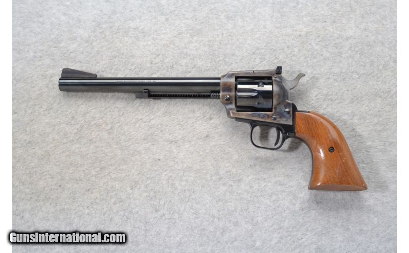 Description: This Colt Model New Frontier Buntline is a 6 shot single action revolver in .22 Long Rifle Cal. It has a 7.5 inch barrel with a front blade sight and an adjustable notch rear sight. The grips are a smooth walnut. It has a csae colored receiver. SOLD Caliber Info: .22 Long Rifle Chambers: 6 shot blued fluted cylinder. Metal Condition: Very Good. Wood Condition: Good with some light handling marks. Bore Condition: Excellent. Barrels: 7.5 inches. Triggers: Single Action. Stock: Smooth walnut grips. Case colored receiver. Weight: 32 oz. Sights: Blade front. Adjustable notch rear. Item Location: Richfield, WI |