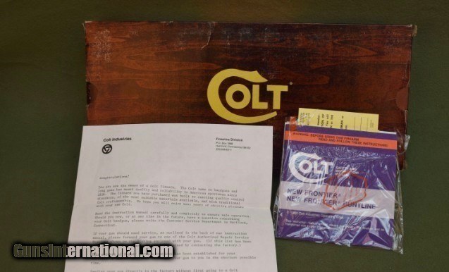 Description: Colt New Frontier Buntline .22LR 7 1/2" barrel as new in box. Manufactured in 1985. All original. Comes with original box numbered to gun and all original paperwork and manual. Box has some tape on it. 45.00 ship ins fee SOLD |