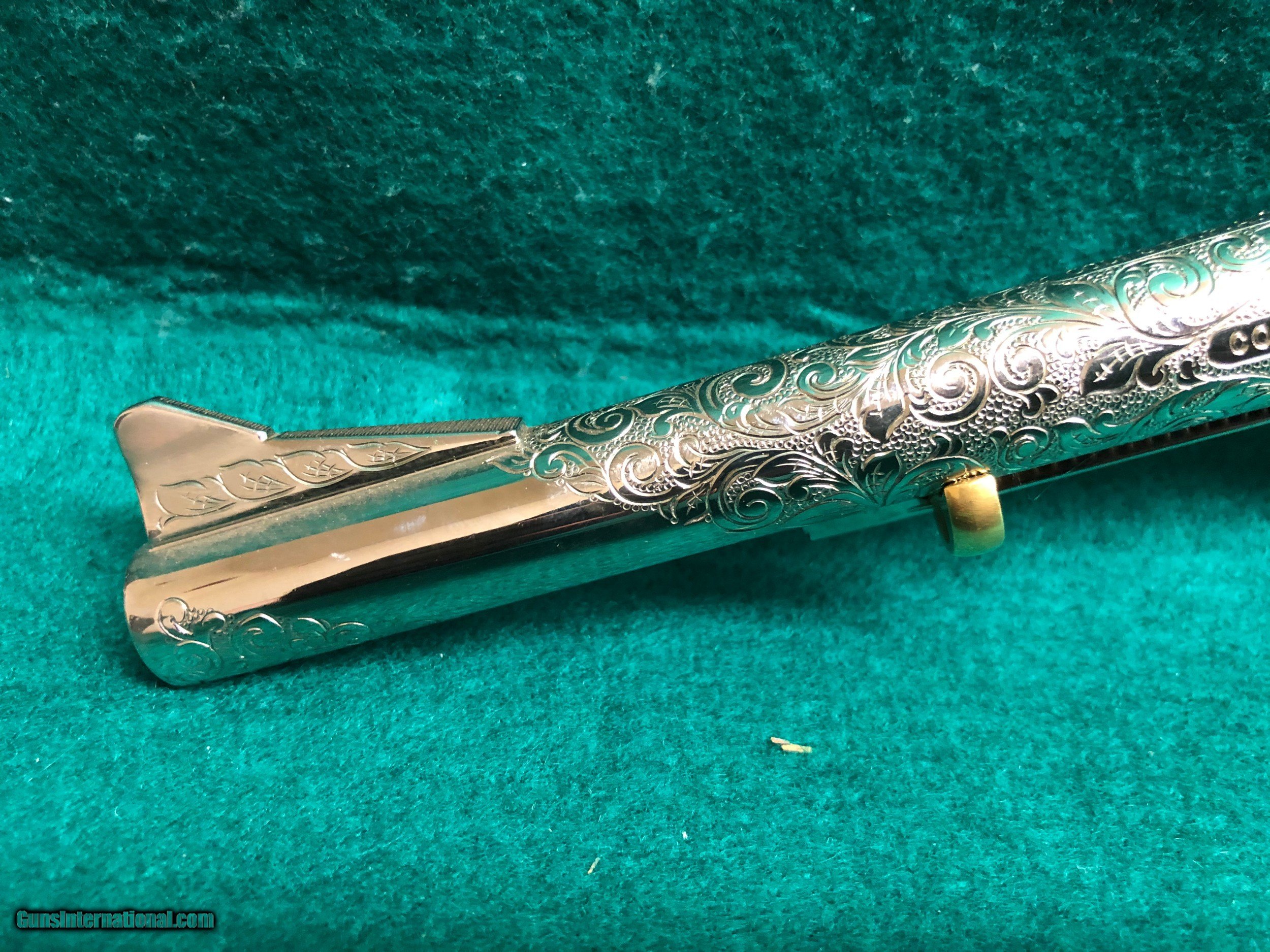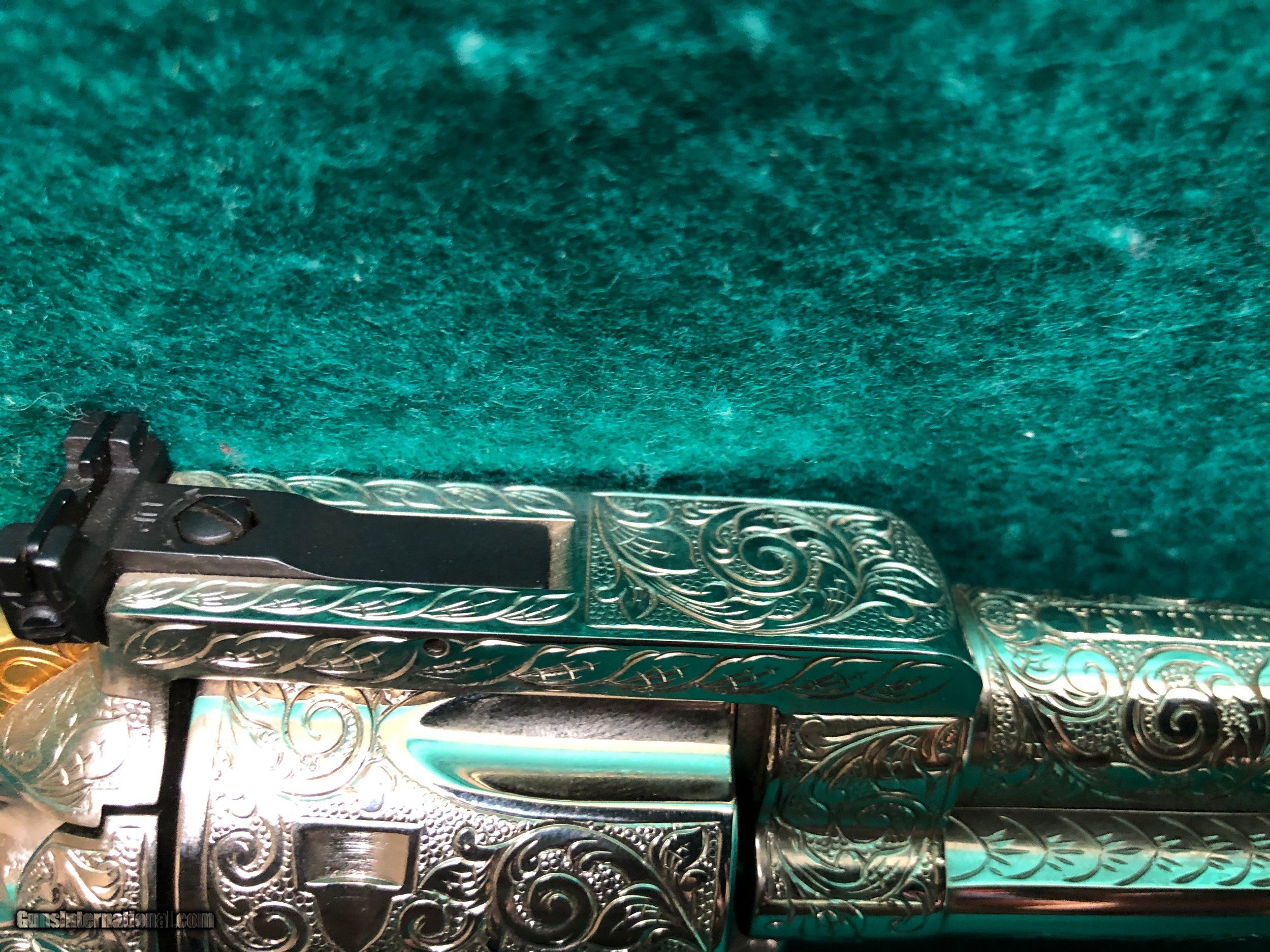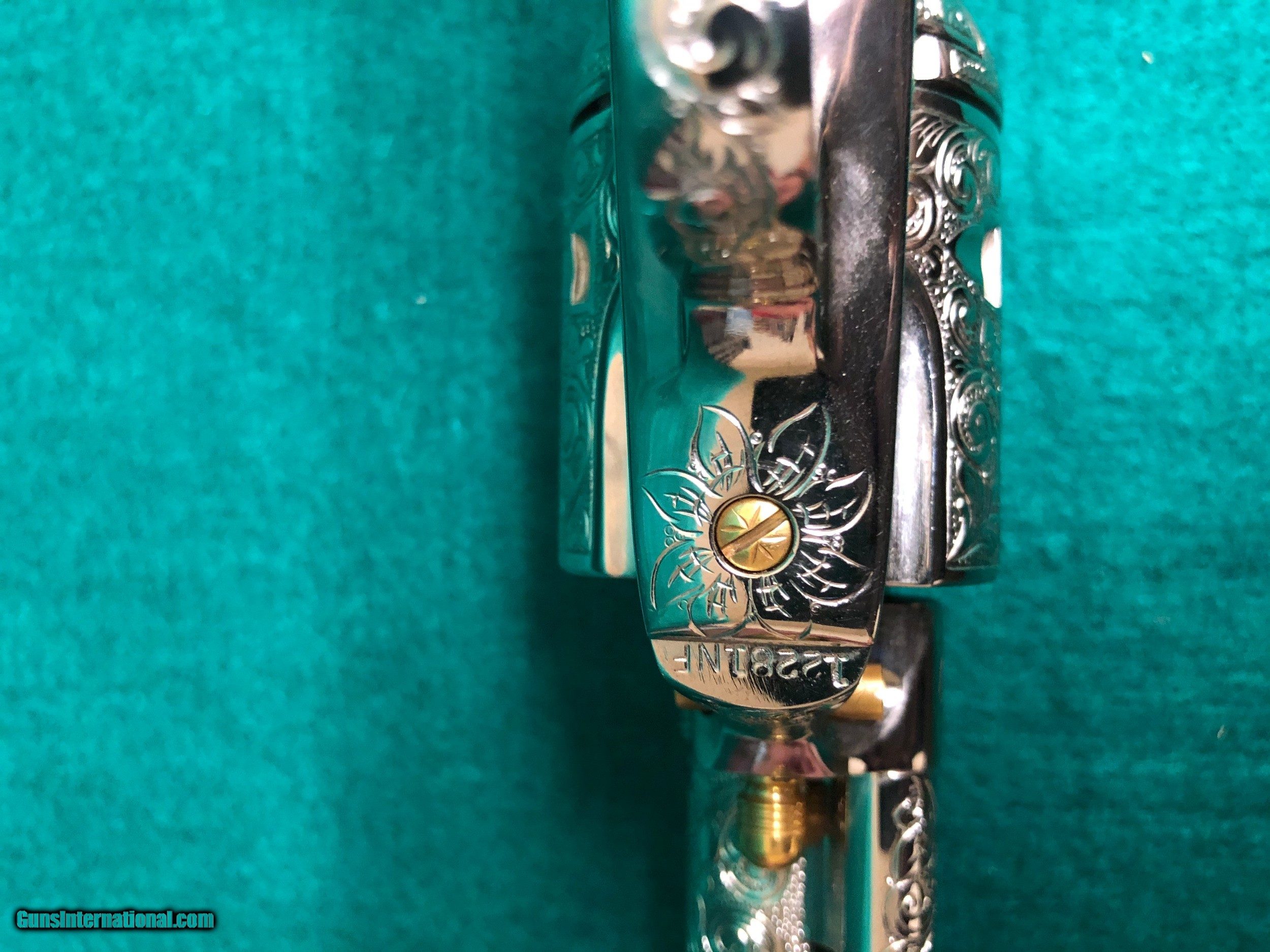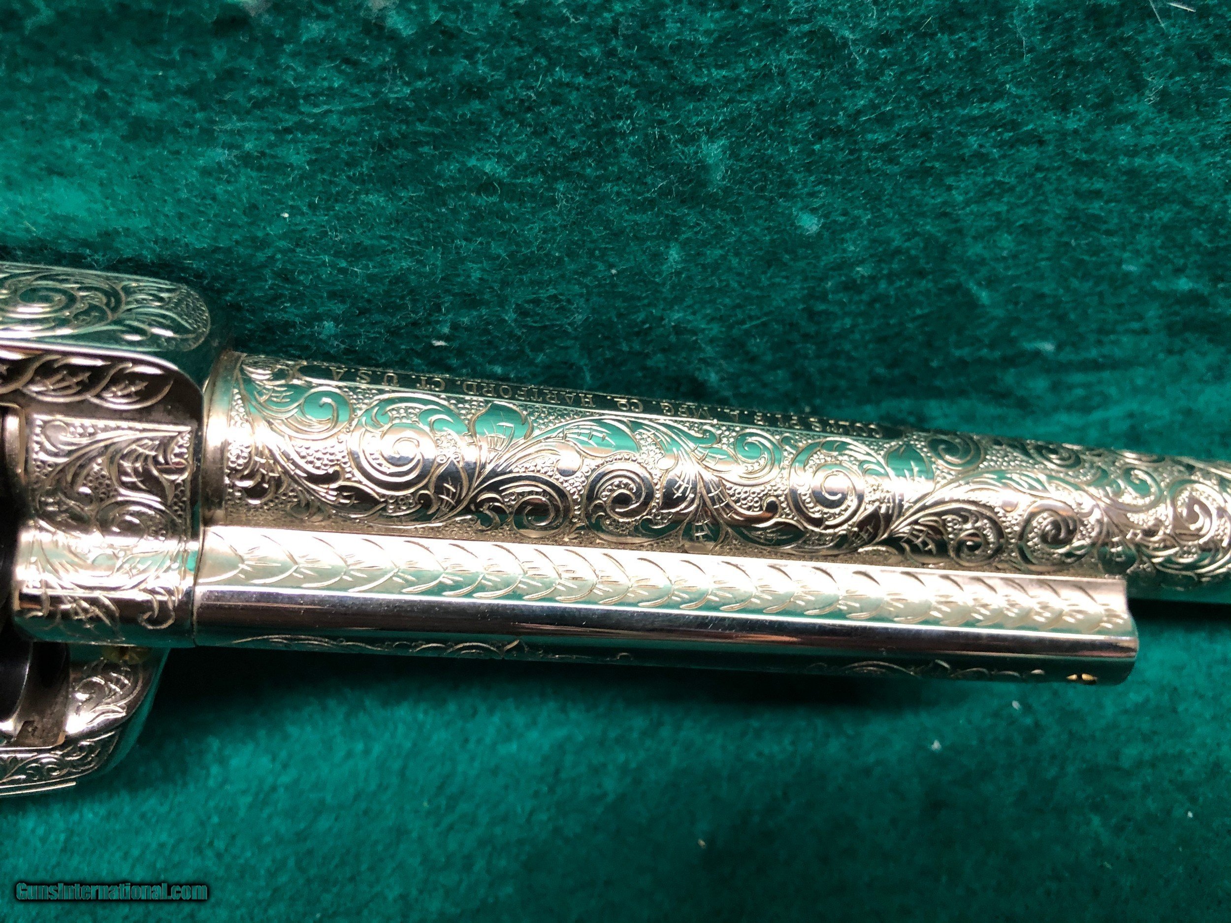 Description: COLT NEW FRONTIER SAA 44-40 CALIBER IN NICKEL FINISH. THIS REVOLVER HAS STYLISH ENGRAVING BY BRIAN MEARS OF NORTHERN CALIFORNIA AND HAS GOLD PLATED HAMMER, TRIGGER AND EJECTOR ROD HANDLE. THE GRIPS ARE MADE OF IVORY AND NICELY FIT TO THE FRAME. SOLD Handgun Caliber: .44-40 Winchester (.44 WCF) Manufacturer: COLT Model: NEW FRONTIER SAA Barrel Length: 7.5 Condition: AMAZING |