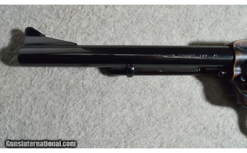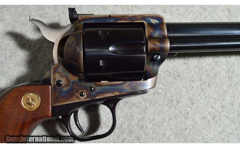 Description: Single action Colt revolver. .45 Colt SOLD Metal Condition: Rear notch/front ramp Wood Condition: Very good with minor wear and handling marks Bore Condition: Bright and clear with good rifling Barrels: 6 inch Threaded Weight: 2 lb 8 oz Sights: Rear notch/front ramp Item Location: Fort Worth, TX |