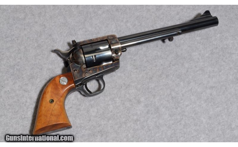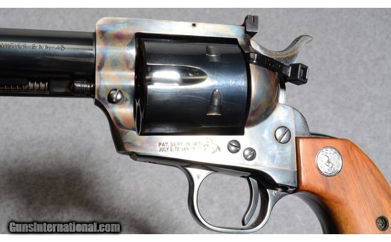 Description: The New Frontier was mechanically and almost physically the same single-action revolver as the Peacemaker, with the exception of a beefier topstrap, finely serrated ramp front sight and an Elliason adjustable rear sight—the same sight Colt had been putting on the Gold Cup National Match since 1957. At the beginning of World War II, Colt ceased production of the Single Action Army revolver to devote more time to filling orders for the war. When the war ended, no plans were made to revive the Single Action Army revolver as the design was seen as obsolete. However, the advent of television and Western-themed movies created customer demand for the revolver, so Colt resumed manufacture in 1956 with the Second-Generation line of Single Action Army revolvers. From 1961 to 1975, Colt offered an adjustable-sight model known as "The New Frontier", capitalizing on President John F. Kennedy's campaign slogan. Colt manufactured 4200 of these revolvers, including 70 built on the Buntline frame. This gun was manufactured in1965 .45 Colt SOLD Chambers: Revolver Metal Condition: Excellent Case Hardening Wood Condition: Excellent Factory Grips Bore Condition: Un- Fired Barrels: 7 1/2 Triggers: Factory Single Action Trigger Weight: 2.5 lbs. Sights: Blade Front Sight and Adjustable Rear Sight Item Location: Tulalip, WA |