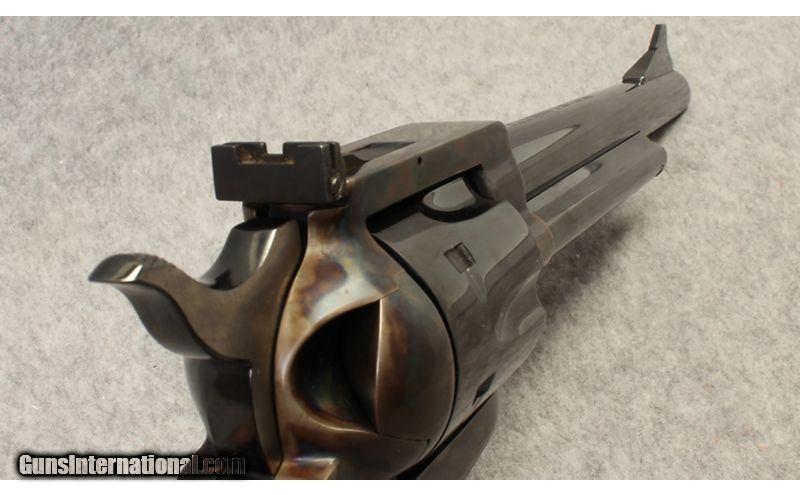 Description: .45 Colt SOLD Metal Condition: Blued action and barrel are in excellent condition. Wood Condition: Wooden revolver scales are in excellent condition. Bore Condition: Bore is in excellent condition. Barrels: 7.5" Barrel. Stock Dimensions: 13" Overall length. Weight: 2 lbs 7 oz Sights: Open sights. Item Location: Tualatin, OR |