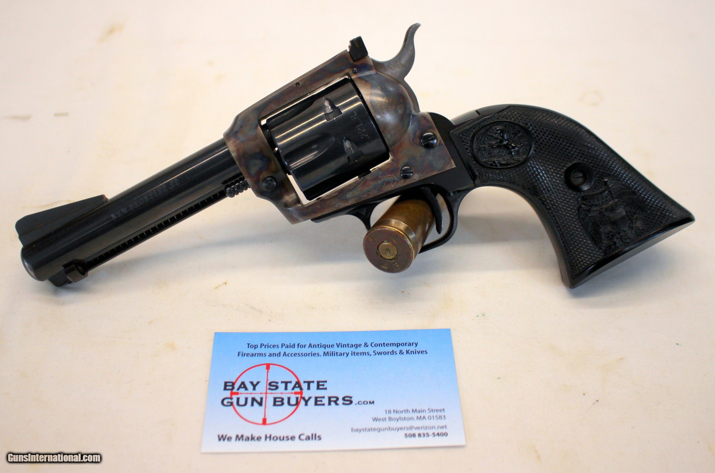 Description: We are offering for sale a Colt NEW FRONTIER single action revolver chambered in .22LR caliber. This revolve was manufactured in 1972 and it remains in VERY GOOD or better condition. SUPER CLEAN EXAMPLE! 4.5" barrel is very good with some very slight muzzle wear, blue loss on muzzle. The bore is clean with crisp rifling. The frame is very good with bright case colors. Cylinder is very good with light line. Gun functions flawlessly. Grip frame is very good with light handling wear. Grip panels are very good with light wear to butt end. VERY CLEAN AND COLLECTIBLE EXAMPLE! SEE PHOTOGRAPHS FOR DETAILS Shipping is $24.95 via USPS Ground PLEASE NOTE: WE DO NOT TAKE PAYMENT INFORMATION THROUGH THIS . WE TAKE ALL INFORMATION DIRECTLY OVER THE PHONE. PLEASE BE PREPARED TO CALL US WITH PAYMENT INFORMATION WHEN THE SALE IS COMPLETED ONLINE. (508) 835 5400. WE ONLY ACCEPT MASTERCARD & VISA PAYMENTS. WE CHARGE A NON-NEGOTIABLE 3% CC FEE Please know the legality of any weapon in your state before . If a gun can’t be transferred to you we will charge a 15% re-stocking fee. Also, we are a PART TIME business, Only in office Wednesday through Saturdays 10am-4pm. If you make an offer on Sunday-Tuesday we may not get back to you for 24+ hours, please send us an email with any questions, and we will do our best to get back in a timely manner. Thank You. We are not a shop open to the public, no private viewings. We stand behind our descriptions, and gladly take returns, however we know based on the descriptions given, you will not be disappointed. No Face To Face Transfers! Please note: Clicking "buy" does not guarantee that this gun is yours, However clicking “Buy” will reserve this gun for you, if it hasn’t been sold in store. We will try to do our best to remove the posts as efficiently as possible, but sometimes delays may ensue. “Buy” is your safest bet to reserve a gun. Also please add 6.25% MA state sales tax (if from MA) and 3% credit card shop courtesy fee. After Clicking “buy” we will need the following from you, via email before we ship. 1: A copy of your preferred FFL’s license via email () 2: Your preferred method of payment (If Credit card: 16 digit, MM/YY exp date, 3 digit code Plus billing address) 3: Your Shipping information/ Your preferred FFL’s Shipping information. You have 5 business days to arrange payments and ffl information to us. Any purchase not completed within this time frame will be cancelled, and the ad will be put back active online. Please before calling with concerns read these conditions and meet them accordingly. Curio/Relic: Yes Price: $549.00 Shipping: $24.95 Buy Now Contact Seller |