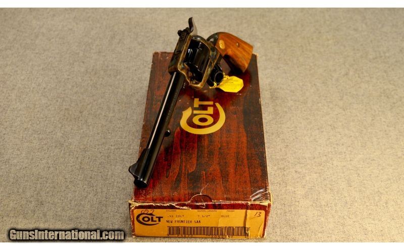 Description: This is a pre-owned, new in the box condition, unfired, non-turned Colt New Frontier S.A.A. in .45 Colt with the original box and paperwork SOLD Caliber Info: .45 Colt Metal Condition: As new in box, unfired and not turned Wood Condition: As new in box Bore Condition: As new in box Barrels: 7.5 Triggers: SA Stock: Smooth walnut with Colt medallions Weight: 2.5 Lbs. Sights: Ramp front, adjustable rear Extras: Comes with the original box and paperwork Item Location: Glendale, AZ |