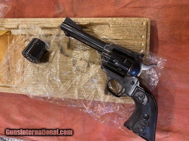 Description: There is no improvement on this pistol, it is exactly as it left the factory, not a mark or scratch. Includes both cylinders and factory sight key. All factory documentation and packaging. SOLD Handgun Caliber: .22 WMR (.22 Magnum) |