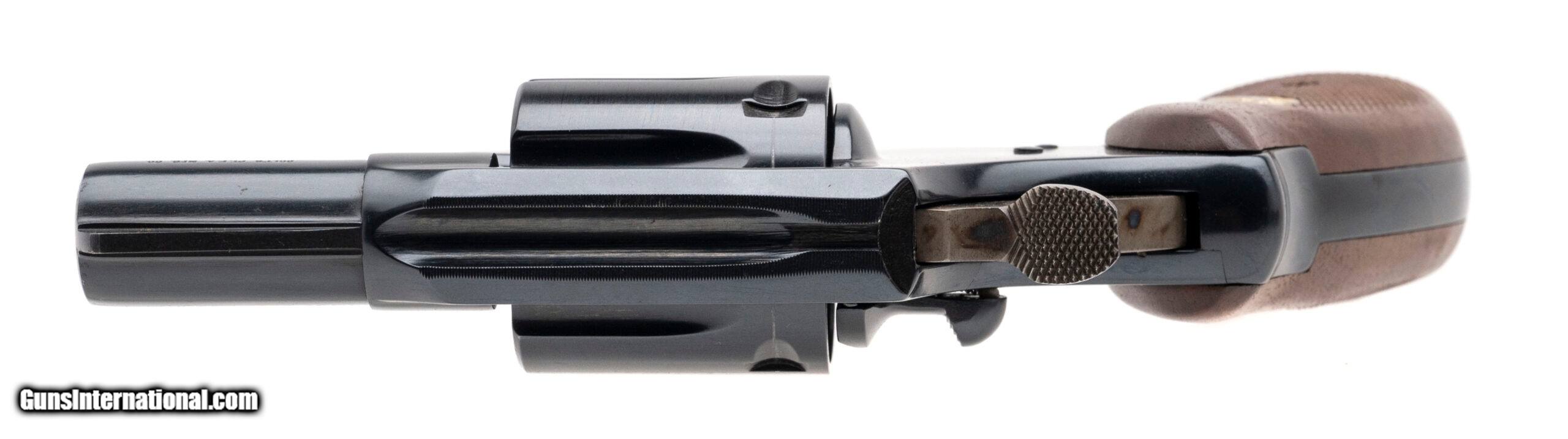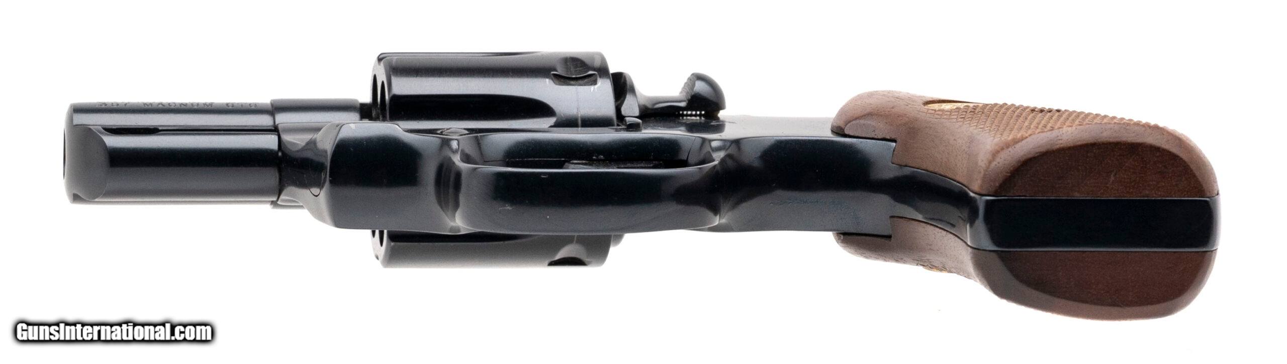Description: "SN: l66061 made in 1977. 6 shot double action 357 magnum revolver with the scarce snub nose 2" barrel, trench sights, blued finish and checkered walnut gold medallion grips. Overall in very good condition with only minor handling marks. Price: $995.00 Contact Seller |