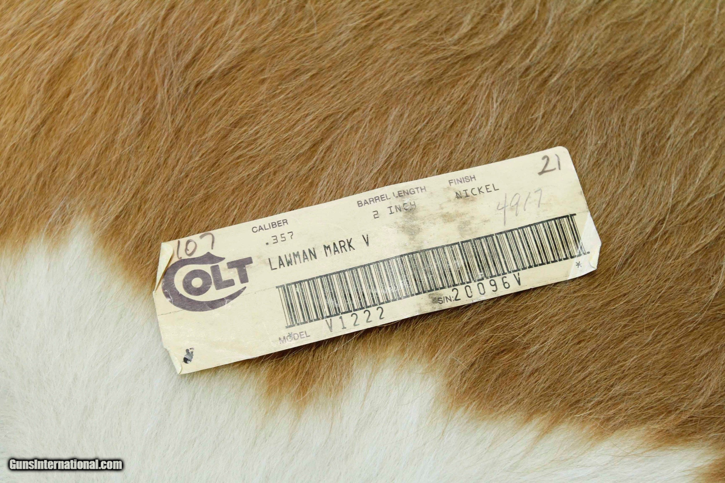 Description: Colt Lawman Mark V .357 mag C.T.G. Rare 1983. Colt medallion grips The gun is in as like new condition with slight drag line on cylinder, gun has been fired very little. Includes original box/sleeve, paperwork and label. Pre-owned. Part of a collection. Shipping cost is $45 and includes shipping insurance. We only ship to the CONTINENTAL US. There is a 3% charge for credit card transactions. PLEASE KNOW YOUR OWN LOCAL AND STATE LAWS PRIOR TO PURCHASE! Old West Guns Las Vegas SOLD Manufacturer: Colt Model: Lawman Mark V Caliber Info: .357 magnum |